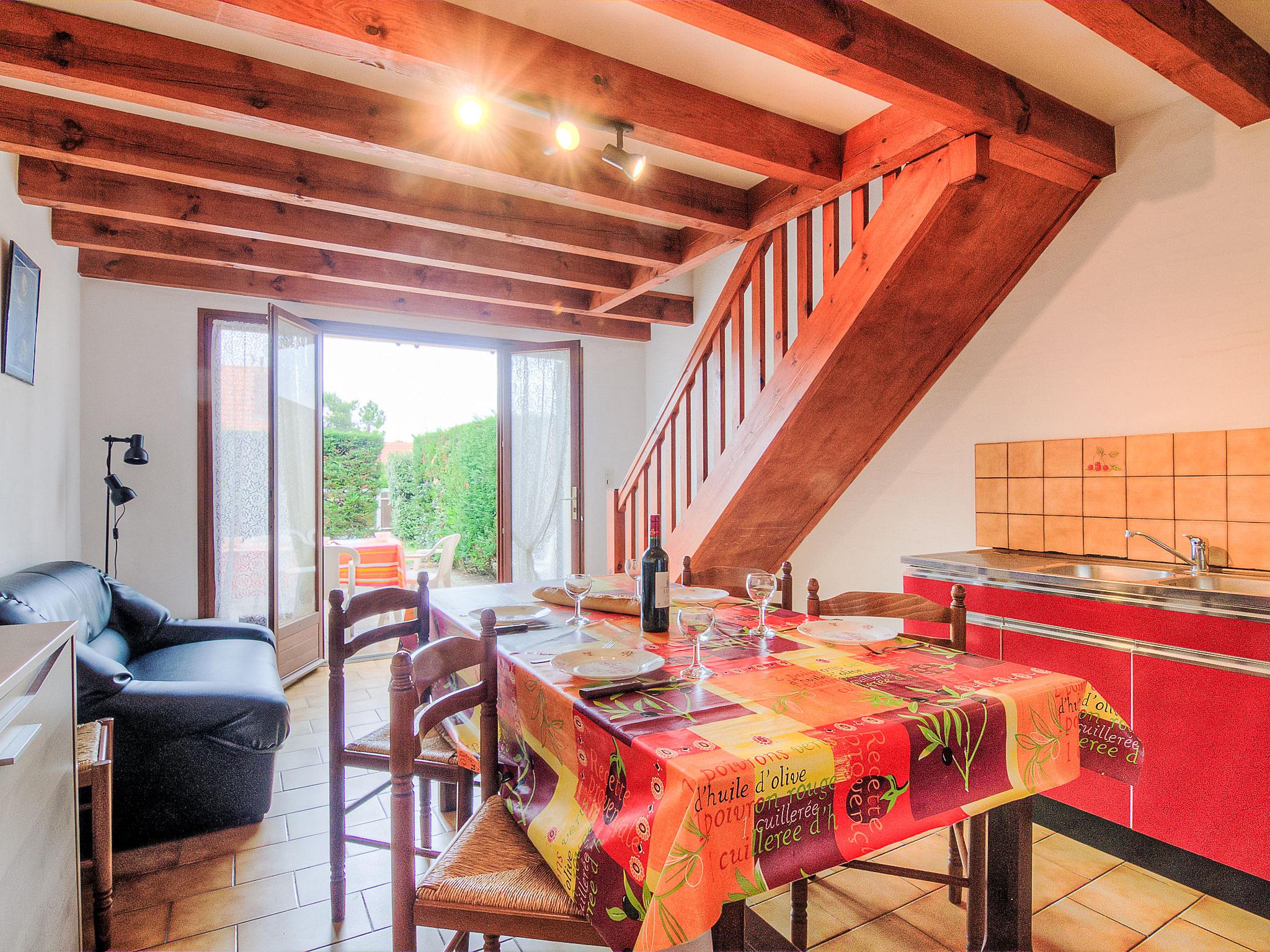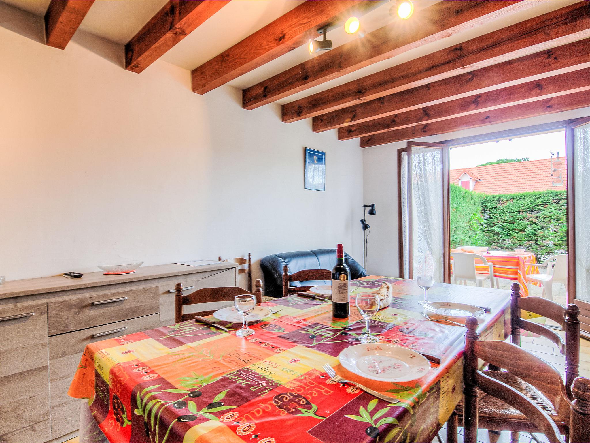 3-room terraced house 50 m2 on 2 levels. Simple furnishings: living/dining room with TV and international TV channels (flat screen). Exit to the terrace. Kitchenette (1 hot plate, mini-oven, oven, 4 gas rings, toaster, kettle, microwave, electric coffee machine, Capsules for coffee machine (filtre) extra). Shower, sep. WC. Heating not available in all rooms. Upper floor: 1 room with sloping ceilings with 2 beds (90 cm, length 190 cm). 1 room with sloping ceilings with 1 bed (90 cm, length 190 cm), 1 french bed (1 x 140 cm, length 190 cm). Terrace. Terrace furniture, deck chairs (1). Facilities: Internet (WiFi, free). Please note: maximum 1 pet/ dog allowed. Smoke alarm.