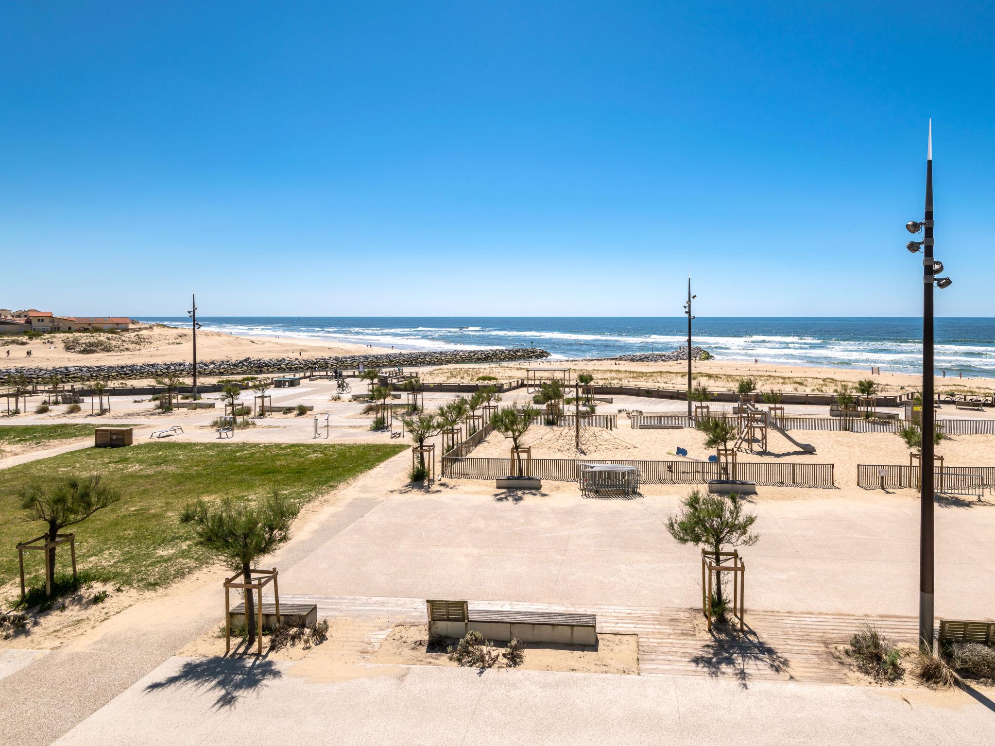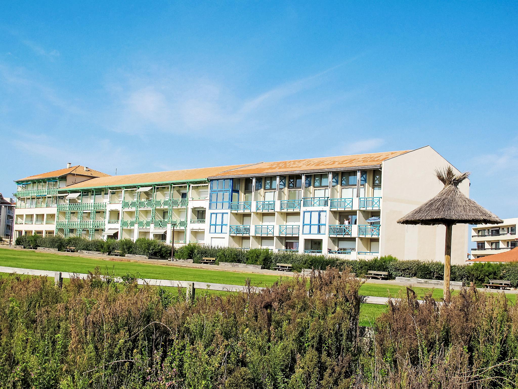 Mimizan-Plage: The complex of 3 storeys gets a privileged location overlooking the beach facing the ocean, close to the pedestrian coast road. Residence "Cap Océan". In the resort 100 m from the centre of Mimizan-Plage, in a central, busy position, 100 m from the sea, 100 m from the beach. In the complex: lift, storage room for bicycles. Parking. Grocery 80 m, supermarket 500 m, restaurant 80 m, bus stop 400 m, railway station "Labouheyre" 30 km, sandy beach "la garluche" 100 m, park "Landes aventures" 6 km, indoor swimming pool 6 km, bathing lake "Aureilhan" 10 km. Golf course (9 hole) 7 km, surf school 100 m, riding stable 7 km. Nearby attractions: Bassin Arcachon 70 km, Biscarrosse 35 km, Casino Mimizan - Plage 1 km, Centre Nautique 6 km. Please note: Additional accommodations can be booked.