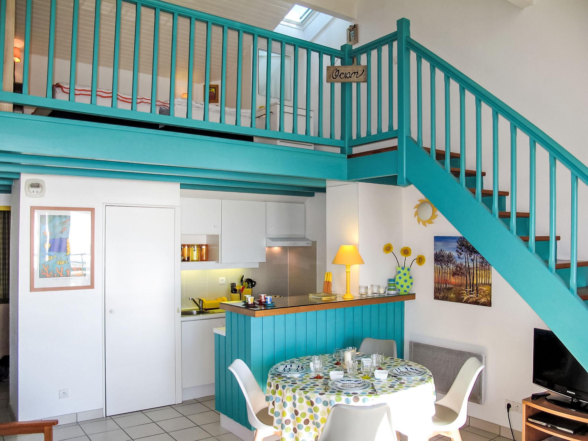 Residence "Horizon". In the resort 100 m from the centre of Mimizan Plage, in a central, busy position, in the heart of the city, 600 m from the edge of the forest, 50 m from the sea, 10 km from the lake, 50 m from the beach. Shop 100 m, grocery 50 m, supermarket 500 m, restaurant 10 m, bakery 100 m, bus stop 500 m, sandy beach "la garluche" 50 m. Golf course (9 hole) 8 km, surf school 50 m. Nearby attractions: Arcachon 70 km, Biscarrosse 35 km, eco musée marquèze 40 km, Disc golf 900 m. Hiking paths: skate parc 900 m.