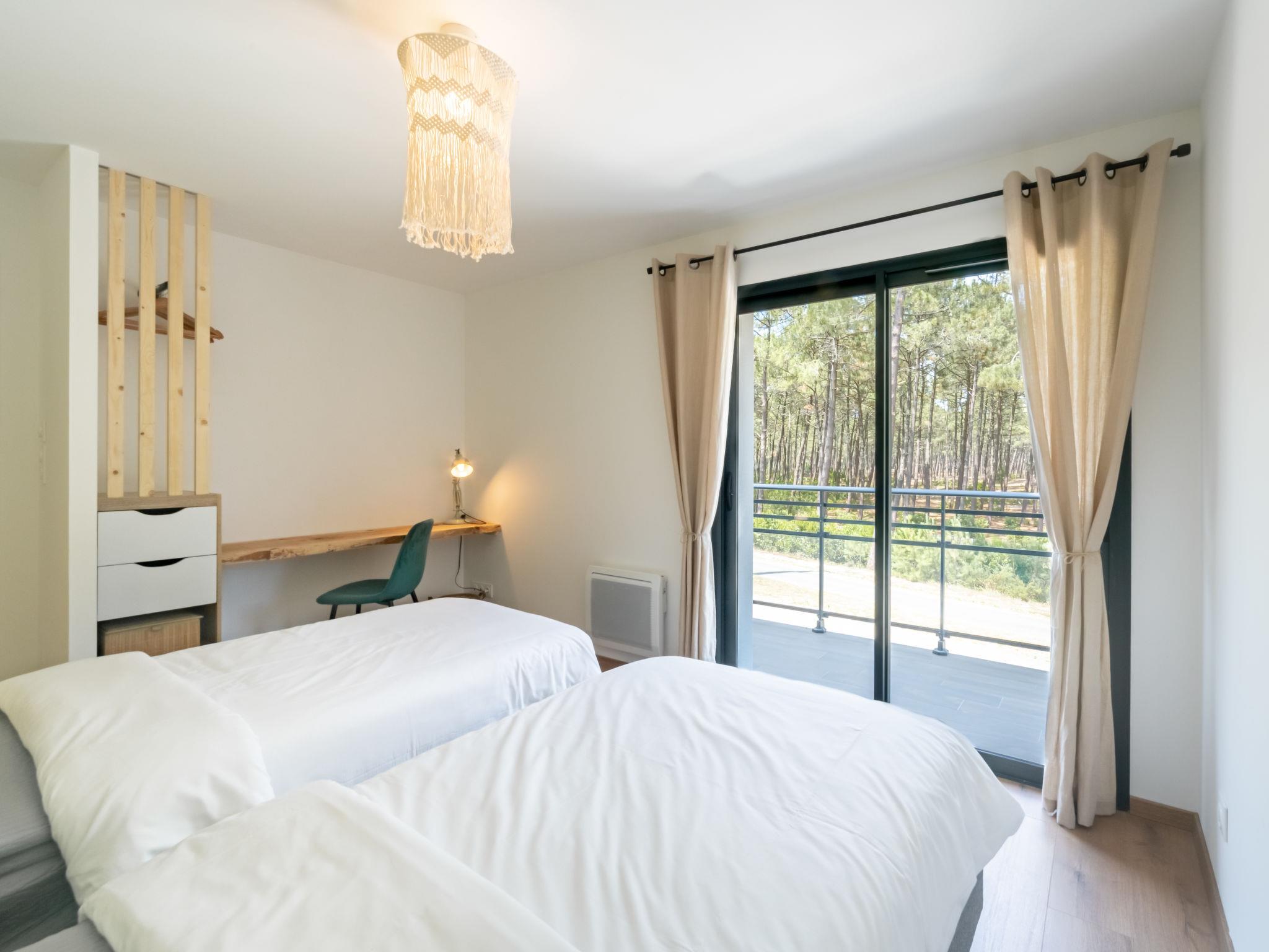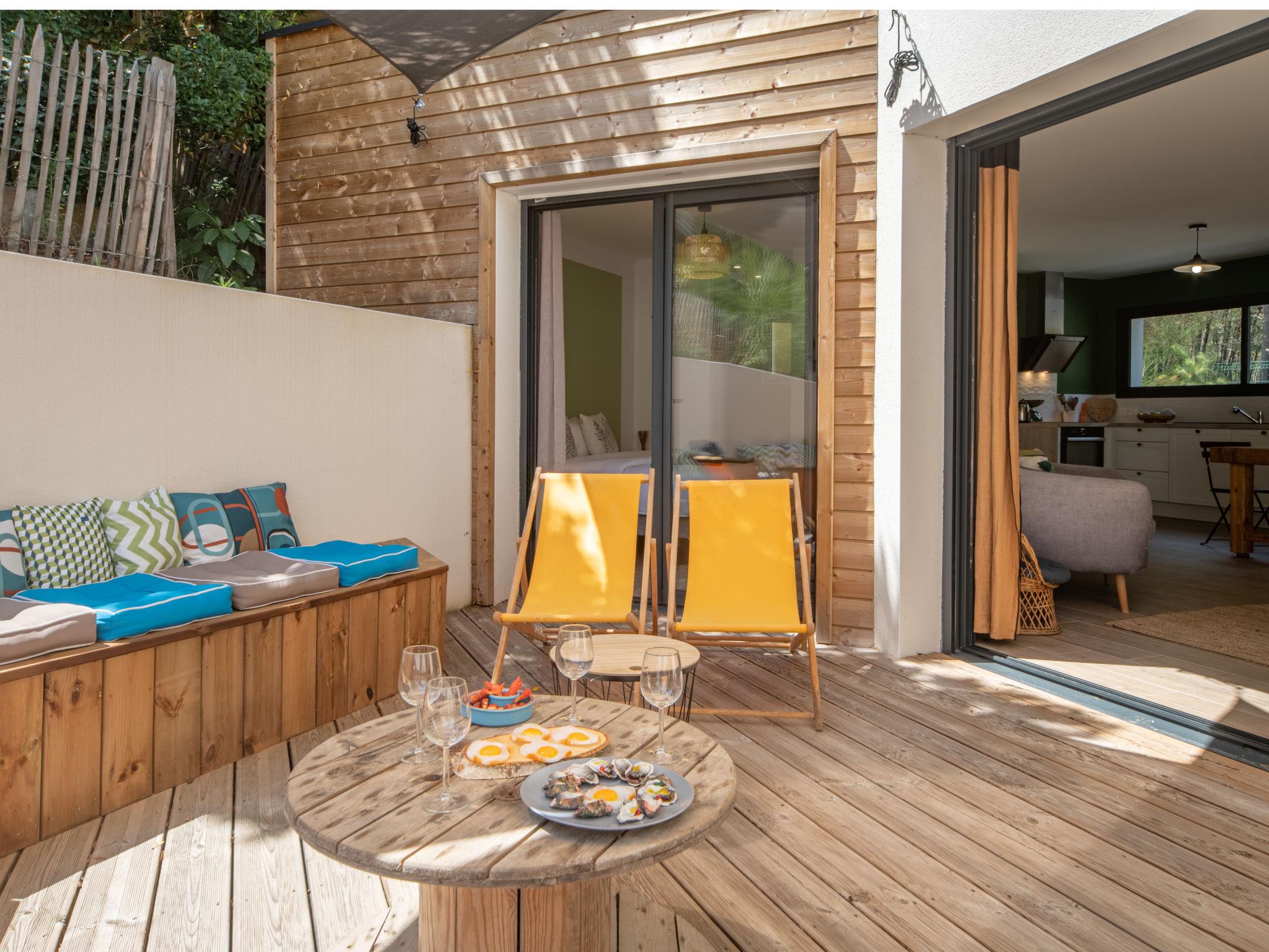 Beautiful terraced house "Ocean forest", built in 2023. In the resort 900 m from the centre of Mimizan Plage, 450 m from the sea, 10 km from the lake, 450 m from the beach. Parking (for 2 cars). Shop, grocery 400 m, shopping centre 6 km, restaurant 400 m, bakery 300 m, bicycle rental 500 m, bus stop 1 km, sandy beach "Remember" 100 m, bathing lake "Aureilhan" 10 km. Surf school 500 m, riding stable 9 km, cycle lane 100 m. Nearby attractions: Skate parc 950 m, Eco musée de Marquèze 40 km, Disc golf 100 m, Casino jeux 1 km, Biscarrosse 35 km, Arcachon 70 km.