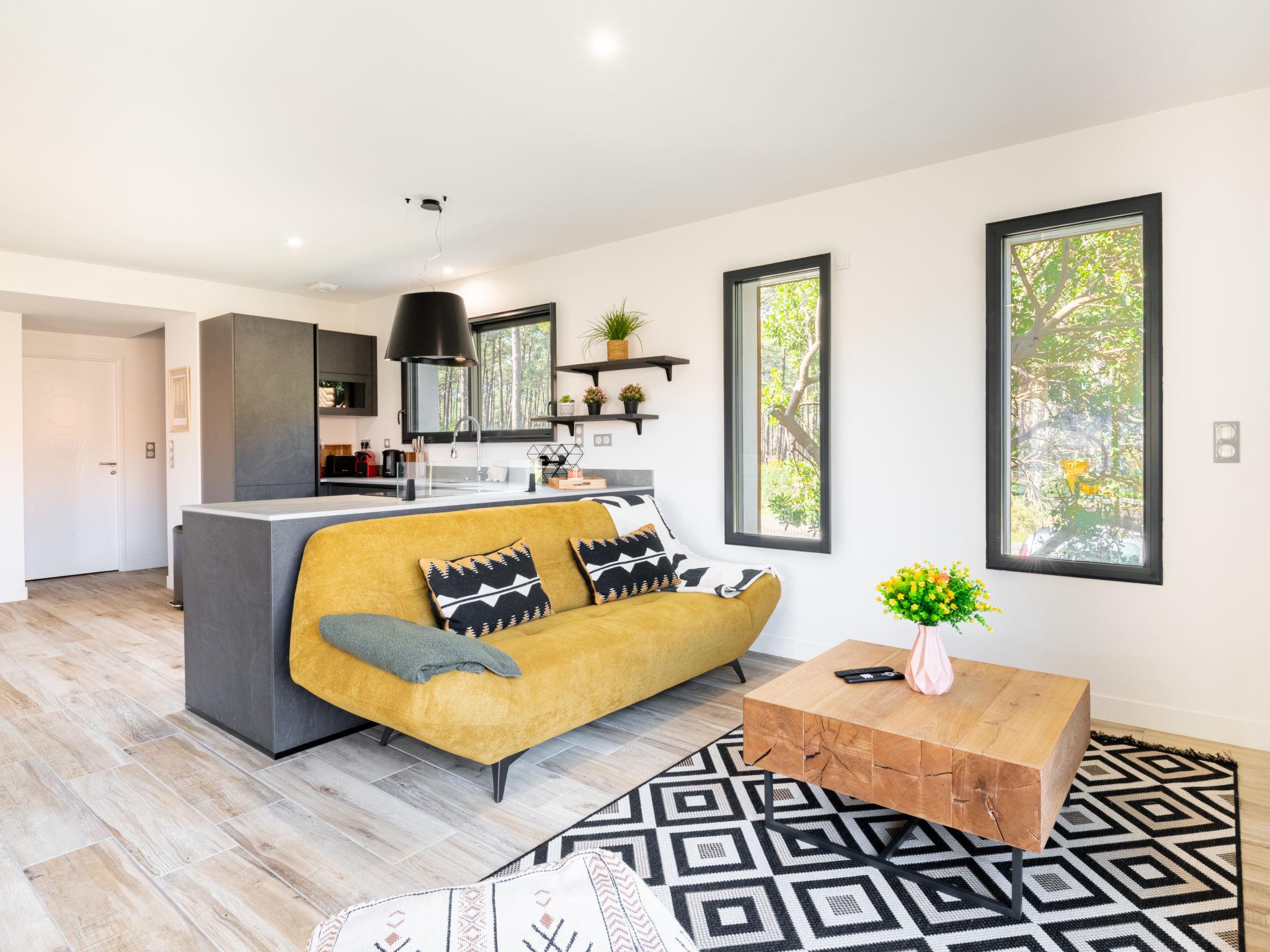Beautiful single-family house "Hotel du Nord", built in 2023. In the resort 1 km from the centre of Mimizan Plage, 600 m from the sea, 10 km from the lake, 600 m from the beach. Private: garden 250 m2 (fenced), parking (for 2 cars). Supermarket 500 m, restaurant 300 m, bar 400 m, bakery 300 m, pedestrian zone 400 m, bicycle rental 600 m, bus stop 1 km, sandy beach "remember" 100 m, bathing lake "Aureilhan" 10 km. Surf school 400 m, riding stable 9 km, cycle lane 100 m. Nearby attractions: skate parc 950 m, Eco musée marquèze 40 km, Disc golf 100 m, casino jeux 10 km, Biscarrosse 35 km, Arcachon pyla 70 km.