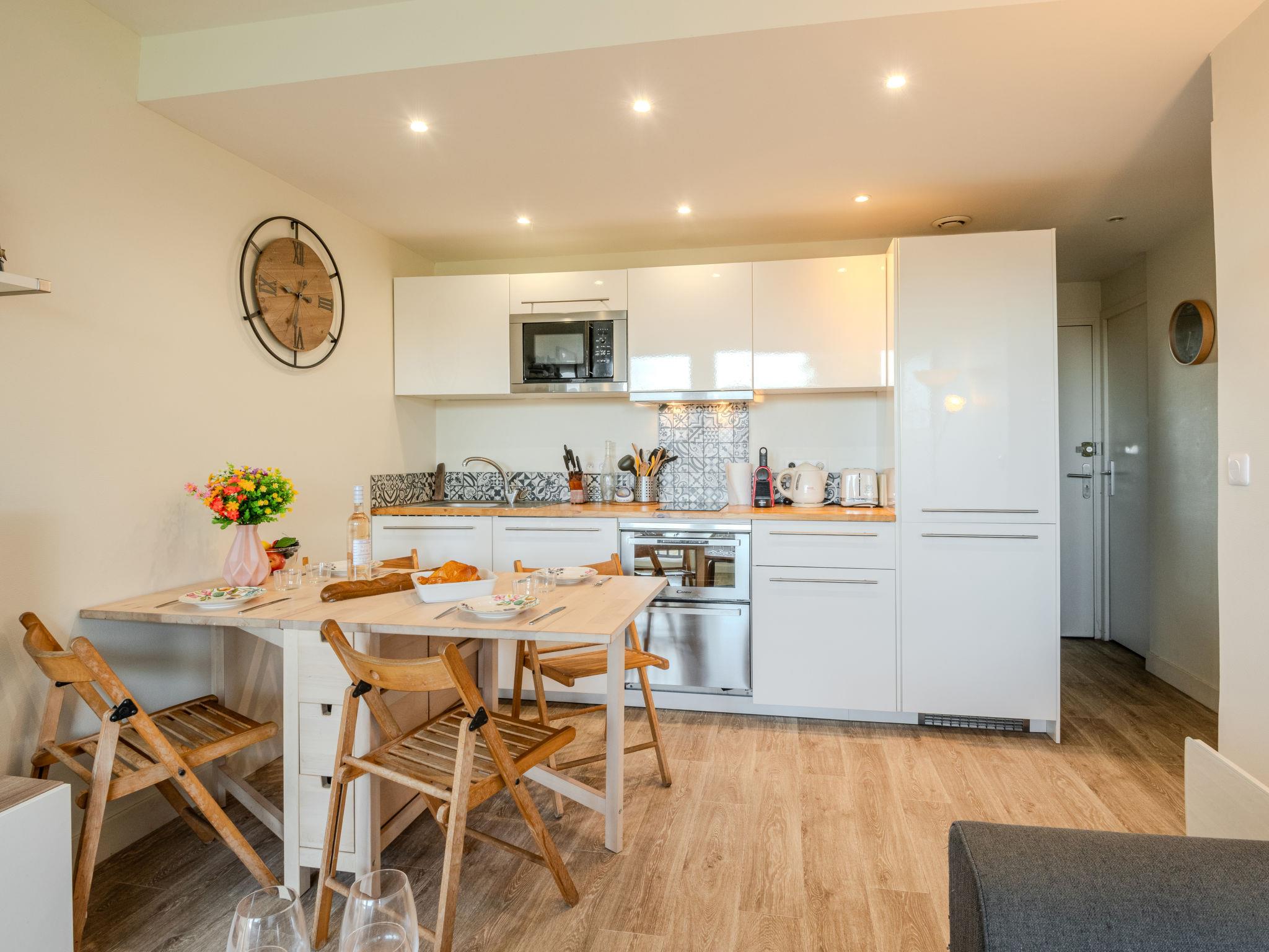3-room apartment 35 m2 on 2nd floor. Living/dining room with TV (flat screen). 1 room with 1 french bed (1 x 160 cm, length 190 cm). Sleeping alcove with 1 x 2 bunk beds (90 cm, length 200 cm). Open kitchen (oven, dishwasher, 1 induction hot plates, 2 gas rings, toaster, kettle, microwave, freezer, electric coffee machine). Shower, sep. WC. Electric heating. Small balcony 3 m2. Facilities: washing machine, iron, hair dryer. Internet (WiFi, free). Please note: non-smokers only. 1 small pet/ dog allowed. Smoke alarm. Offer by a private individual according to Art. 155, IV of CGI.