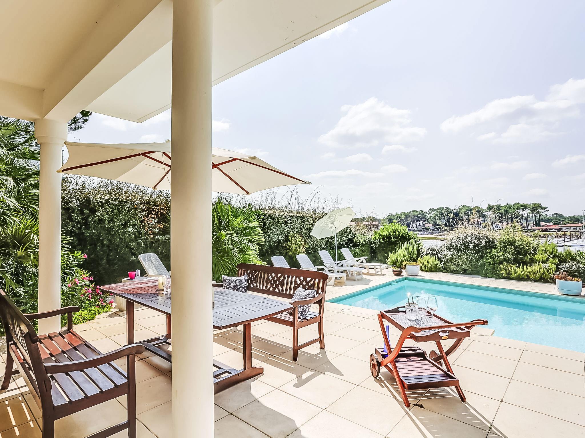 Single-family house "Les Pinasses". In the resort 400 m from the centre of Mimizan Plage, 900 m from the sea, 900 m from the beach, 200 m from the river. Private: property 750 m2, well-kept garden lawn and trees, swimming pool (9 x 5 m, seasonal availability: 14.May. - 24.Sep.) with alarm system. Outdoor shower, parking on the premises, single garage. Supermarket 400 m, bus stop 500 m, railway station "Labouheyre" 30 km, sandy beach 900 m, indoor swimming pool 6 km, bathing lake "Aureilhan" 10 km. Golf course (9 hole) 6 km, surf school 900 m, riding stable 7 km. Nearby attractions: Arcachon 70 km, Bordeaux 120 km, Biscarosse 40 km, Centre Nautique 7 km, Casino Mimizan Plage. Hiking paths: Casino Mimizan Plage. Please note: slope.