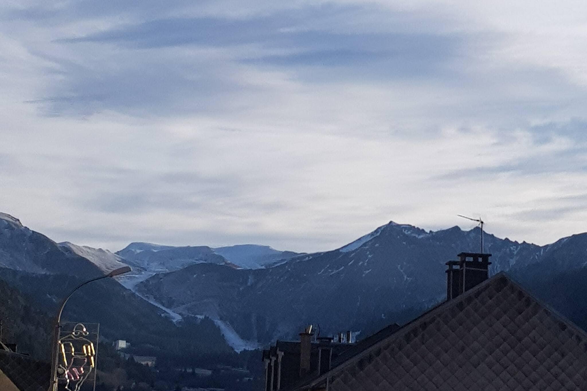 On the 2nd floor: (Living room(single sofa bed, TV, seating area), Kitchen(hob(ceramic), electric kettle, toaster, coffee machine, oven, microwave, fridge, freezer, dishes and cutlery), bedroom(double bed(140 x 200 cm), TV), bedroom(double bed(140 x 190 cm)), bathroom(shower, washbasin, toilet)) Internet access, Ski Slope, washing machine, heating, parking, iron, hairdryer, shampoo, hot water, Dedicated workspace, Cleaning products, Extra pillows and blankets, Long term stays allowed, Mountain view, Wine glasses
