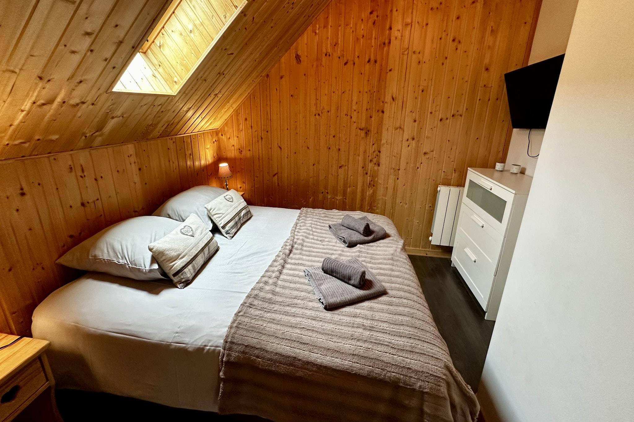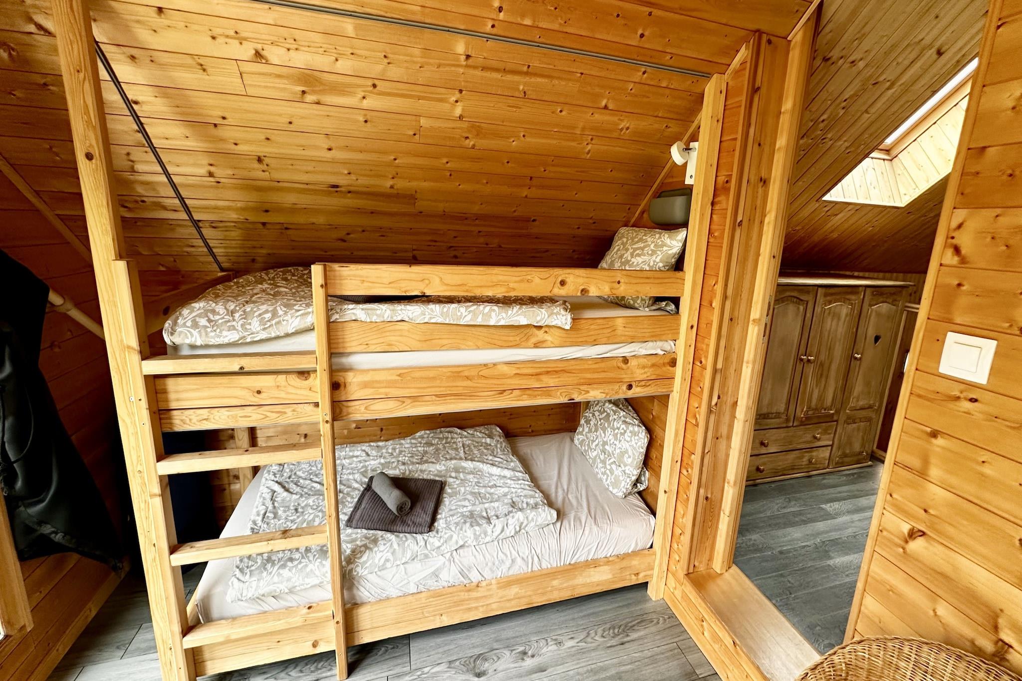 Perfect for family gatherings or group holidays in the mountains, this spacious chalet in Mont-Dore offers comfortable accommodation for up to ten guests in a peaceful alpine setting. Designed to balance shared living with individual privacy, it provides an ideal base for travellers looking to enjoy both outdoor adventure and relaxed downtime in the Massif du Sancy. Inside, the chalet is arranged across two levels and features four well-separated bedrooms with a mix of double, single and bunk beds to suit flexible group sleeping arrangements. The large main living area includes a seating space with a television alongside a dining area designed for shared meals after days spent outdoors. A fully equipped open kitchen includes a refrigerator, oven, microwave, stovetop, dishwasher and coffee maker, allowing guests to prepare meals with ease throughout their stay. A dedicated laundry area adds valuable practicality for longer visits, WiFi for connectivity, and heating ensures comfort during cooler months. Two bathrooms with shower facilities support everyday convenience for larger groups. Guests can enjoy access to a generous private terrace offering open views of the surrounding mountains and the nearby waterfall. Outdoor furniture and a barbecue provide a pleasant setting for alfresco dining or relaxed downtime, while two private parking spaces are available directly in front of the chalet for added ease on arrival. Located approximately 1.5 kilometres from Mont-Dore’s centre and within walking distance of ski shuttle services, the property provides year-round access to hiking trails, cycling routes and winter sports facilities across the Sancy region.