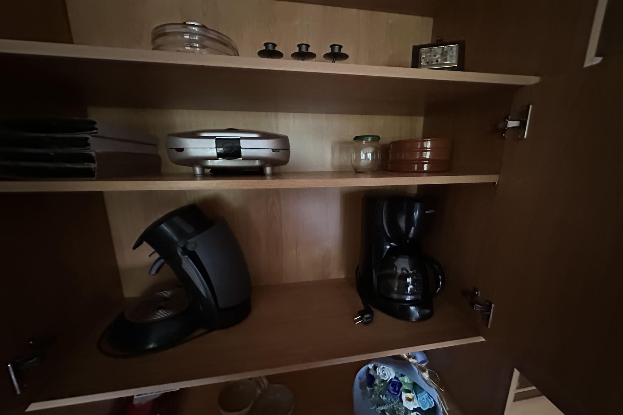 Elevator, Living room(double sofa bed, TV, seating area), Kitchen(electric kettle, coffee machine, oven, microwave, fridge, dishes and cutlery), bedroom(double bed), bathroom(bathtub or shower, washbasin, toilet), Internet access, cot, washing machine, balcony, heating(central), parking, high chair