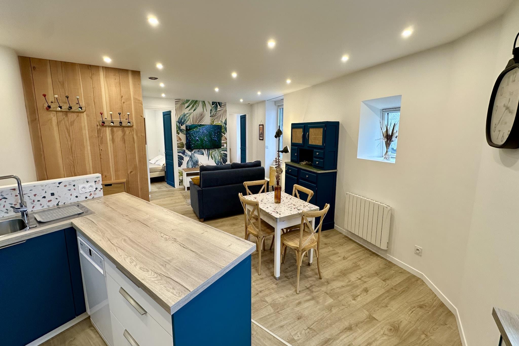 Step into a world of fresh, contemporary comfort in this 60 m² apartment, newly furnished to provide a superior stay in the heart of Mont-Dore. Tastefully decorated and featuring all-new interiors, this bright and spacious home is perfectly suited for families or groups of six. Situated in a premier city-center location, the property balances the excitement of being just 100 meters from local shops with the serene beauty of the surrounding peaks, visible from your window. The layout is designed for effortless living, featuring two well-appointed bedrooms and a generous open-plan living area. Culinary enthusiasts will love the modern induction kitchen, which is fully loaded with high-end appliances including a dishwasher, oven, and freezer. Practicality is a priority here; the apartment is equipped with high-speed Wi-Fi, a washing machine, and an iron, ensuring a seamless experience whether you are here for a long-term thermal cure or a quick mountain getaway. The location is a true highlight for those who want everything at their doorstep. You are a mere 190 meters from the Thermal Springs, making it an ideal choice for spa-goers. For the active traveler, the Sancy ski resort and the local golf course are both just 4 km away, easily accessible for year-round recreation. Located in a safe, family-friendly zone, this apartment offers the perfect combination of modern style, home-like convenience, and immediate access to the best of Mont-Dore.