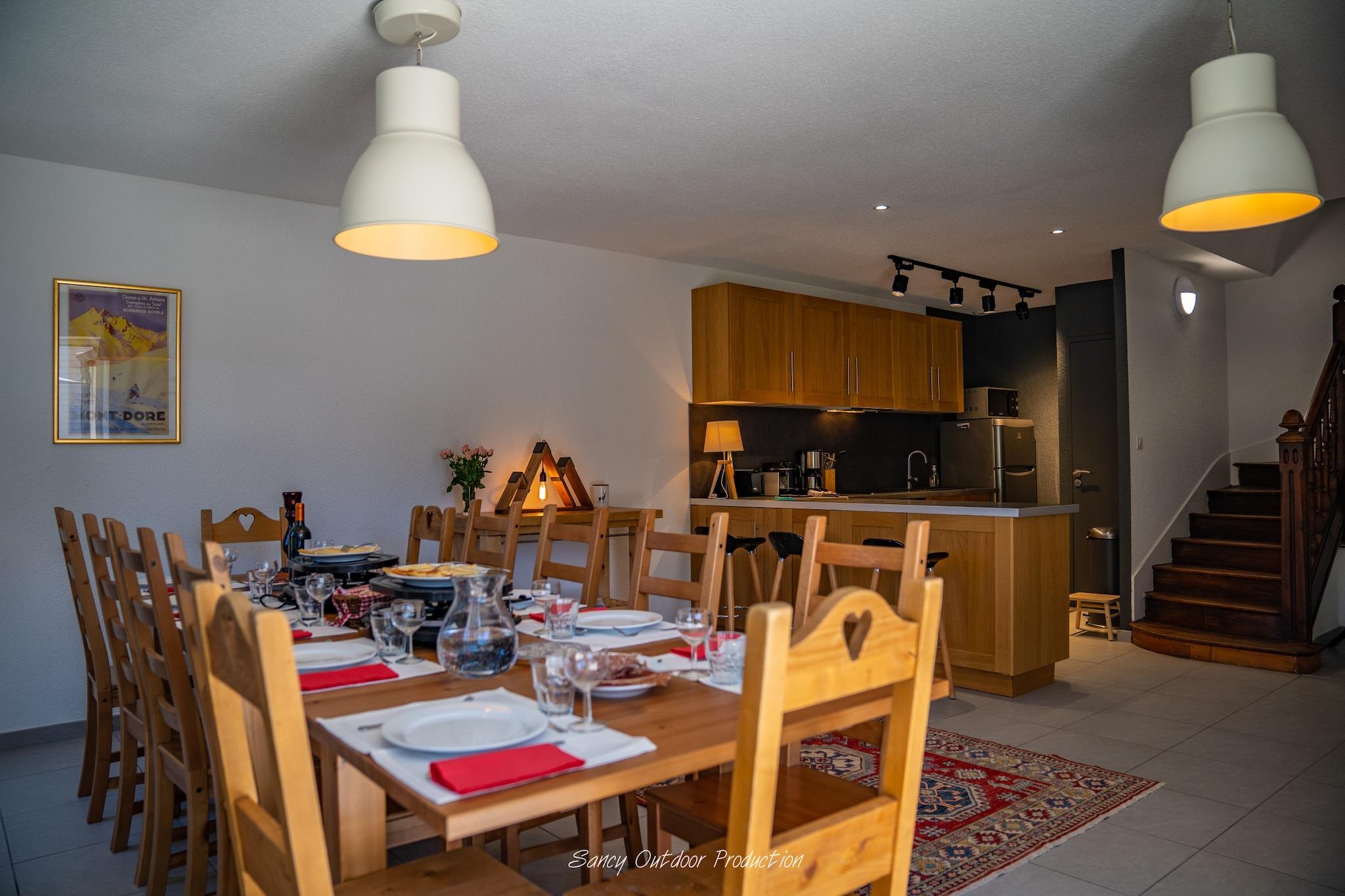 Elevate your group retreat in this exceptional 200 m² four-star residence, masterfully renovated to blend high-end luxury with authentic mountain charm. Nestled in the heart of Mont-Dore, this expansive estate is the ultimate sanctuary for large families or groups of up to 14. Spread across multiple levels, the home features a unique layout where each of the five bedrooms boasts its own private bathroom, including a stunning attic suite with a standalone bathtub, ensuring absolute privacy and comfort for every guest. The social heart of the villa is a bright, sophisticated living area featuring plush seating, a large-screen TV, and a dedicated games corner. For the culinary enthusiast, the modern open-plan kitchen is a dream, equipped with an induction cooktop, Nespresso machine, and everything needed to cater for a full house. Step outside onto the 100 m² terrace to experience a breathtaking panoramic view of the Sancy massif—the perfect backdrop for morning coffee or an evening barbecue on the loungers. Designed for active adventurers, the property includes a 100 m² private garage capable of housing four vehicles, along with a specialized heated storage area featuring a ski boot dryer and space for bicycles or motorcycles. While the villa offers a secluded feel, you are only a 5-minute walk from local shops and thermal baths, with free shuttles ready to whisk you to the ski slopes. With a laundry room, high-speed Wi-Fi, and personalized concierge services, this villa offers a premier, hassle-free experience in one of the Auvergne's most beautiful settings.