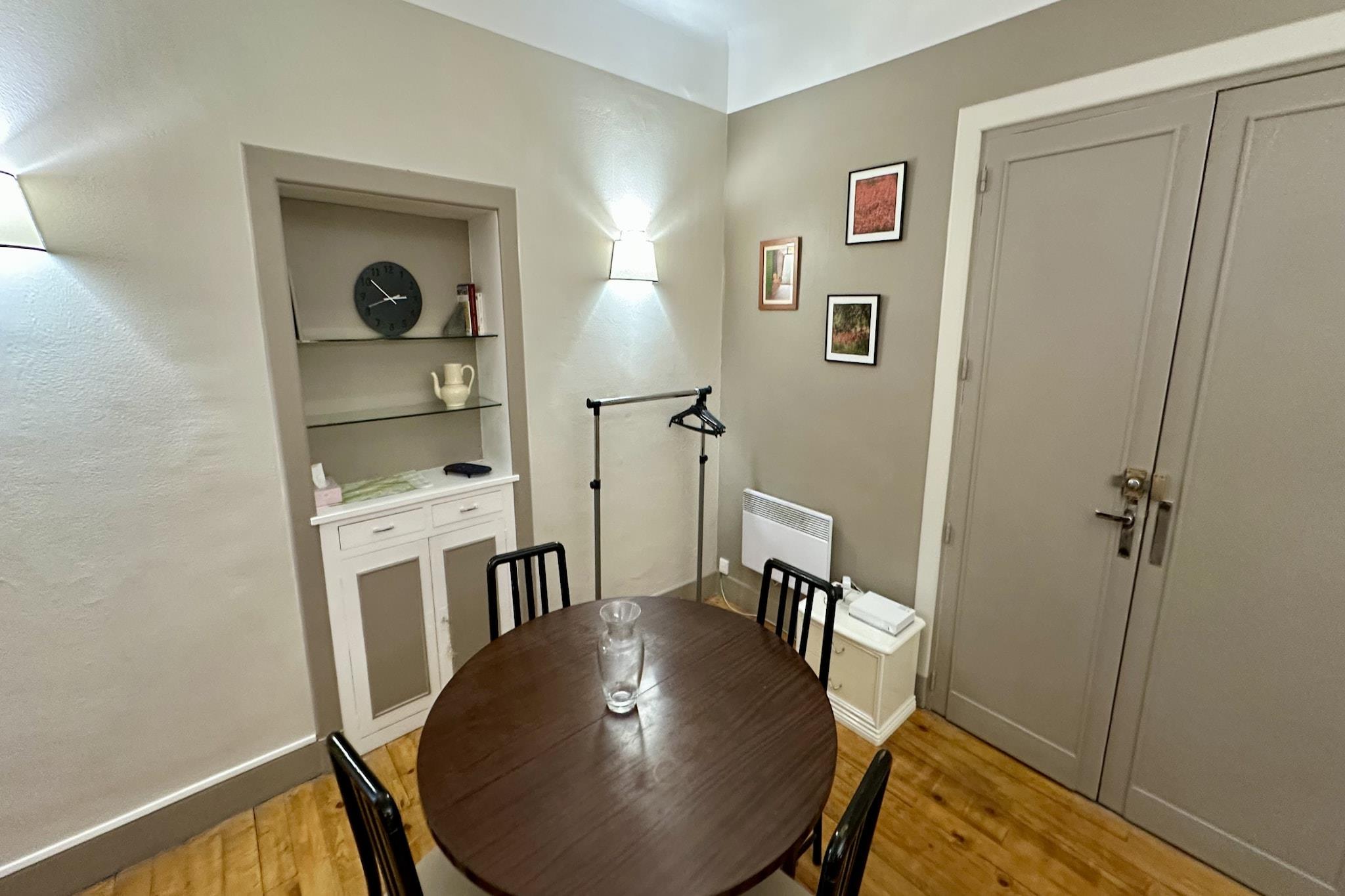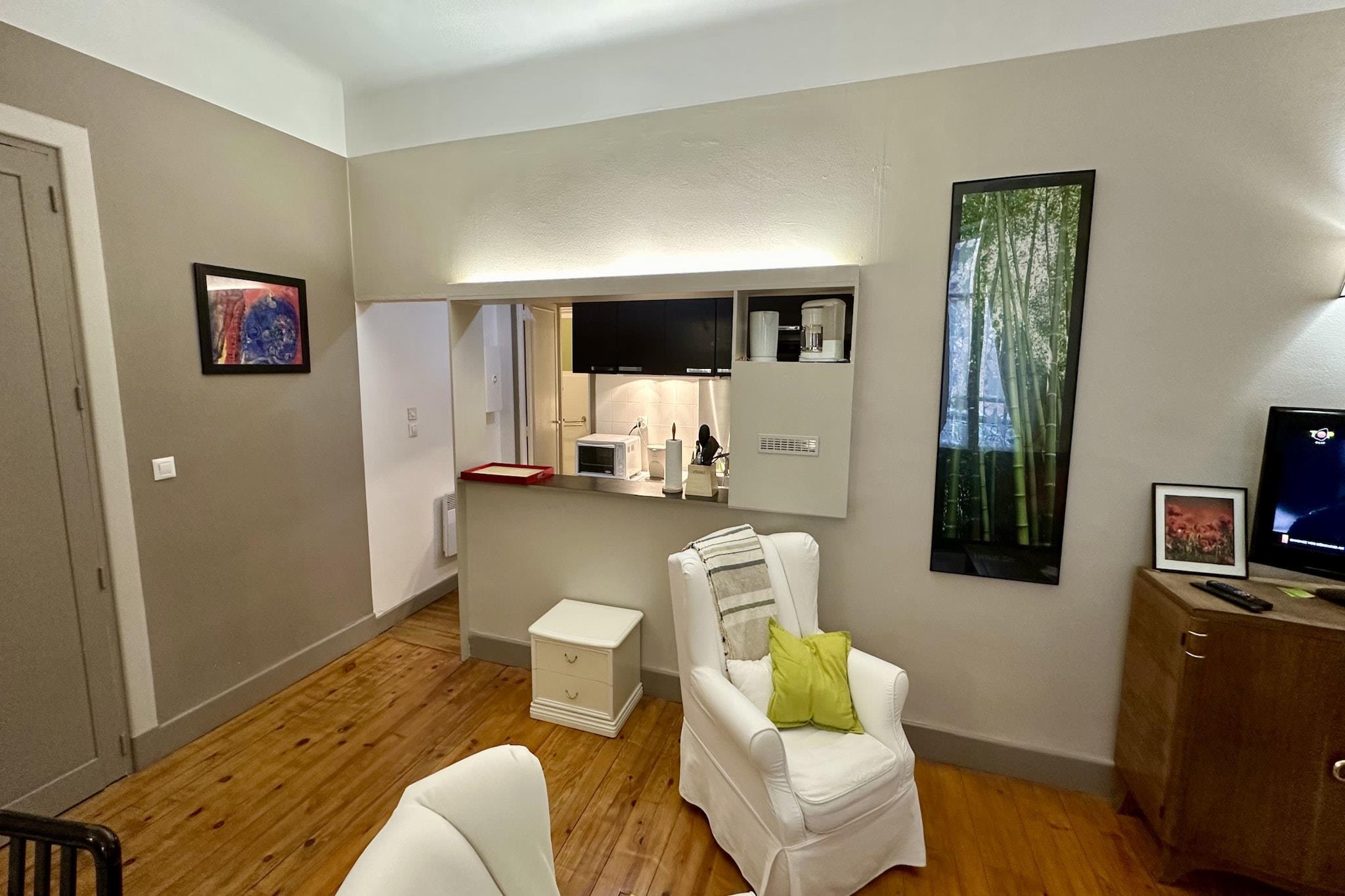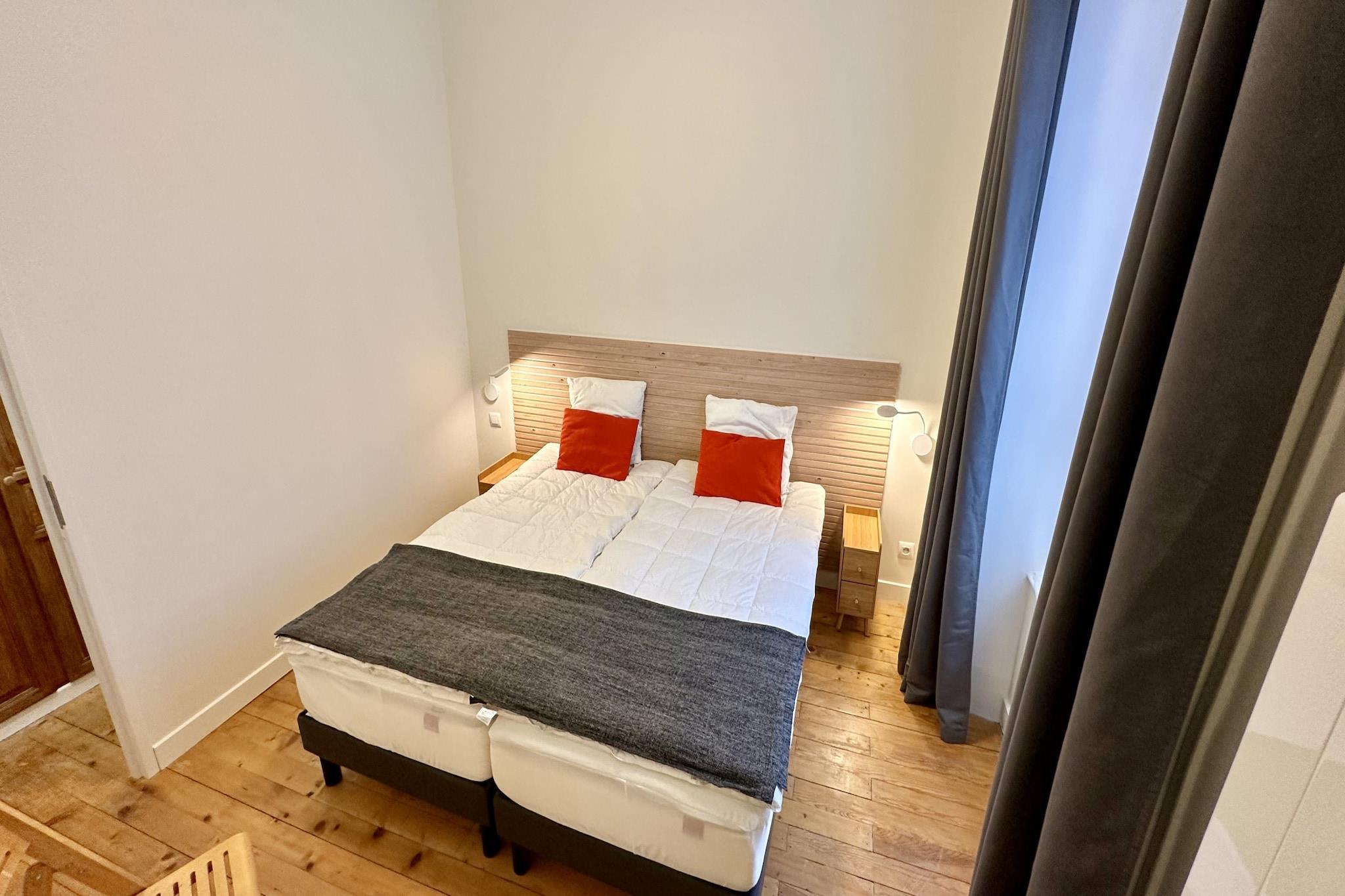 Experience the grandeur of a bygone era in this 48 m² apartment, located within one of the iconic historic palaces of Mont-Dore. This unique residence seamlessly blends majestic architectural charm with modern amenities, offering a bright and spacious cocoon for up to four guests. Whether you are visiting for a long-term thermal cure, a romantic retreat, or an active mountain holiday, this apartment provides a sophisticated atmosphere that makes every stay feel like a special occasion. The interior is designed for comfort and elegance, featuring a large bedroom with a king-size bed and a walk-in wardrobe, evoking the feeling of a high-end hotel suite. The living area is warm and inviting, providing a cozy spot to relax after exploring the Sancy massif. A standout feature is the well-appointed bathroom, which offers both a bathtub and a shower, perfect for soaking away the day's adventures. The open-plan kitchen is fully equipped with an oven, microwave, and dishwasher, ensuring you have everything needed to prepare gourmet meals at home. The location is truly premier, placing you just a few meters from the Grand Thermes, the central village square, and an array of local restaurants and boutiques. For those looking to explore further, the ski slopes, golf course, and the stunning Lake Guéry are only a short drive away. With modern essentials like high-speed Wi-Fi, a washing machine, and elevator access, this historic palace retreat offers a rare opportunity to sleep in a piece of mountain history while enjoying all the conveniences of contemporary living.