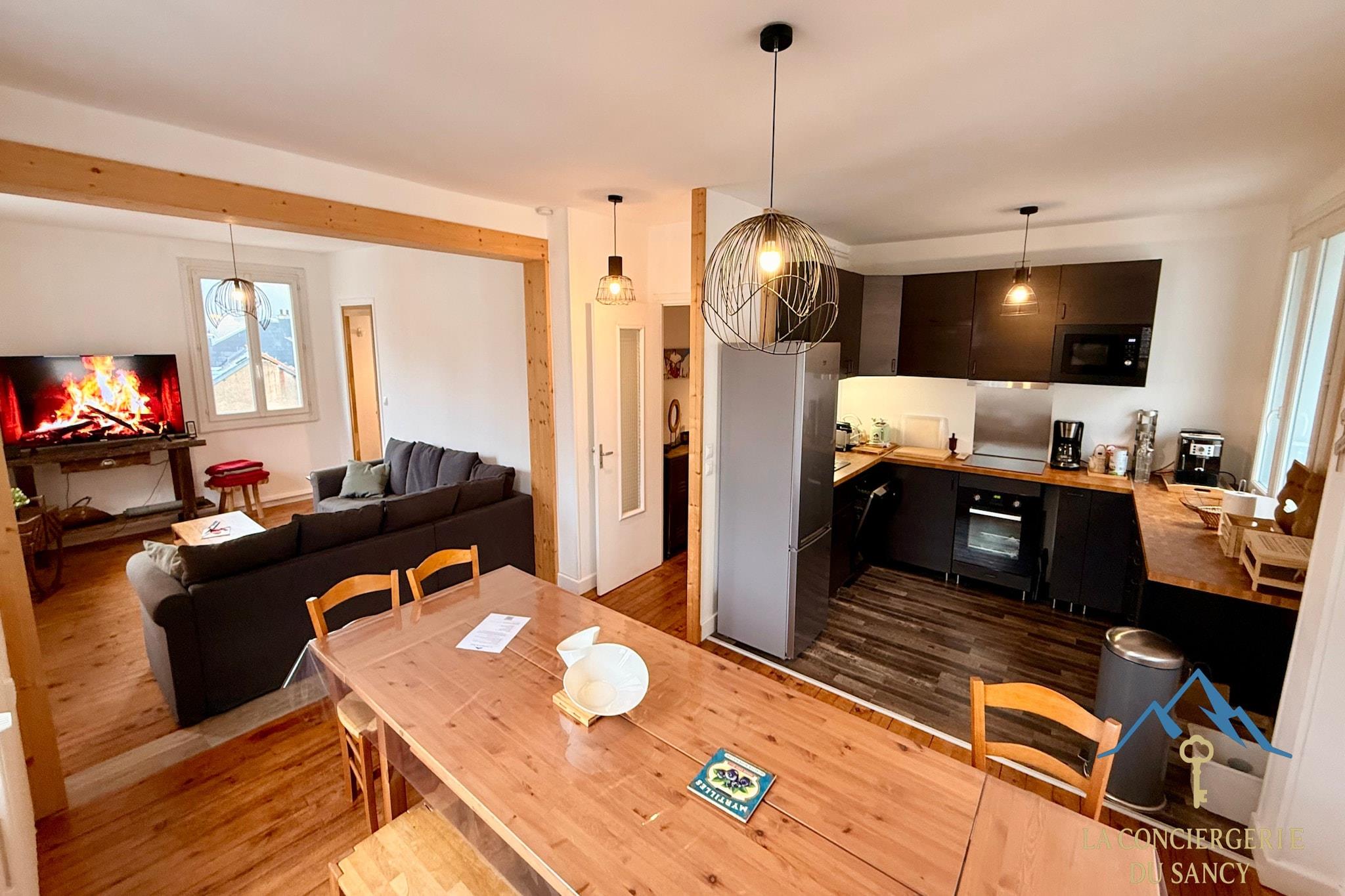 Bring the whole tribe together in this magnificent 150 m² duplex, perfectly situated on the top floor of a central Mont-Dore residence. Offering an exceptional bird's-eye view of the surrounding mountains, this vast apartment combines the charm of attic-style architecture with the space needed for up to 11 travelers. Spread across two floors, the layout provides a wonderful sense of privacy and separation, making it an ideal choice for multi-generational families or large groups of friends looking for a high-capacity urban base. The social heart of the duplex is a bright, open-plan living area featuring a fully equipped American-style kitchen. Coffee lovers will particularly appreciate the bean-to-cup coffee machine, while the inclusion of a dishwasher, oven, and freezer makes catering for a large group effortless. For evening entertainment, the lounge comes equipped with a television and a Bluetooth speaker, creating a warm atmosphere for post-skiing relaxation. With five private bedrooms, two modern bathrooms, and two separate toilets, the residence is designed to handle a full house with ease and comfort. Located in the lively heart of the village, you are just steps away from local boutiques and gourmet restaurants. The famous thermal baths are a short 700-meter walk, and the ski slopes and golf course are only 4 km away. To ensure a seamless stay, the property is fully equipped with high-speed Wi-Fi, a washing machine, and a tumble dryer. Whether you are planning a summer hiking expedition or a winter ski retreat, this impressive duplex offers the scale and central convenience for an unforgettable mountain holiday.