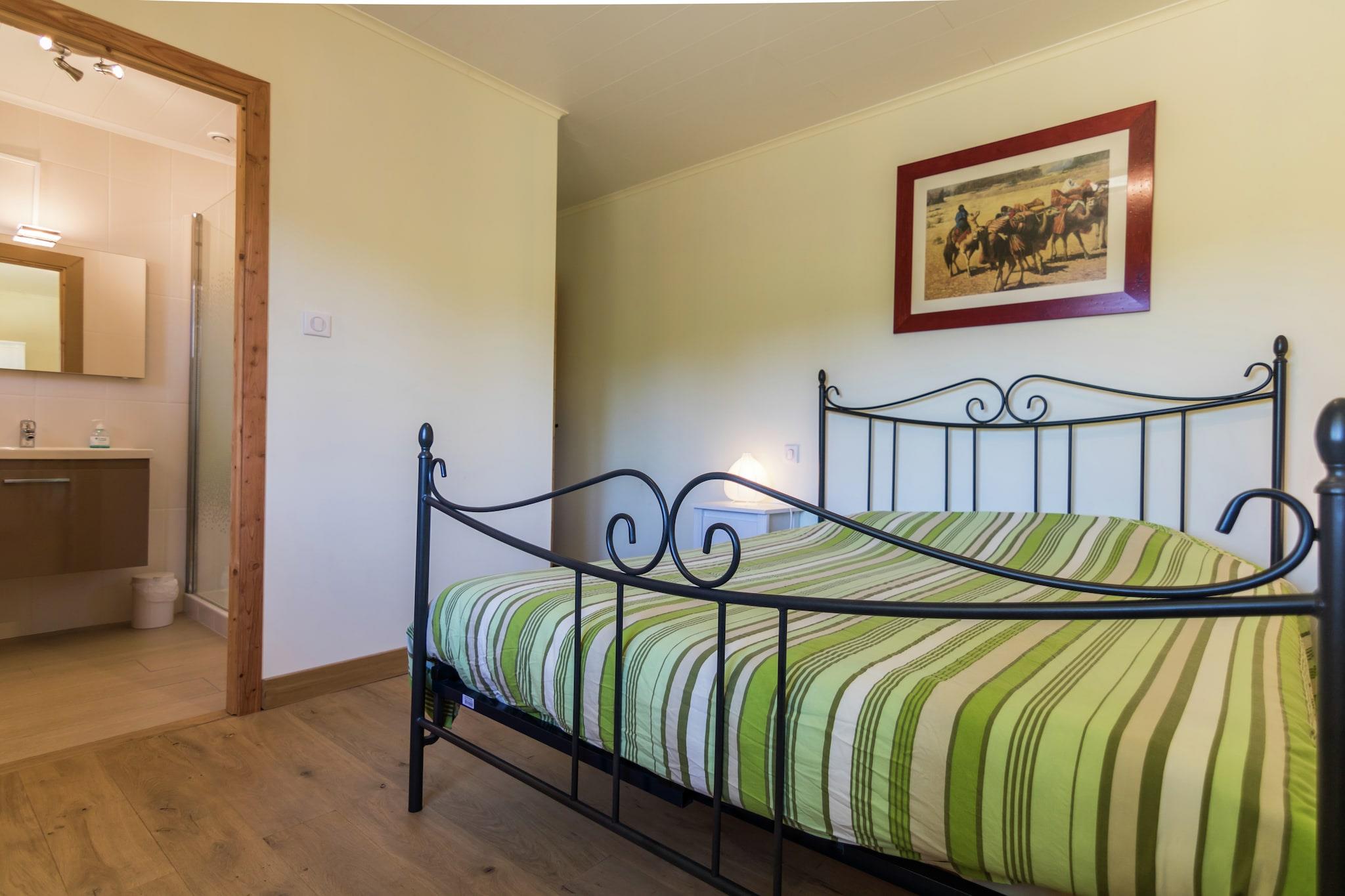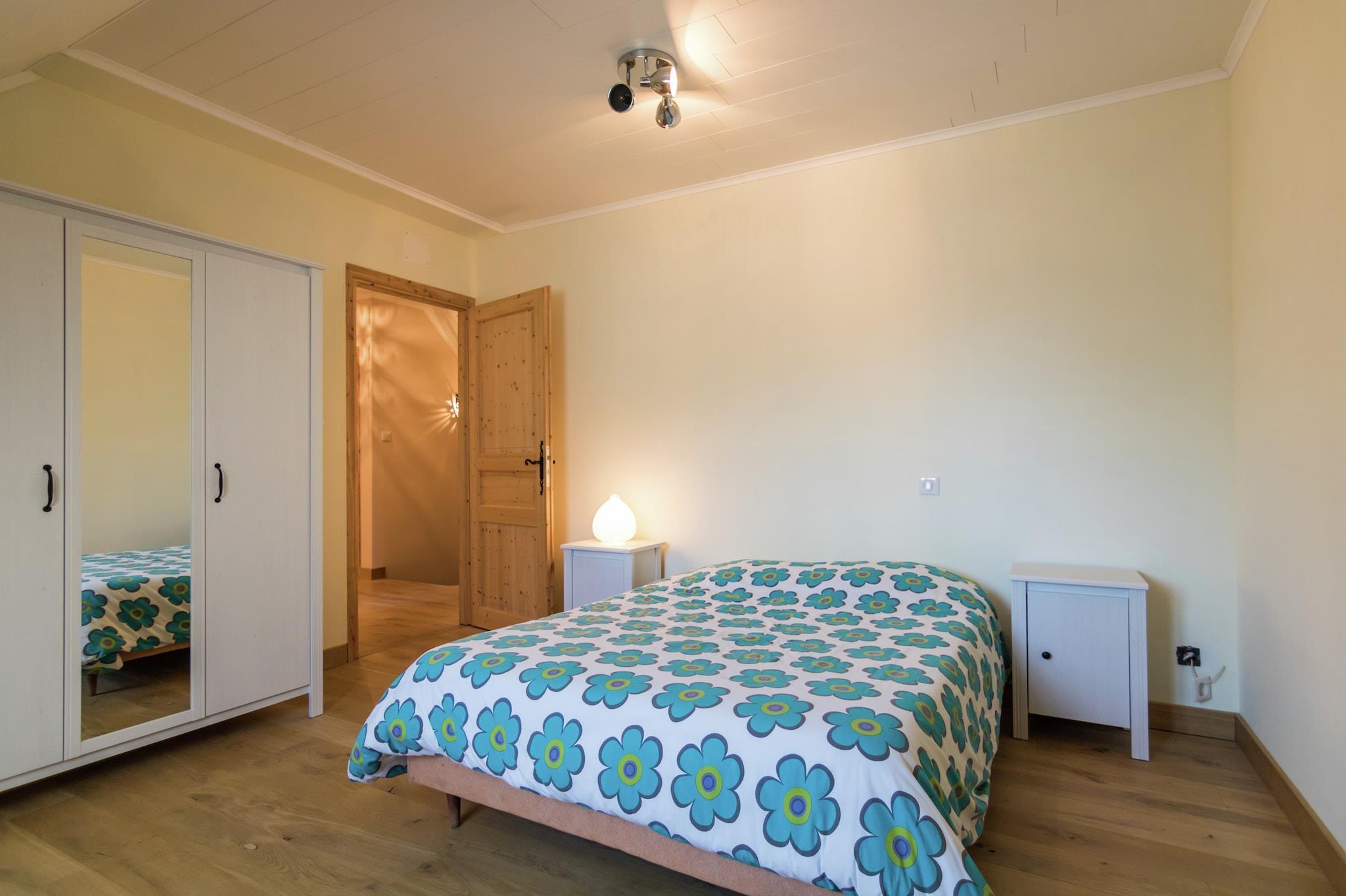 Ground floor: (Kitchen(electric kettle, toaster, cooker(5 ring stoves, gas), hood, coffee machine(filter), oven, microwave, dishwasher, fridge-freezer), Living/diningroom(TV(flatscreen), dining table(10 persons), seating area, DVD player), Bedroom with bathroom(double bed(twin duvet , synthetics, 160 x 200 cm), shower, washbasin), pantry(fridge, tumble dryer, washing machine, ironing board, iron), toilet) On the 1st floor: (bedroom(double bed(twin duvet , synthetics, 140 x 200 cm)), bedroom(double bed(twin duvet , synthetics, 160 x 200 cm)), bedroom(single bed, bunk bed), bathroom(bathtub with shower, washbasin), toilet) camping cot, heating(central), terrace(private, roofed), garden(private, landscaped garden), garden furniture(9 persons), BBQ(charcoal), deckchairs, parasol, swimming pool(private, heated, roofed, 10 x 4 m., opened from May upto and including Sep), high chair