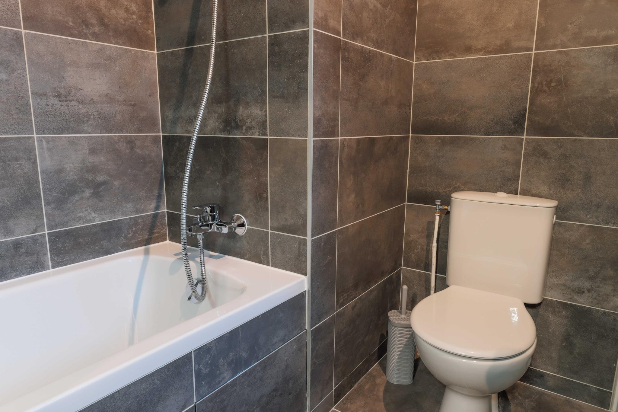 Ground floor: (Kitchen(stove, hob, electric kettle, toaster, coffee machine, oven, fridge, dishes and cutlery), Living/diningroom(single sofa bed), bedroom(double bed), Bedroom with bathroom(double bed, bath tub, washbasin, toilet)) Bed Linen, Hot Water, Internet Access DSL, Wardrobe, TV, heating, iron, hairdryer, Towels/Sheets (Incl.), shampoo, Essentials, Dedicated workspace, Cooking basics, Carbon monoxide detector, Cleaning Disinfection, Enhanced cleaning practices, High touch surfaces disinfected, Long term stays allowed, Room-darkening shades