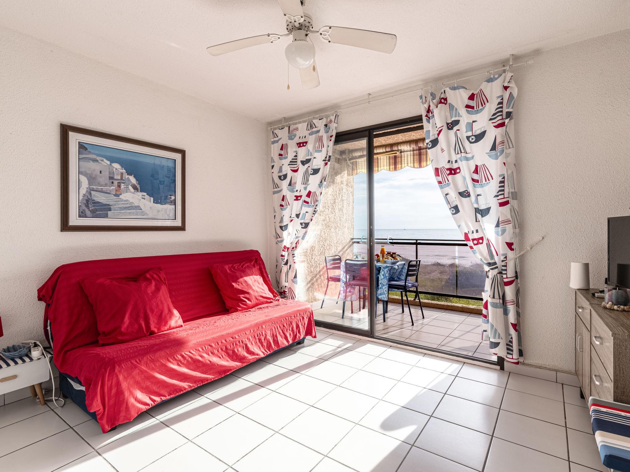 1-room studio 30 m2 on 1st floor. Beautiful furnishings: Studio with 1 double sofabed (140 cm, length 190 cm), dining table and TV (flat screen). Exit to the balcony. Kitchenette (2 ceramic glass hob hotplates, toaster, kettle, microwave, electric coffee machine). Shower/WC. Electric heating, air-conditioning. Balcony. Balcony furniture, sitting area. Beautiful panoramic view of the sea. Facilities: hair dryer. Internet (WiFi, free). Parking. Please note: smoke alarm. Offer by a private individual according to Art. 155, IV of CGI.