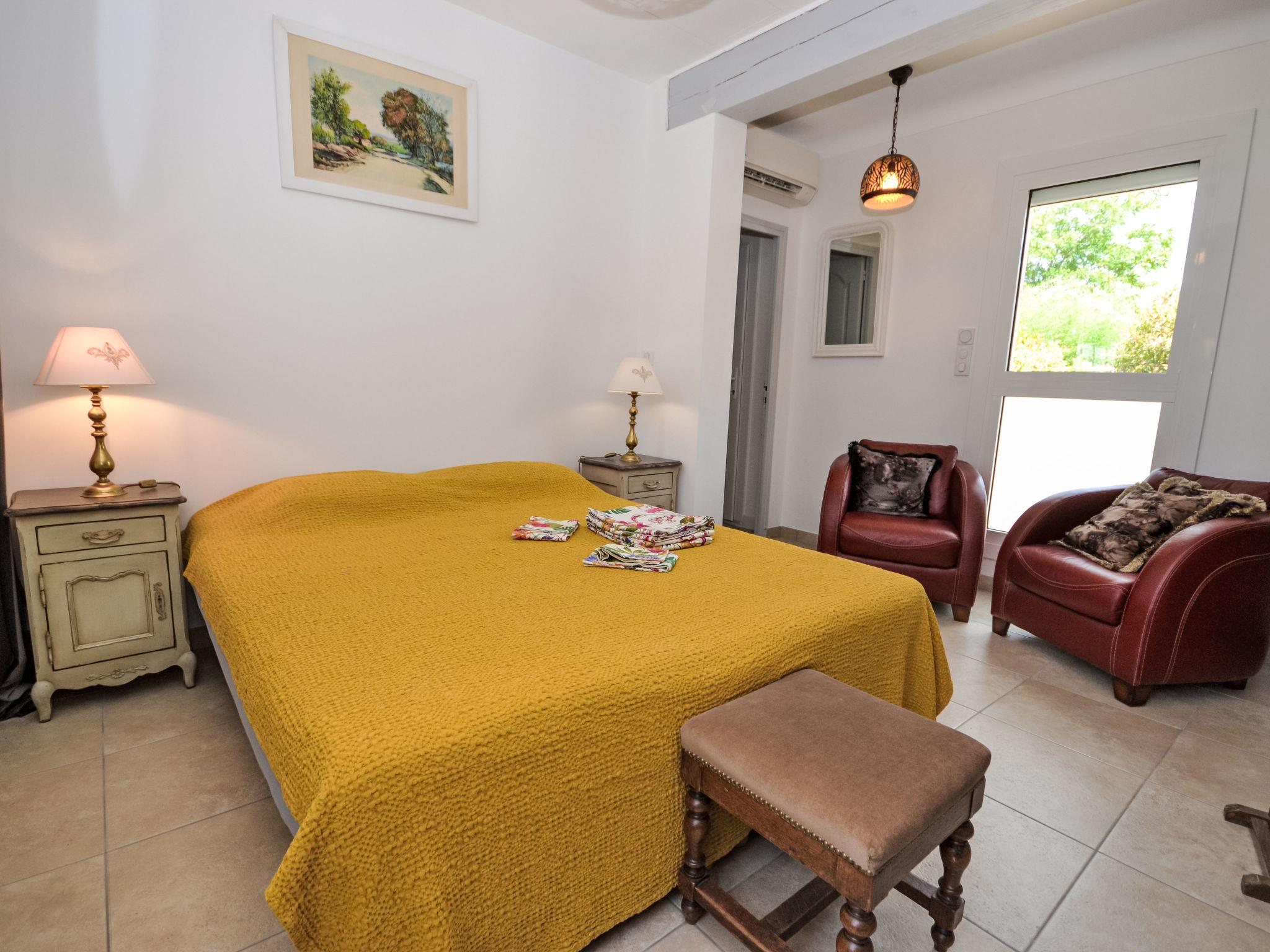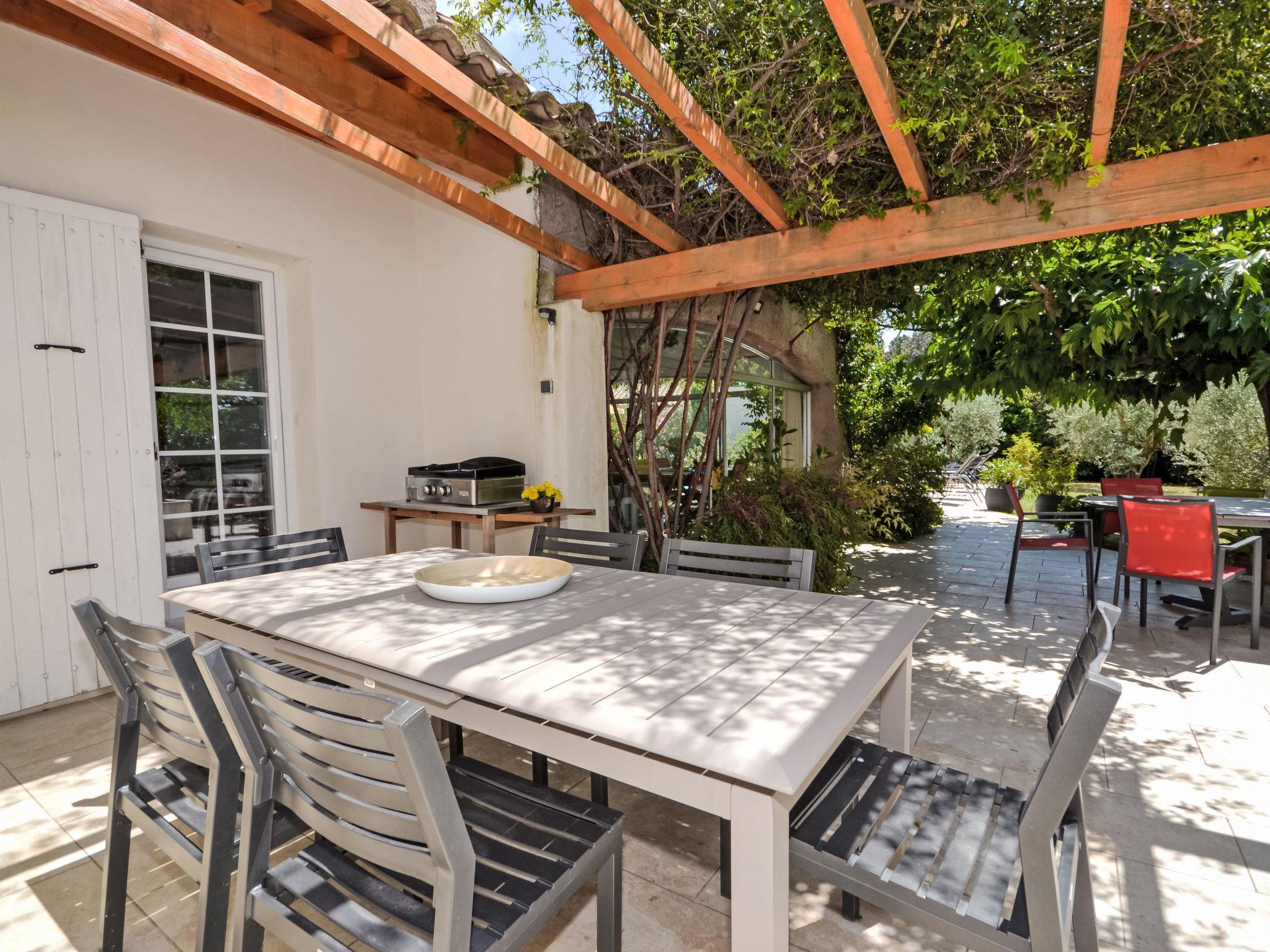 Beautiful villa "Les Angevines", renovated in 2025. In the resort 800 m from the centre of de Morières-les-Avignon, in a quiet position residential area (villas). Private: well-kept garden 1'170 m2 (fenced) with lawn and trees, swimming pool (4 x 8 m, depth 120 - 160 cm, seasonal availability: 12.Apr. - 25.Oct.) with internal staircase and alarm system. Terrace, garden furniture, barbecue, barbecue house, pool maintenance by the owner/gardener. Parking (for 3 cars) on the premises. Shop, grocery 800 m, supermarket 3.1 km, restaurant, bakery 500 m, bicycle rental 3.9 km, 5 minute walk to the centre, bus stop "Salvador" 700 m, railway station "Avignon TGV" 15 km, sandy beach 102 km. Golf course (18 hole) 400 m, tennis 50 m, riding stable 5.4 km, sports centre 50 m, children's playground 3.9 km. Nearby attractions: Avignon 10 km, L'Isle-sur-la-Sorgue 17 km, Gordes 33 km, Saint Rémy de Provence 23 km, Châteaurenard 14 km, Aéroport d'Avignon 5 km. Hiking paths: Parc Régional des Alpilles 30 km, Parc Régional du Luberon 21 km, Mont Ventoux 31 km. Please note: not suitable for small children. Not suitable for children under 6 years. The owner does not accept any youth groups. Residence with electric gates. Available: veranda, 30 m², with dining table.