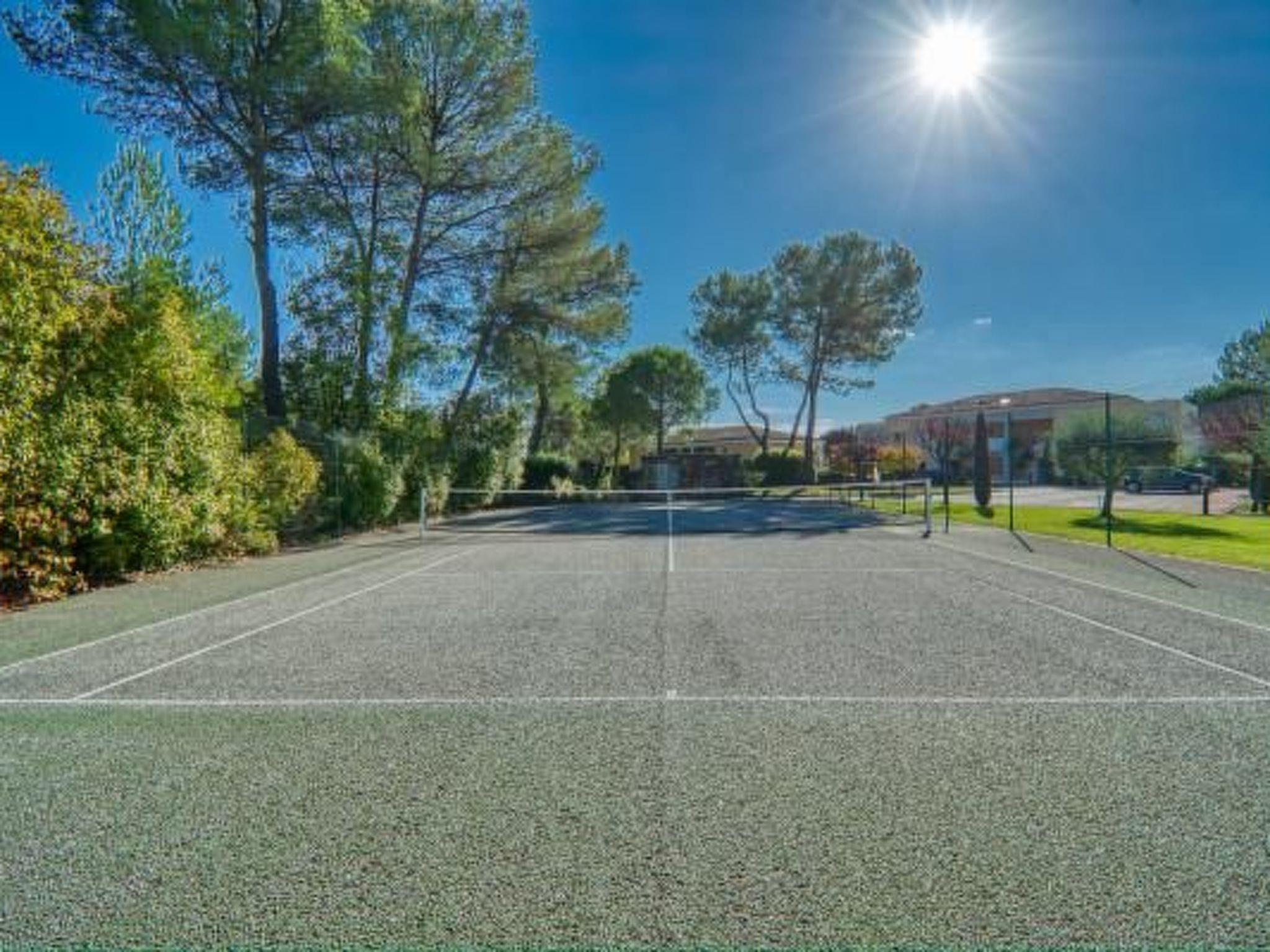 How to enjoy:In addition to your private areas, the holiday property with relaxed noblesse has direct and free access to1) to the spacious pool (about 20 by 12 metres) - partly shallow, partly long lane for swimming. Wonderful views of the surrounding mountains2) to the spacious pool relaxation area (> 500 m²) with comfortable equipment: sunbeds, parasols, reading tables, fountain and separate shower house3) the tennis court surrounded by trees, which our guests can also use free of charge and without registration. Even in high summer, the communal areas are easily accessible and seldom heavily frequented, often even free for sole use. The pool and tennis court are protected by a fence suitable for children. The private area is surrounded by a hedge (but which can be bypassed by dogs). You can move around the 20,000 m² park-like area of the residence undisturbed and safely. There is no flowing car traffic. Residents and guests enter the holiday complex via an access code. Views of the opulent nature & foothills of the Southern French Maritime Alps open up everywhere from the complex. The residence is serviced all year round (concierge & gardening team on site). The private and secured parking space completes your perfect holiday ambience.