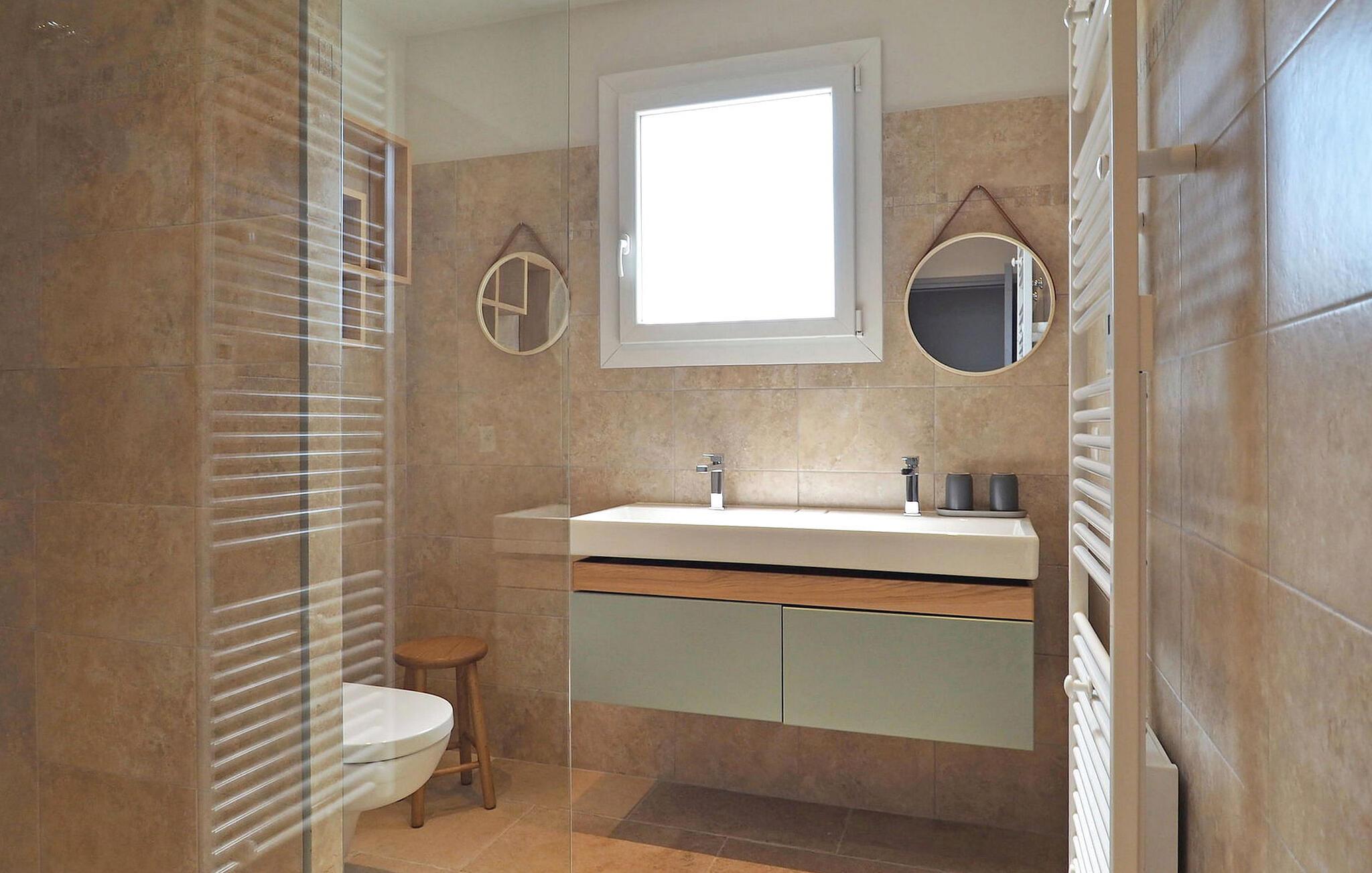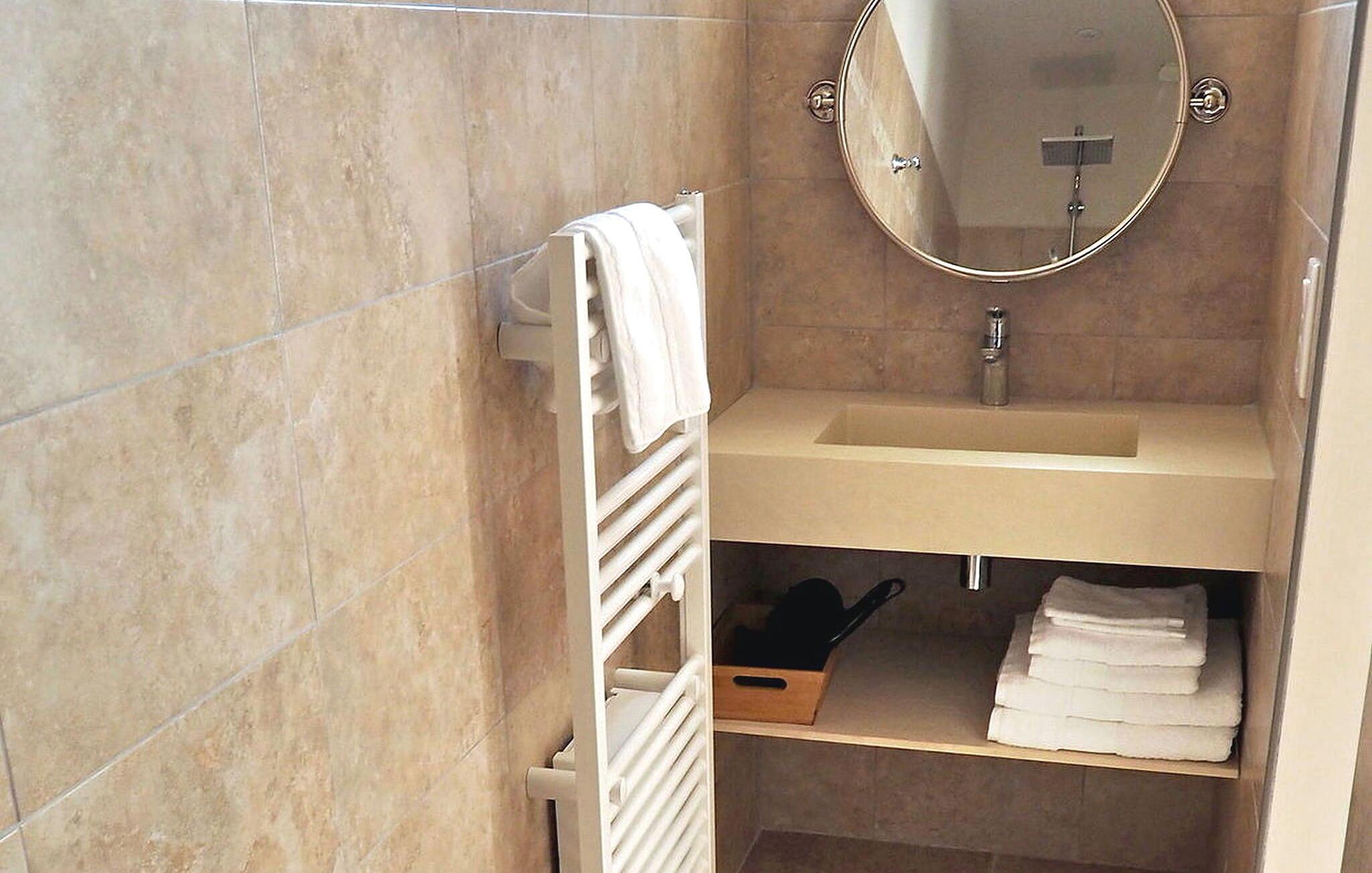 - WC mit warmem und kaltem Wasser, Dusche und Badewanne