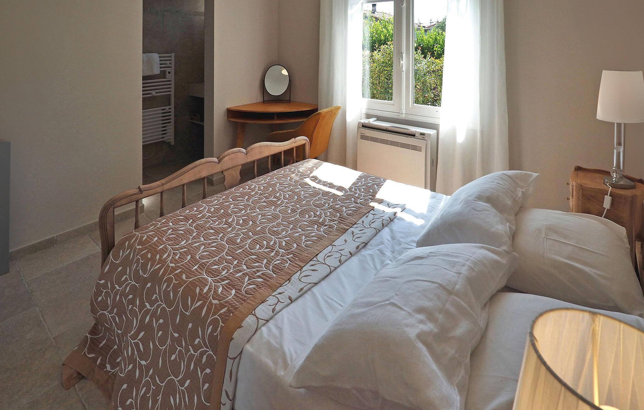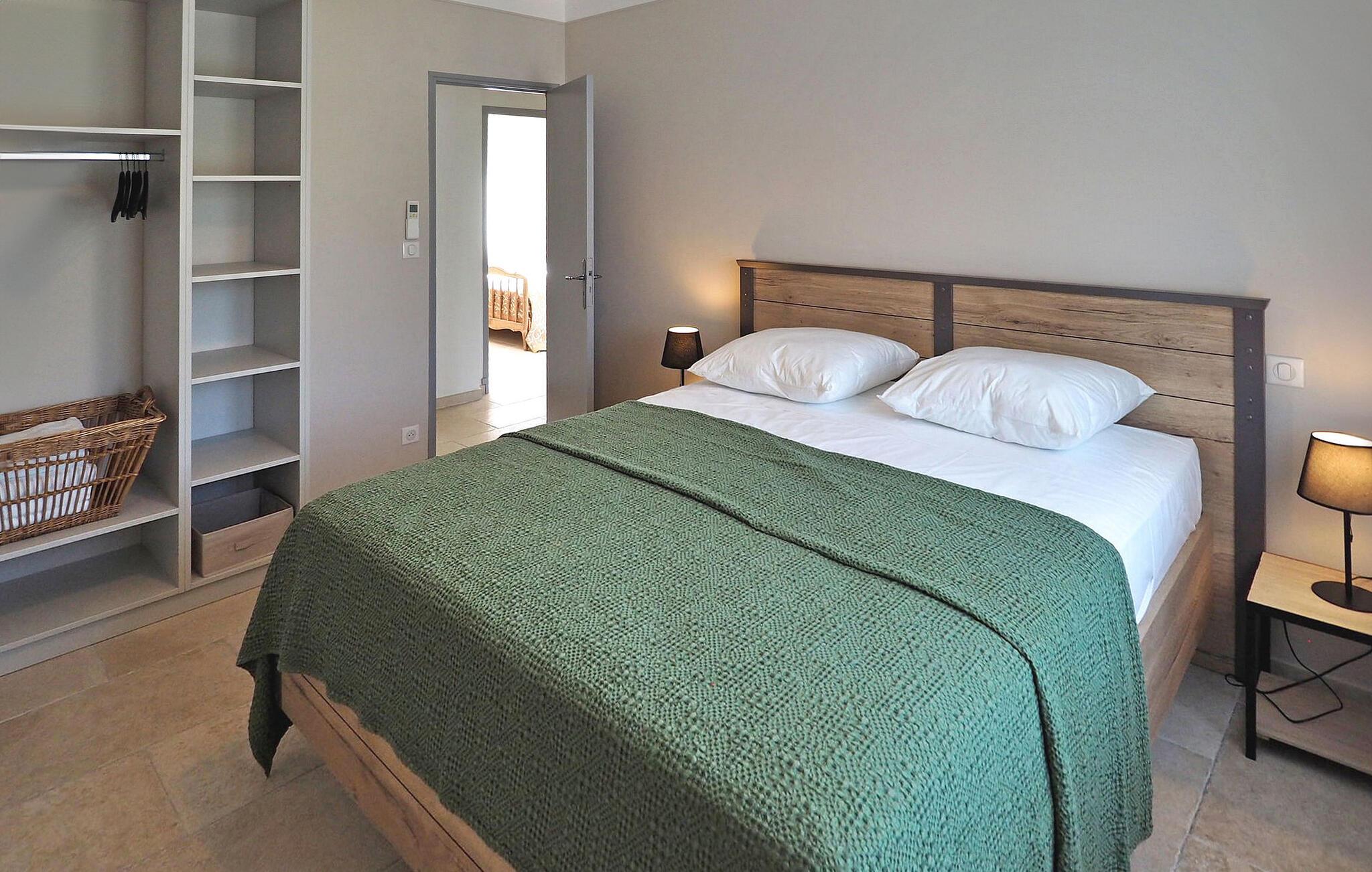 Diese kürzlich renovierte Ferienvilla verfügt über einen privaten geschlossenen Pool. Es ist voll klimatisiert und liegt ideal zwischen den Alpilles und der Camargue und bietet einfachen Zugang zu den Sehenswürdigkeiten in beiden Gebieten. Im Erdgeschoss, das über ein paar Stufen erreichbar ist, finden Sie einen Eingang vom Garten aus, eine voll ausgestattete Küche, eine Waschküche und einen Wohn-/Essbereich. Die Villa verfügt über eine Elternsuite, ein Schlafzimmer mit eigenem Bad, zwei weitere Schlafzimmer, WC und ein Duschbad. Draußen gibt es einen Grill, einen Gartenbereich vor dem Haus mit Sitzgelegenheiten und einen umzäunten Poolbereich mit einem großen privaten Pool (12 m x 6 m, Tiefe: 1,5 m – 2,4 m). Ein gut ausgestattetes Poolhaus bietet Möglichkeiten zum Kochen im Freien und Essen im Freien. Nächste Geschäfte im Zentrum von Moulès: Bäckerei und Minimarkt. Weitere Geschäfte in Saint Martin de Crau (5 km) mit Markt am Freitag. Die Stadt Arles ist 10 km entfernt.