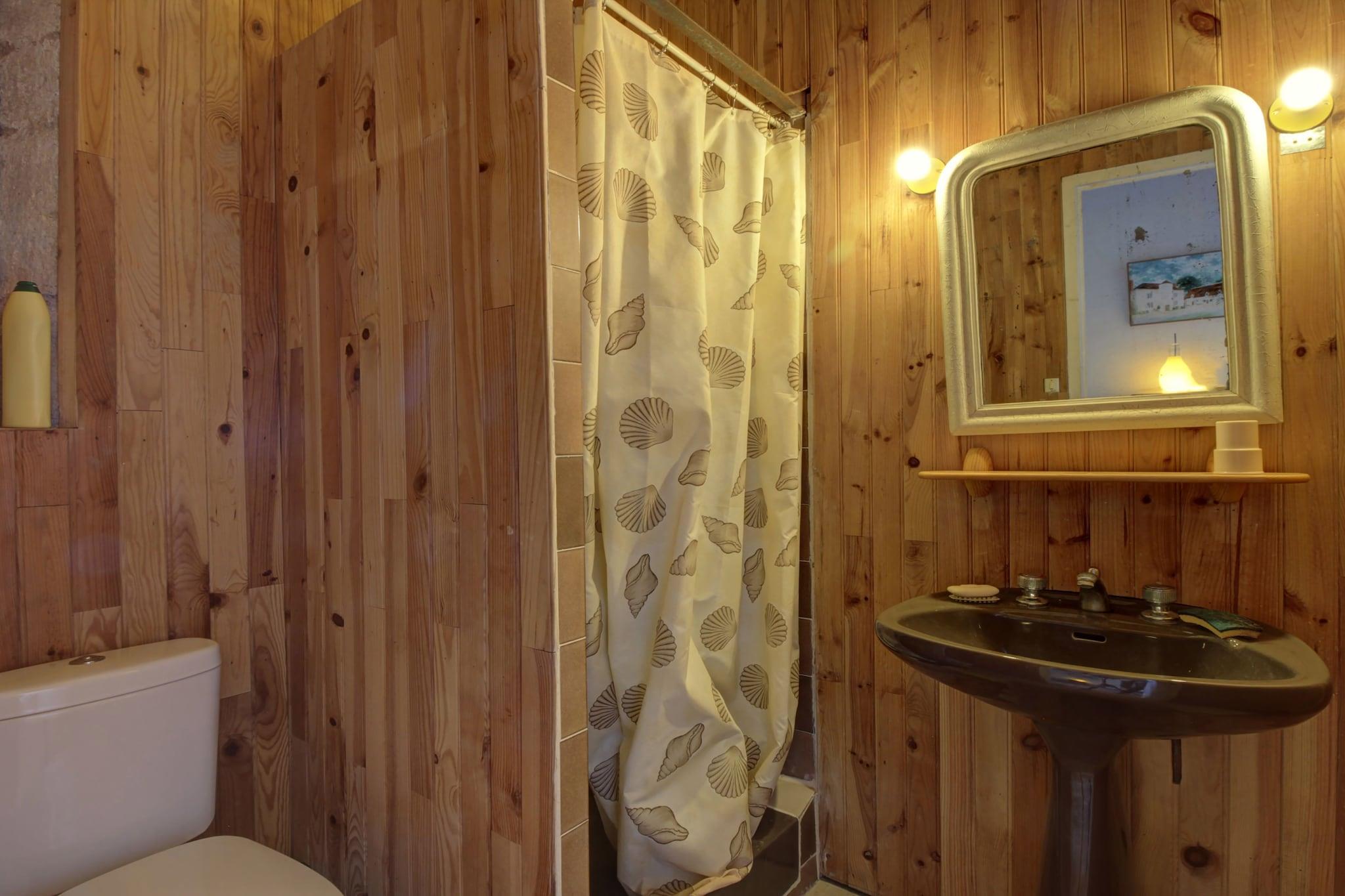 Ground floor: (Sitting room(fireplace), dining room(fireplace), Kitchen(oven, dishwasher, freezer), toilet(toilet), pantry) On the 1st floor: (Bedroom with bathroom(2x single bed, shower, washbasin), Bedroom with bathroom(2x single bed, shower, washbasin, bidet), Bedroom with bathroom(double bed, bath tub, washbasin, bidet), Bedroom with bathroom(double bed, bath tub, washbasin, toilet, bidet), toilet(toilet)) 2x single bed, washing machine, courtyard(private, fenced), garden, garden furniture, BBQ, table tennis table, billiards