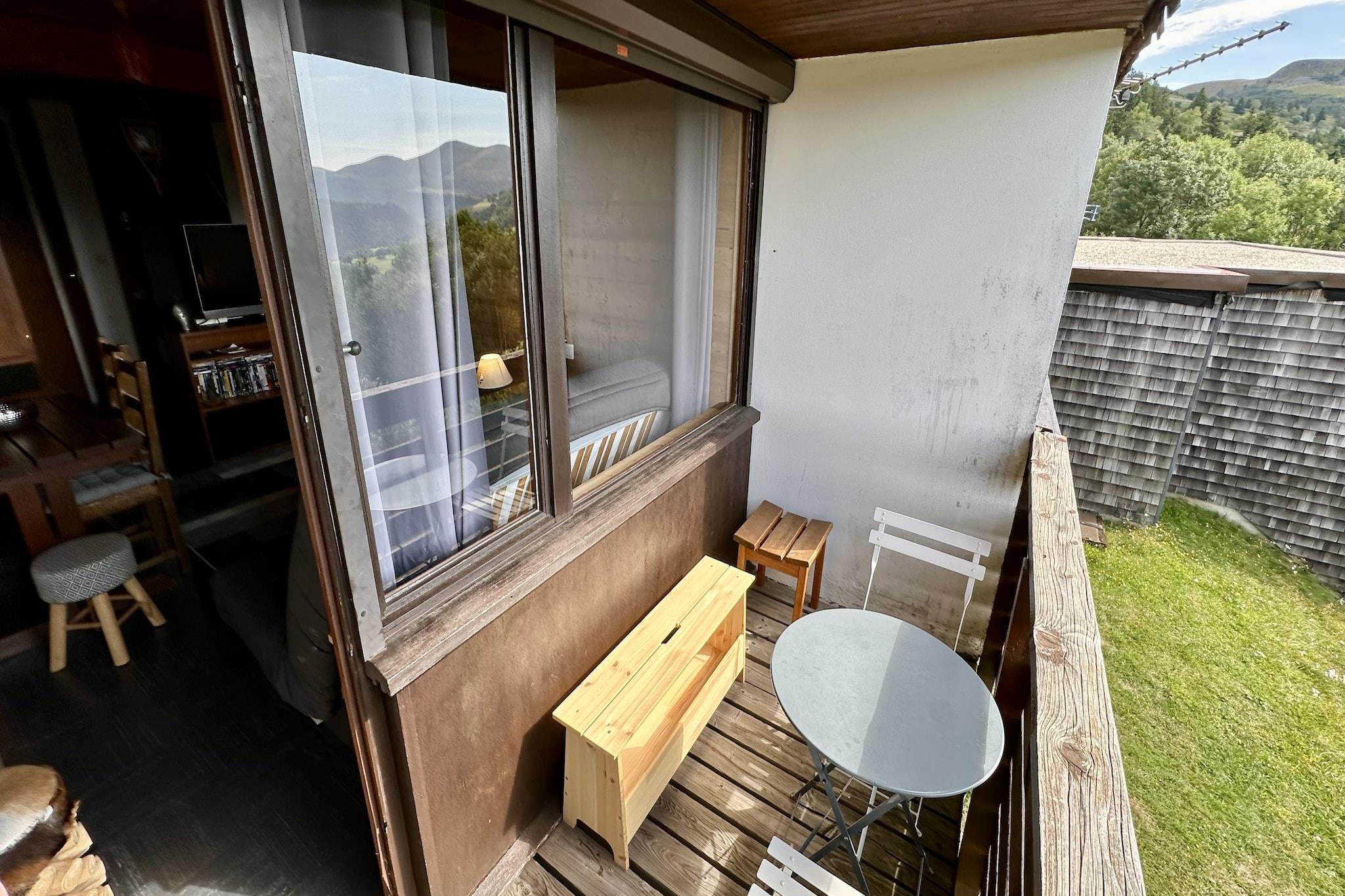 Located in Murat-le-Quaire, just minutes from La Bourboule, Le Joy is a welcoming apartment designed for up to five guests seeking tranquillity with convenient access to mountain adventures. Its peaceful setting offers a refreshing escape while remaining close to ski slopes and hiking trails. Inside, the elegant mountain view apartment features a cozy living and dining area featuring a double sofa bed, a TV, and a dining table - ideal for relaxing evenings after exploring the Sancy region. A fully equipped kitchen allows for easy self-catering, while the sleeping arrangements provide comfort in a compact bedroom furnished with a double bed and a single foldable bed - for families or small groups. The bathroom is modern and practical, and heating ensures warmth during colder months. Surrounded by natural scenery, the property offers a calm residential atmosphere with a pleasant balcony, ideal for having a coffee in the sun, breathing in the fresh air or admiring the surrounding landscape. Accessible parking and straightforward access to nearby towns offer convenience. It’s particularly well-suited for guests travelling with outdoor equipment. With ski resorts a short drive away and the thermal baths of La Bourboule nearby, guests enjoy the best of both active tourism and spa relaxation. Le Joy offers a balanced stay combining countryside calm and proximity to the Massif du Sancy’s year-round attractions.