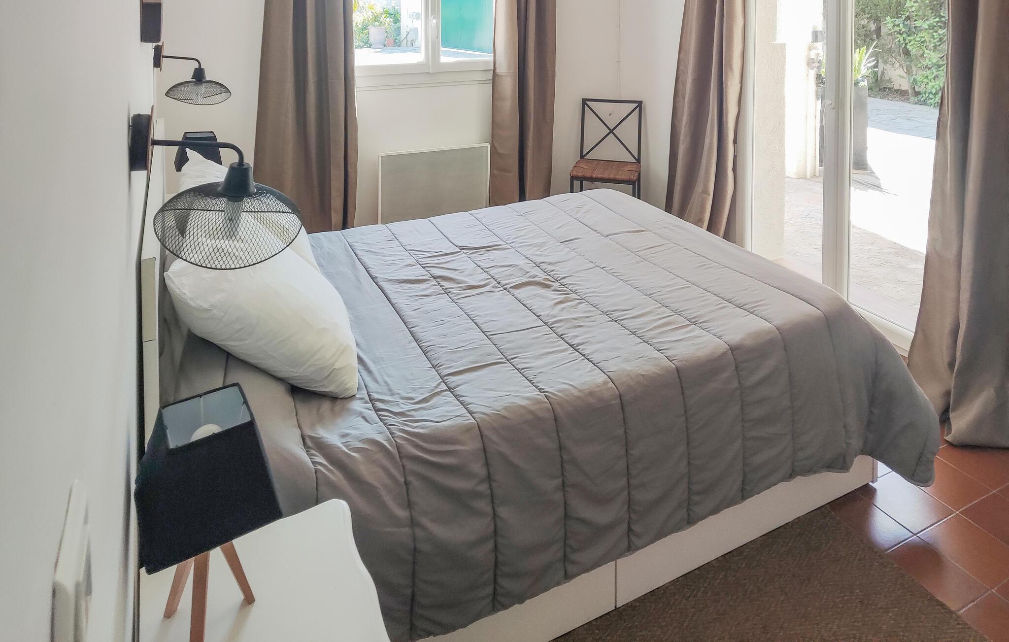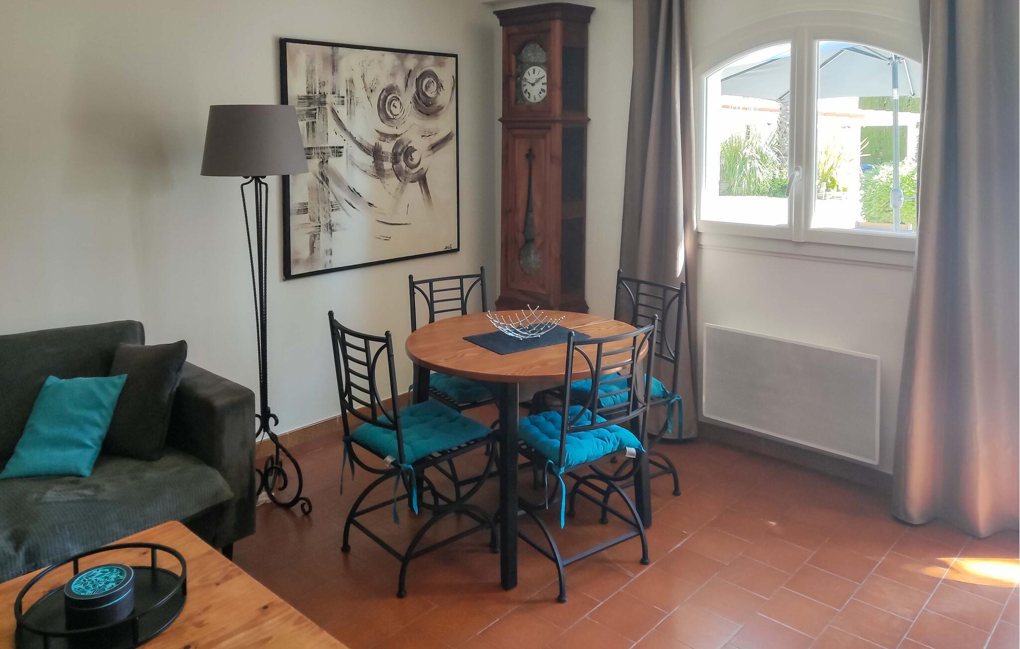 Die Ferienwohnung liegt im Erdgeschoss eines Hauses mit privatem Pool und auf einem eingezäuntem Grundstück in einer ruhigen Gegend, 25 Minuten vom Stadtzentrum von Montpellier und 30 Minuten von den schönsten Stränden des Mittelmeers entfernt. Die Wohnung bietet Platz in zwei Schlafzimmern, einem Badezimmer, einer Essküche und einem separaten WC.