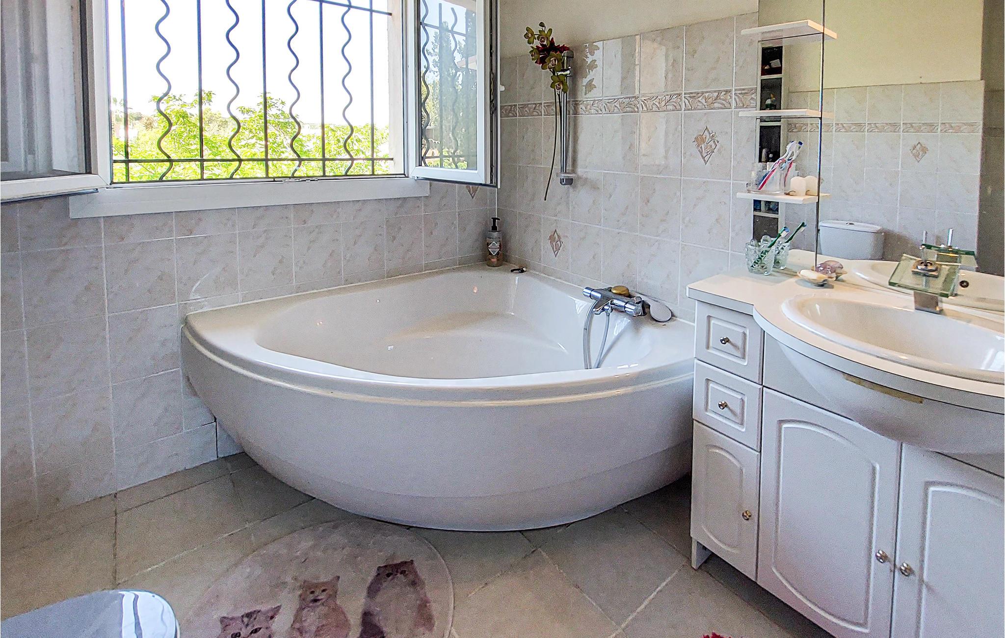 Freuen Sie sich auf einer schönen Zeit mit Ihrer Familie. Verbringen Sie auch, mit befreundeten Familien, hier einen erholsamen Urlaub. Das Haus, in ruhiger Umgebung, bietet Ihnen viel Platz sich, auch mit einer großen Gruppe, hier wohlzufühlen. Ein großer Wohnraum gibt Ihnen die Möglichkeiten gemeinsam auf den Sofas zu entspannen. Ausruhen können Sie auch auf der Sonnenterrasse, denn Liegestühle und Loungemöbel laden Sie zum Verweilen ein. Auch Ihre Mahlzeiten können Sie hier im Schatten einnehmen und Ihre Ausflüge und Aktivitäten für die anstehenden Tage planen.