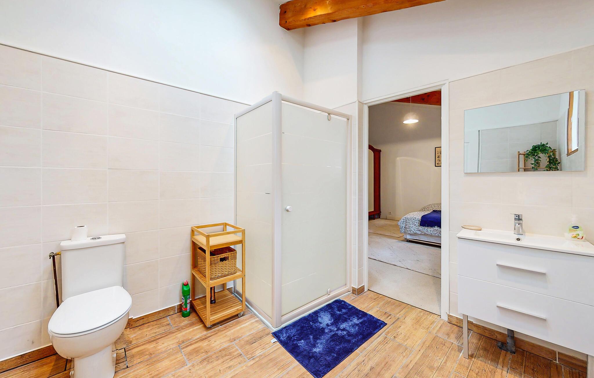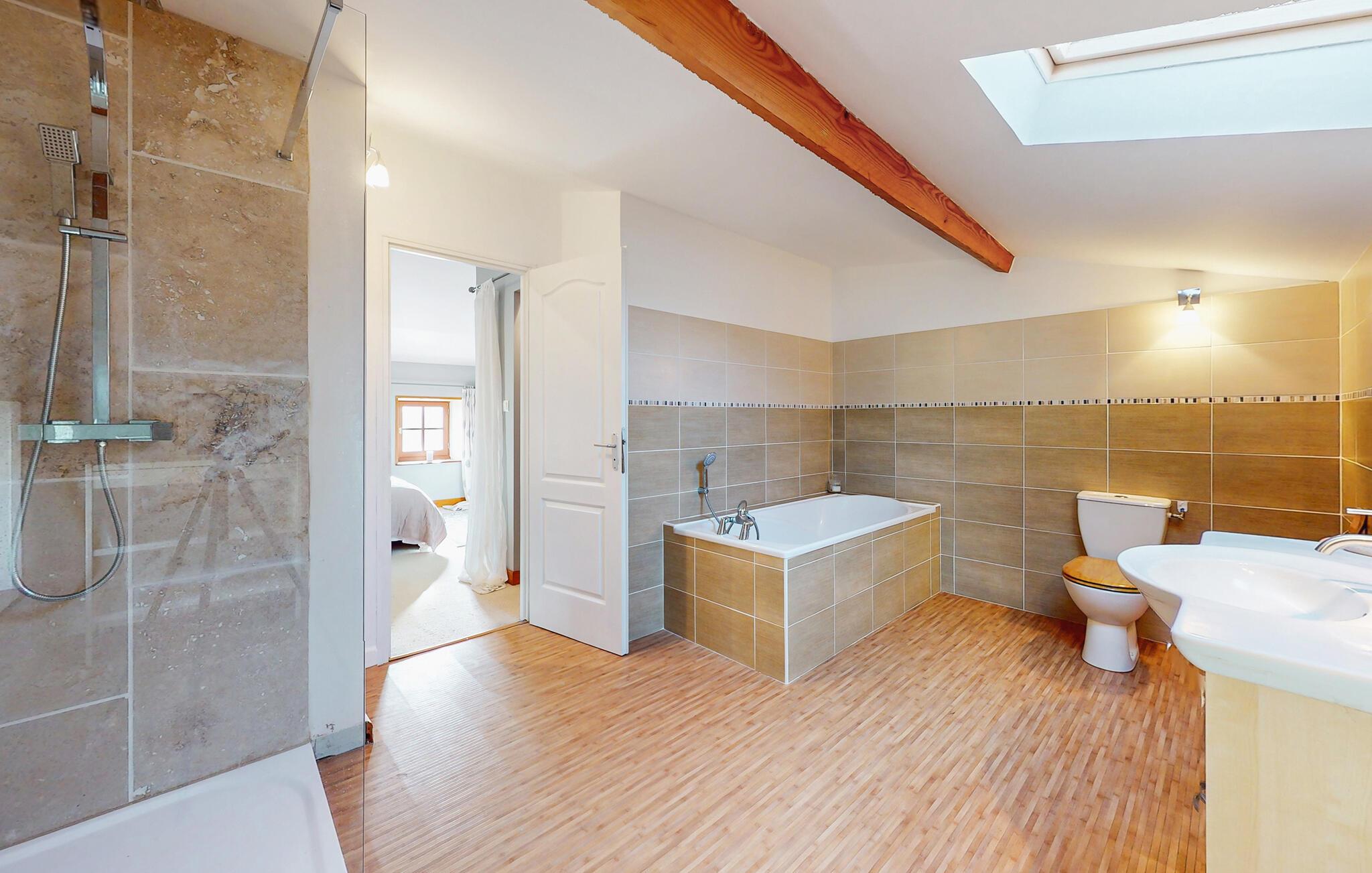 - WC mit warmem und kaltem Wasser, Dusche und Badewanne