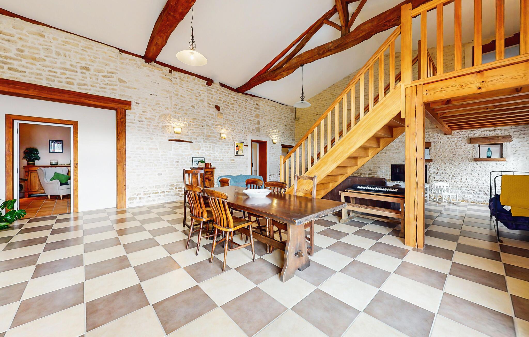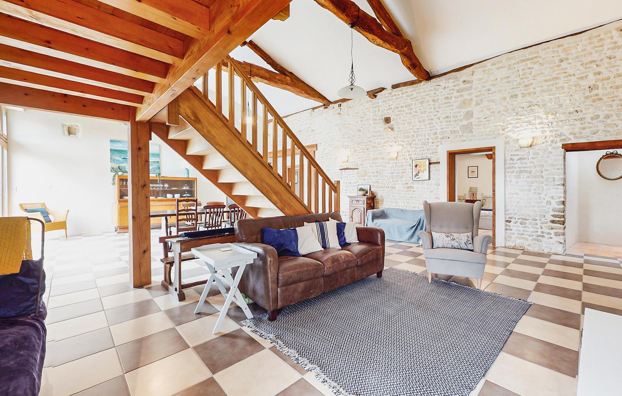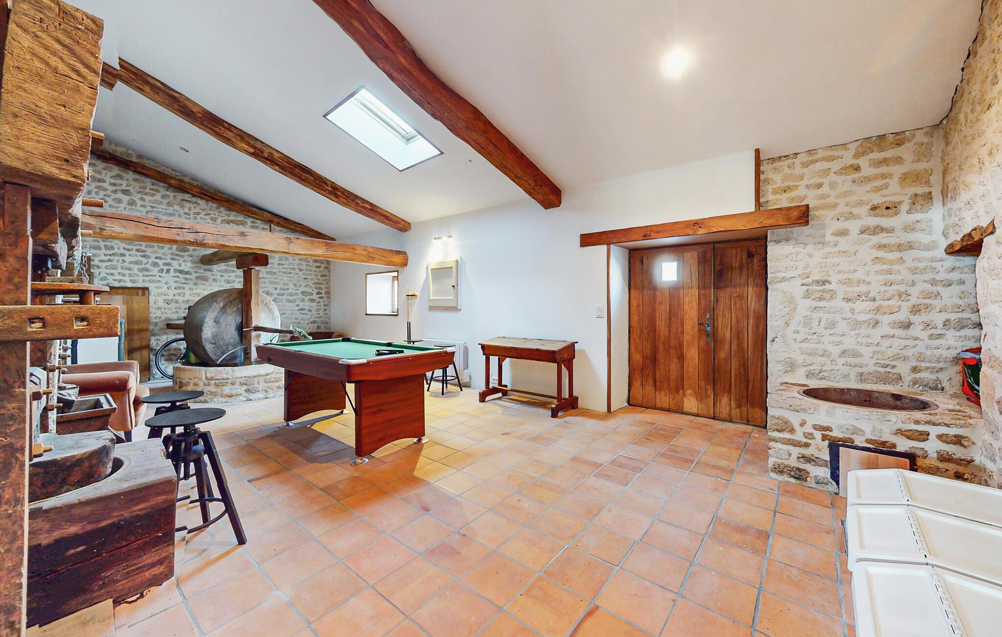 Dieses liebevoll restaurierte Landhaus verbindet rustikale Eleganz mit modernem Komfort und bietet viel Platz, um mit einer größeren Familie einen entspannten Urlaub zu verbringen. Veranstalten Sie Koch-Events in der geräumigen Küche und zelebrieren Sie Ihre Mahlzeiten im offenen Wohnbereich. Spielen Sie Billard, streamen Sie Ihre Lieblingsserie oder machen Sie es sich für einen Spieleabend auf einem der gemütlichen Sofas bequem.