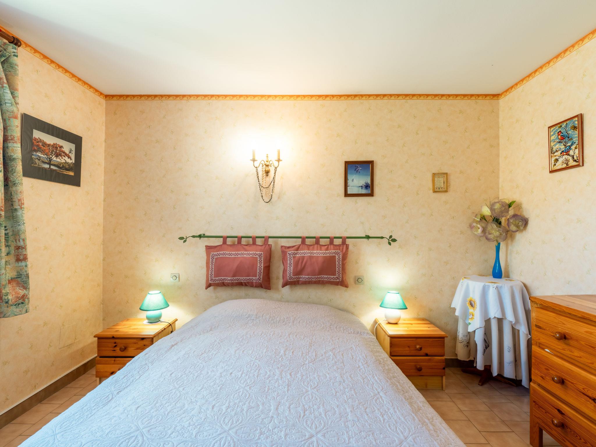 3-room house 80 m2, south-east facing position. Comfortable furnishings: living/dining room with 1 sofabed (140 cm, length 190 cm), TV (flat screen). Exit to the terrace. 2 rooms, each room with 1 french bed (140 cm, length 190 cm). Open kitchen (oven, dishwasher, 4 induction hot plates, toaster, kettle, microwave, freezer, electric coffee machine). Bath/shower, sep. WC. Electric heating, air-conditioning. Terrace 15 m2. Terrace furniture, barbecue. Facilities: washing machine. Internet (WiFi, extra). Parking (fenced 2 cars). Please note: smoke alarm. Offer by a private individual according to Art. 155, IV of CGI. FR6639.910.1.1