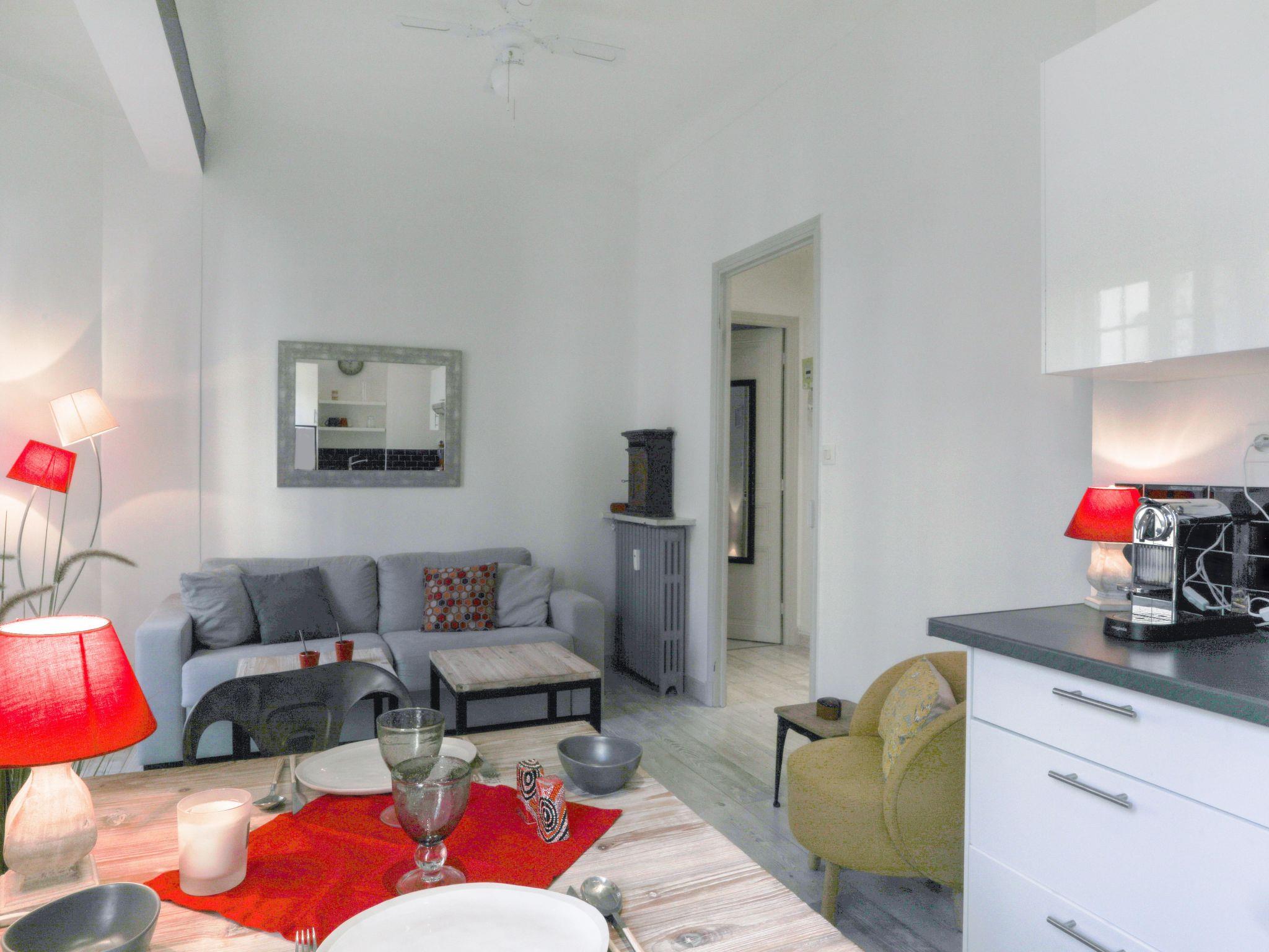 2-room apartment 40 m2 on 2nd floor. Spacious and bright, renovated in 2019, beautiful and modern furnishings: living room with 1 double sofabed (140 cm, length 190 cm), TV (flat screen). 1 large room with 1 french bed (160 cm, length 200 cm). Open kitchen (oven, 4 ceramic glass hob hotplates, toaster, kettle, microwave, freezer, grill, electric coffee machine). Shower/WC. Heating. View of the garden. Facilities: washing machine, iron, hair dryer. Internet (WiFi). Please note: apartment courtyard side. Non-smokers only. Smoke alarm. Offer by a private individual according to Art. 155, IV of CGI. 06088017027MX