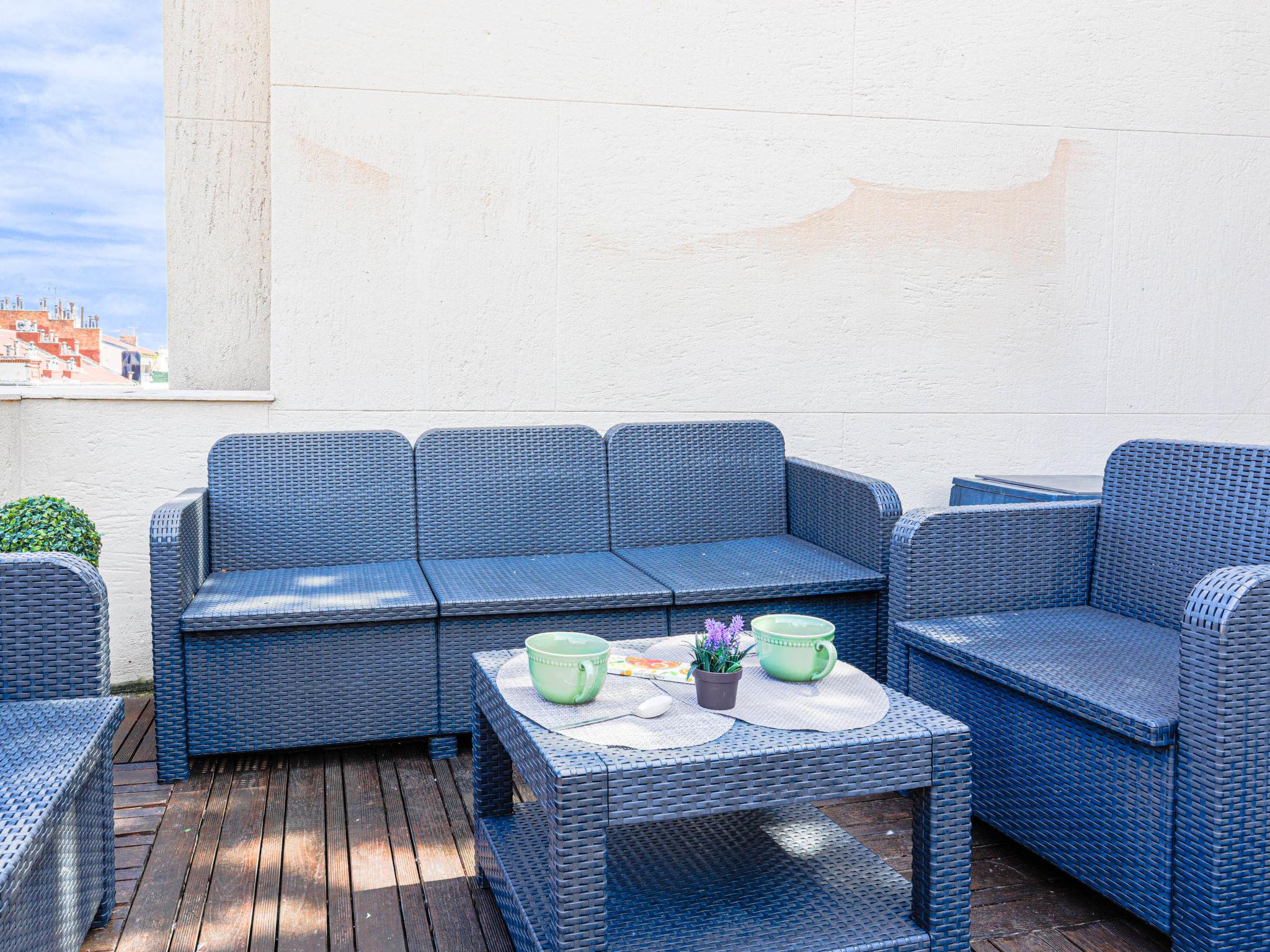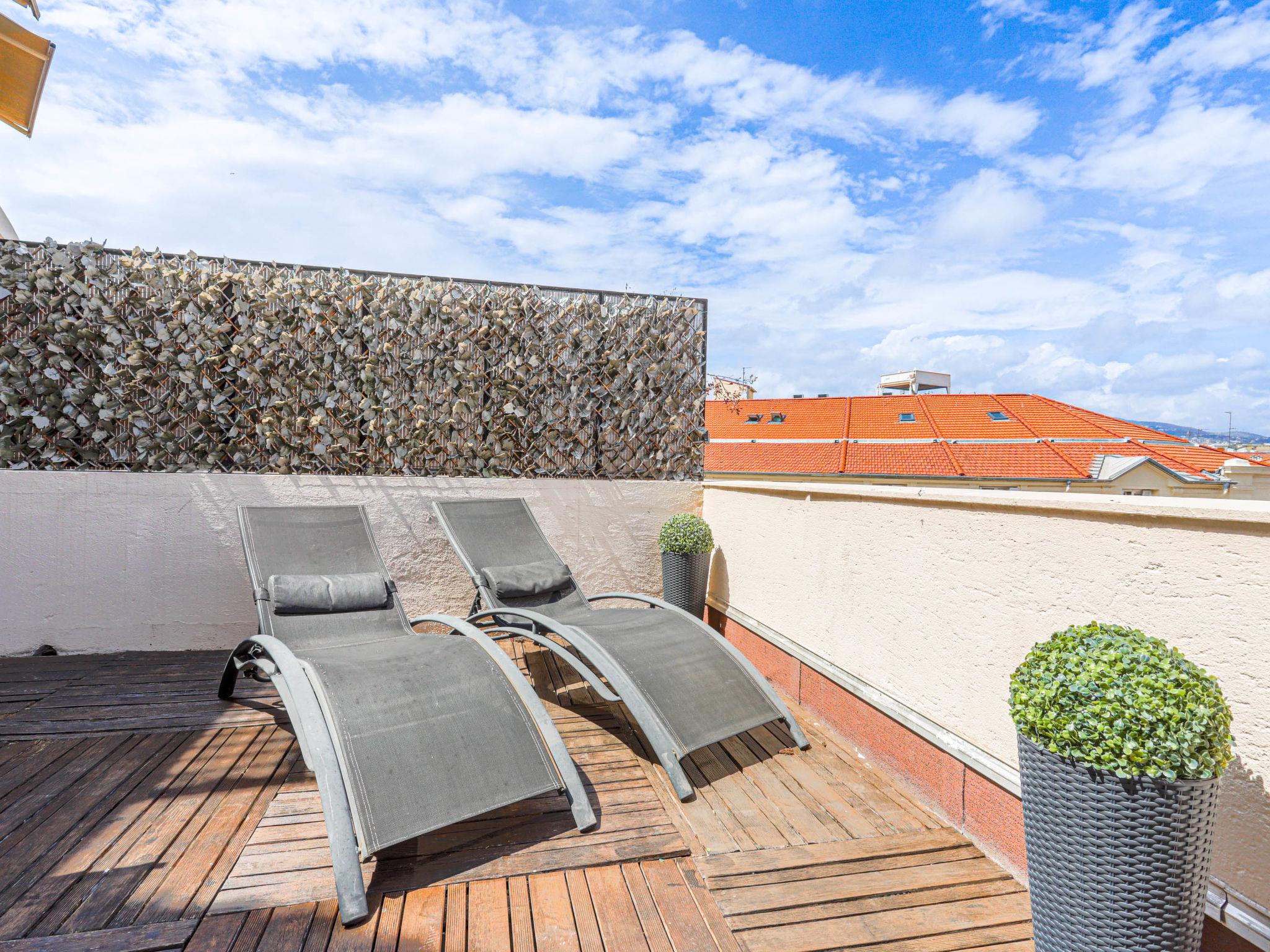 "Les terrasses de l'Escurial", 2-room apartment 30 m2 on 5th floor, east facing position. Beautiful and modern furnishings: living/dining room with 1 double sofabed (1 x 140 cm, length 190 cm), satellite TV and gas heating. 1 room with 1 french bed (1 x 160 cm, length 190 cm), air conditioning. Small kitchen (2 hot plates, mini-oven, oven, toaster, kettle, electric coffee machine). Bathroom, shower/WC. Oil heating. Large terrace 30 m2, west facing position. Terrace furniture, deck chairs (2). Beautiful panoramic view of the town. Facilities: washing machine, iron. Internet (WiFi, free). Please note: 1 small pet/ dog allowed. Smoke alarm. Offer by a private individual according to Art. 155, IV of CGI. 06088037335DP