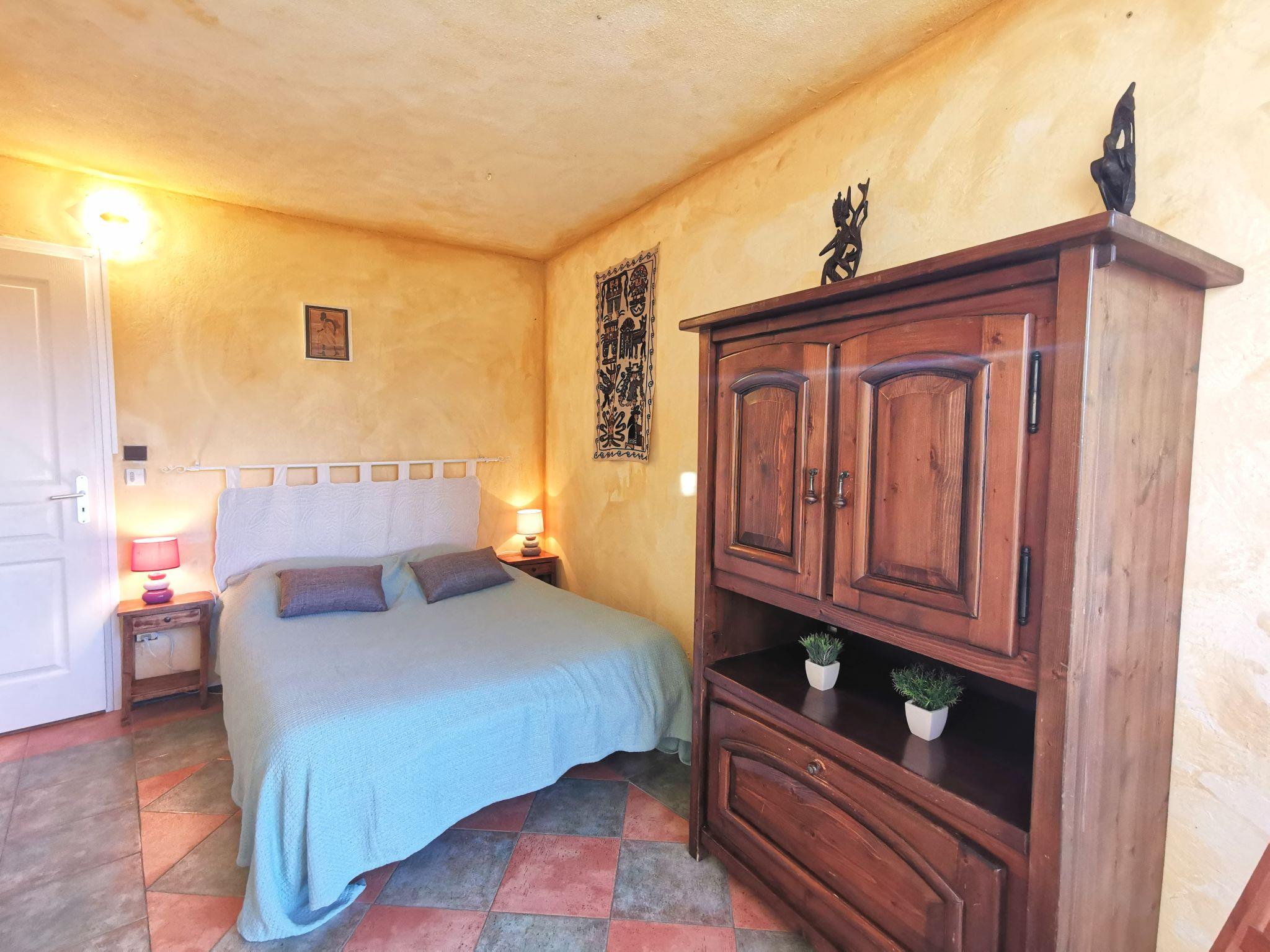 3-room house 100 m2. Bright, simple and practical furnishings: living/dining room with dining table and TV (flat screen), hi-fi system and electric shutters. Exit to the garden, to the terrace. 2 rooms, each room with 1 french bed (140 cm, length 190 cm). Exit to the garden, to the terrace. Open kitchen (4 hot plates, oven, dishwasher, 4 ceramic glass hob hotplates, toaster, kettle, microwave, freezer, electric coffee machine) with electric heater. Exit to the garden, to the terrace. Bathroom, sep. WC. Electric heating. Large terrace 80 m2, garden 171 m2. Terrace furniture, barbecue, deck chairs. View of the valley. Facilities: washing machine, iron, hair dryer. Internet (WiFi, free). Parking space n 52 (fenced 1 car). Please note: maximum 1 pet/ dog allowed. Smoke alarm. 06088000868XC