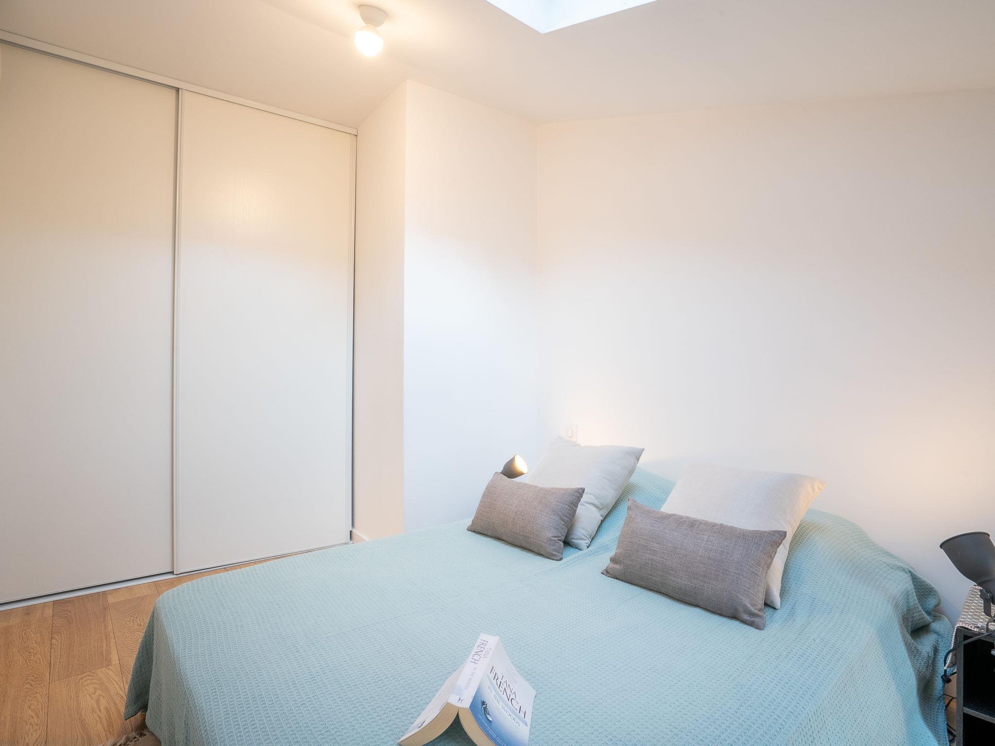 2-room apartment 35 m2 on 3 levels on 1st floor. Bright, beautiful and modern furnishings: living/dining room with panoramic window with air conditioning. Exit to the balcony. Kitchenette (4 induction hot plates, microwave, electric coffee machine). Heating, air-conditioning. Upper floor: gallery with TV (flat screen). 2nd upper floor: gallery with 1 french bed (140 cm, length 190 cm), shower/WC and air conditioning. Small balcony 10 m2. Balcony furniture. Facilities: washing machine, iron, hair dryer. Internet (WiFi, free). Please note: apartment courtyard side. Instead of an enclosed bedroom, some sleeping areas are located in an open-plan area (gallery, alcove, etc.). 06088009695MX