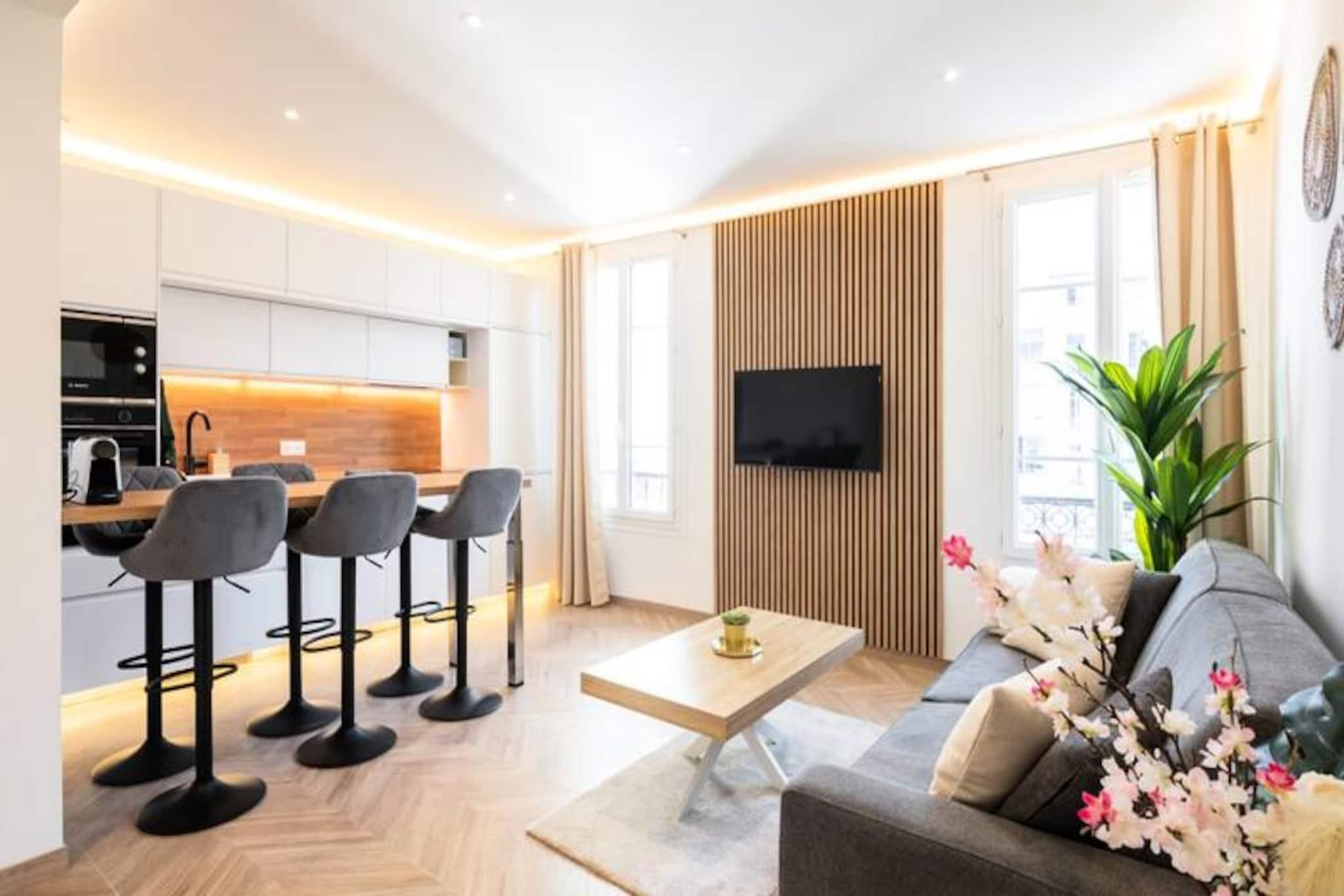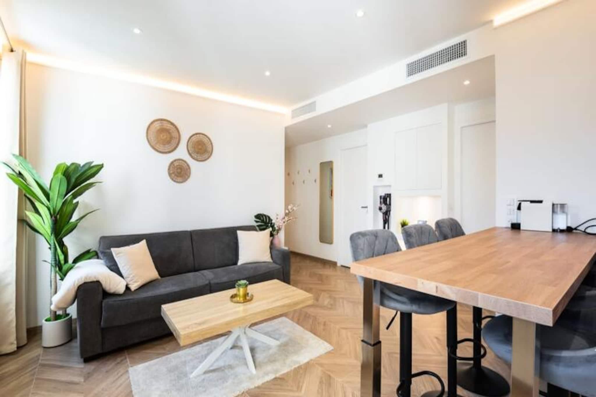 In the heart of Nice’s charming Fabron district, this modern retreat offers a serene escape just moments from the sparkling Mediterranean. Imagine starting your mornings with a leisurely stroll to the iconic Promenade des Anglais, where the sea breeze and golden sands set the tone for a perfect day. Whether you’re here to relax or explore, this apartment provides the ideal base for an unforgettable Riviera experience. Step inside this beautifully designed 50m² apartment, where contemporary comfort meets effortless style. The space features two cozy bedrooms with storage beds and TVs, a bright and airy living room with a sofa bed and smart TV, and a sleek open-plan kitchen equipped with everything you need, from an induction hob to a Nespresso machine. The elegant bathroom boasts a walk-in shower, while centralized air conditioning and Wi-Fi ensure your stay is as comfortable as it is convenient. Perfectly positioned, this apartment places you just a stone’s throw from Nice’s most beloved attractions. The beaches and Promenade des Anglais are mere minutes away, inviting you to soak up the sun or enjoy a scenic walk along the coast. With the tram nearby, you can easily reach Old Nice, Place Masséna, and the vibrant city center. Restaurants, cafes, and shops are all within easy reach, while Nice Airport is just a 10-minute drive away, making your arrival and departure seamless. Whether you’re savoring local cuisine, exploring cultural landmarks, or simply unwinding by the sea, this Fabron gem promises a Mediterranean getaway filled with charm and relaxation.