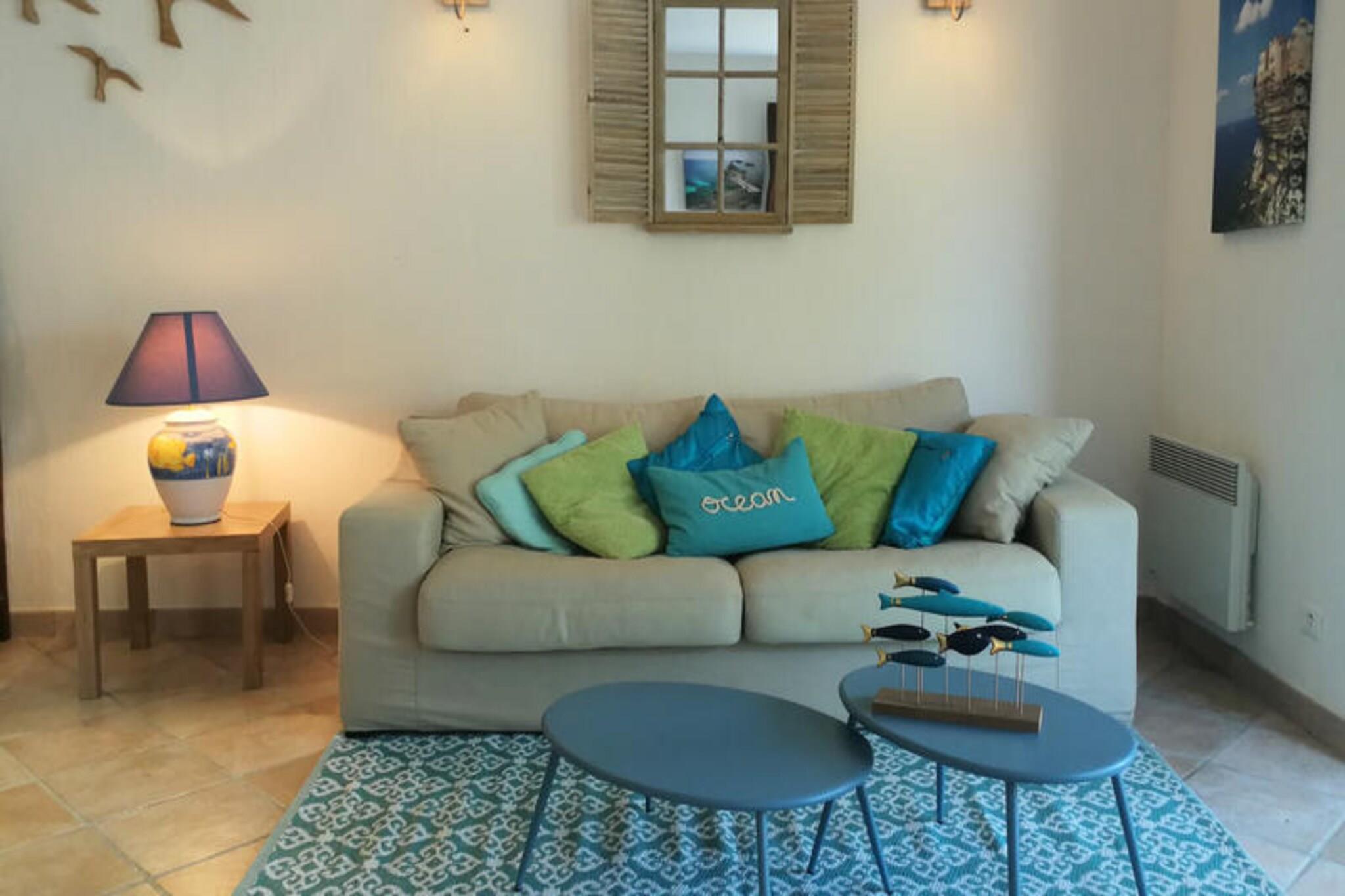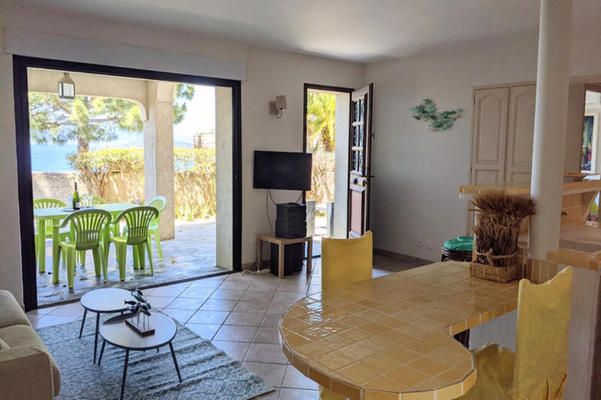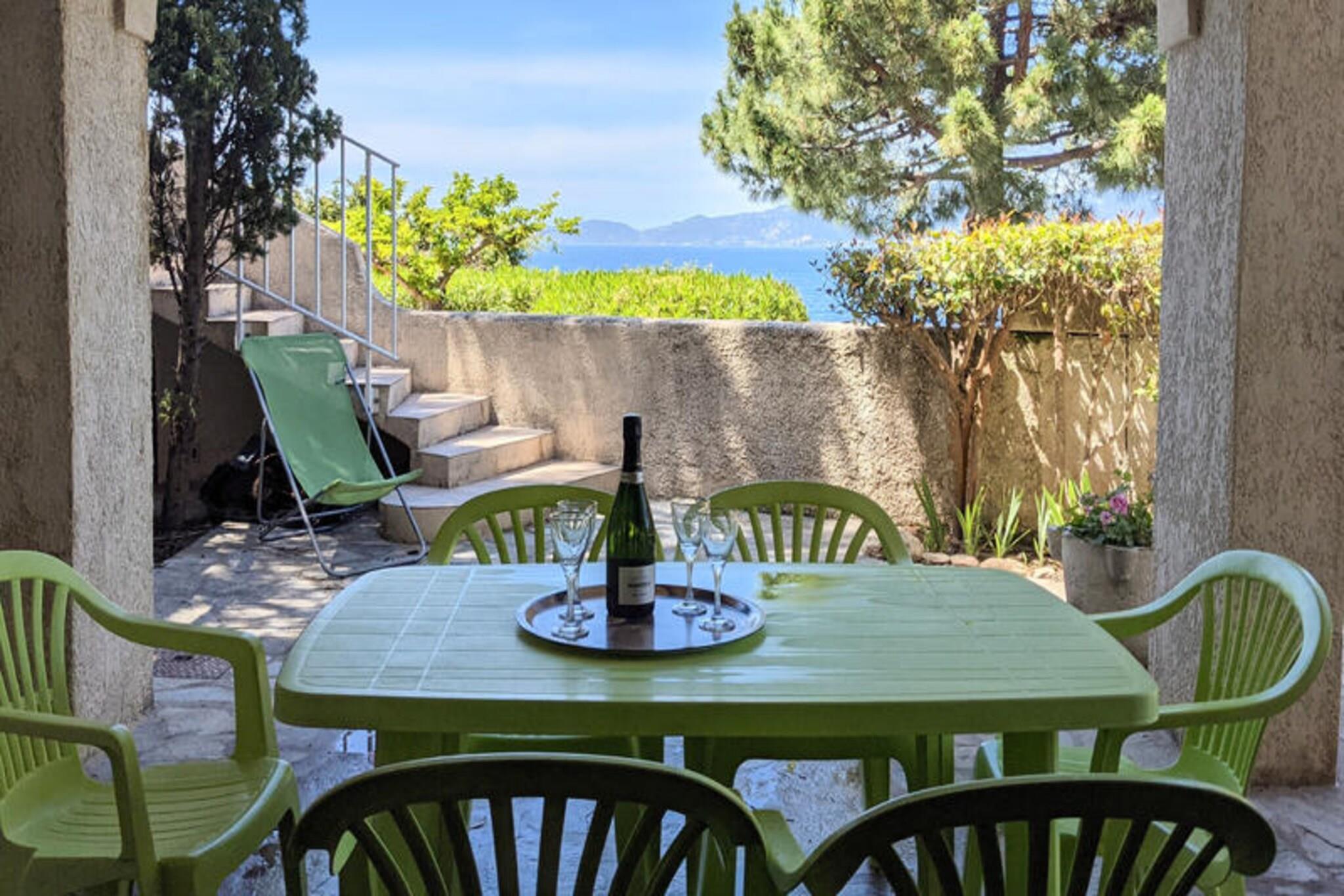 This charming villa is nestled less than 400 meters from the sandy shores near Ajaccio, offering the perfect retreat for families or groups of friends seeking a relaxing getaway in South Corsica. With a generous 200m² of space, the villa is fully air-conditioned and divided into two independent apartments, each featuring private entrances for added privacy and comfort. The upper apartment boasts a bright and airy living-dining room with a flat-screen TV, a fully equipped American kitchen, a double bedroom, and two additional rooms with single beds. There are also a bathroom, shower room, and a separate toilet. Each room offers stunning views of the sea, enhancing your stay with a sense of tranquility. The lower apartment also offers a spacious living-dining area with an American kitchen, a double bedroom, a room with single beds, and two shower rooms with toilets. The villa's large terraces are perfect for enjoying the breathtaking views of the sea and the Sanguinaires Islands, while the surrounding garden area features a barbecue, ideal for outdoor dining. Located just 300 meters from Silver Beach, the villa offers easy access to beautiful coastal surroundings. It’s also a short 10-minute drive to Porticcio and only 25 minutes from Ajaccio, where you can explore local attractions like the historic Ajaccio Old Town, the Napoleon Bonaparte Museum, and the scenic Calanques de Piana. Perfectly situated for those wanting to enjoy the beauty and serenity of Corsica’s coastline.