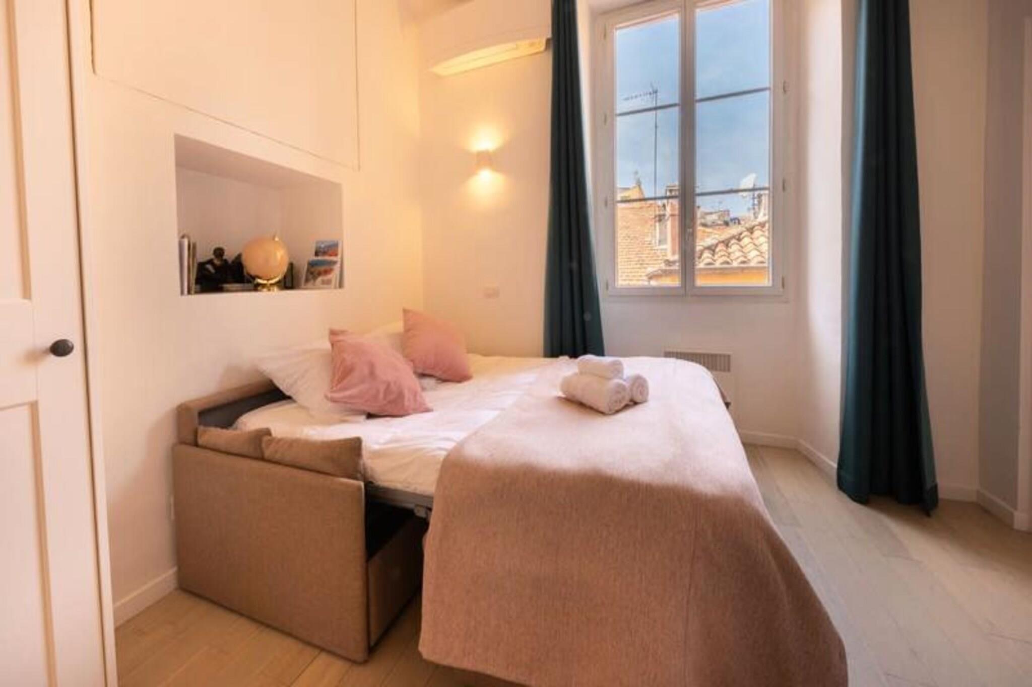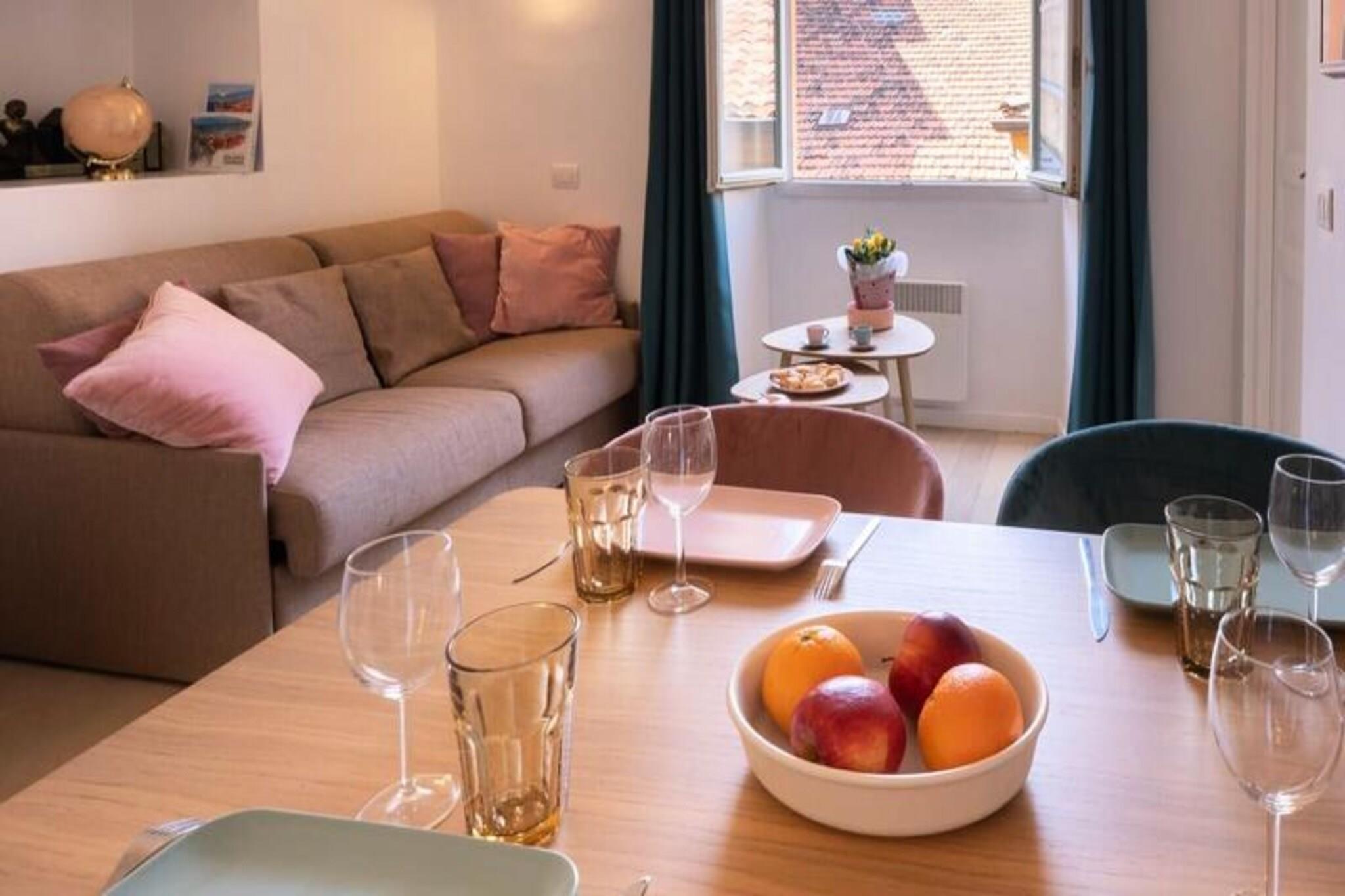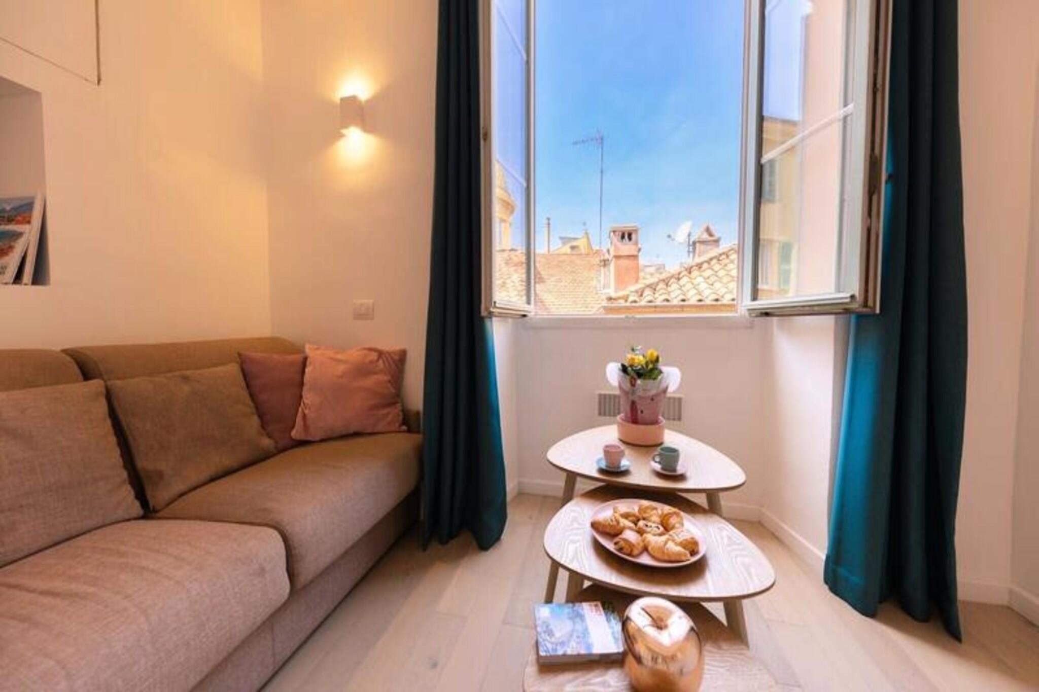 Nestled in the vibrant heart of Old Nice, this charming and modern apartment offers stunning views of the Sainte Réparate Cathedral's dome. Ideally located just steps from the iconic Promenade des Anglais and Place Masséna, the apartment is perfect for discovering the beauty of Nice and its surrounding areas. With its prime location, you will be just 300 meters from the sea, and the apartment is surrounded by charming alleys, shops, bars, and restaurants. You are also just a short walk from Place Rosetti and the famous Cours Saleya market. Public transport is easily accessible, with the tram stop at the Old Town Cathedral only a 3-minute walk away. This apartment offers the ideal mix of tranquility and proximity to the vibrant life of the city, making it the perfect base for exploring the best of Nice. The apartment features a spacious living room, a fully equipped kitchen, a cozy bedroom, and a bathroom. Situated on the 3rd floor of a traditional Nice building without an elevator, it comfortably accommodates up to four guests. The master bedroom with a double bed offers a superb view of Old Nice and the cathedral, while the living room with a convertible sofa provides a relaxing space to unwind.