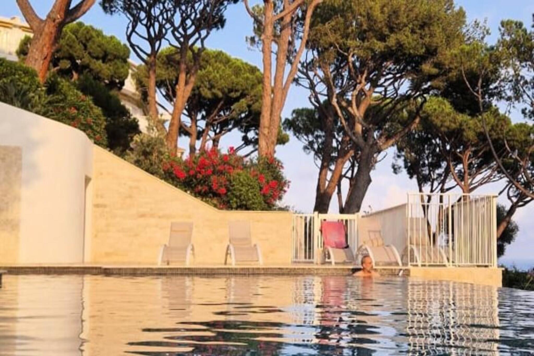 This Mediterranean-inspired apartment offers a luxurious, suite-like experience with breathtaking views from St. Jean Cap Ferrat to the Esterel. South-facing and air-conditioned, the apartment features a spacious terrace, perfect for relaxing and soaking in the stunning scenery. It consists of a double bedroom with plenty of storage space and an alcove with a single bed (which can be closed off with a curtain for privacy). The marble bathroom adds a touch of elegance. The residence also offers access to a 15-meter swimming pool and parking within the complex. While pets are not allowed, additional services can be arranged upon request. The apartment is located in the prestigious Mont Boron district, one of the most chic and tranquil areas of Nice. It offers a peaceful retreat, away from the crowds and traffic, yet is conveniently close to the port and all the attractions of the city. To reach small coves and the sea, you can take a long staircase down the hillside. The location provides easy access to the Mediterranean coastline and beautiful natural surroundings. Public transportation is easily accessible with three bus lines stopping right at the foot of the building. For those who prefer more flexibility, renting a car is recommended, with parking available within the residence. Guests can enjoy full access to the apartment, the surrounding park, and the residence’s swimming pool. The kitchen and living area are designed for comfort and ease, allowing you to enjoy the sea view from anywhere inside. The property’s layout offers an open and airy atmosphere, perfect for a relaxing stay in the heart of the Mediterranean. Our team is available to provide information and assist during your stay, ensuring a smooth and memorable visit.