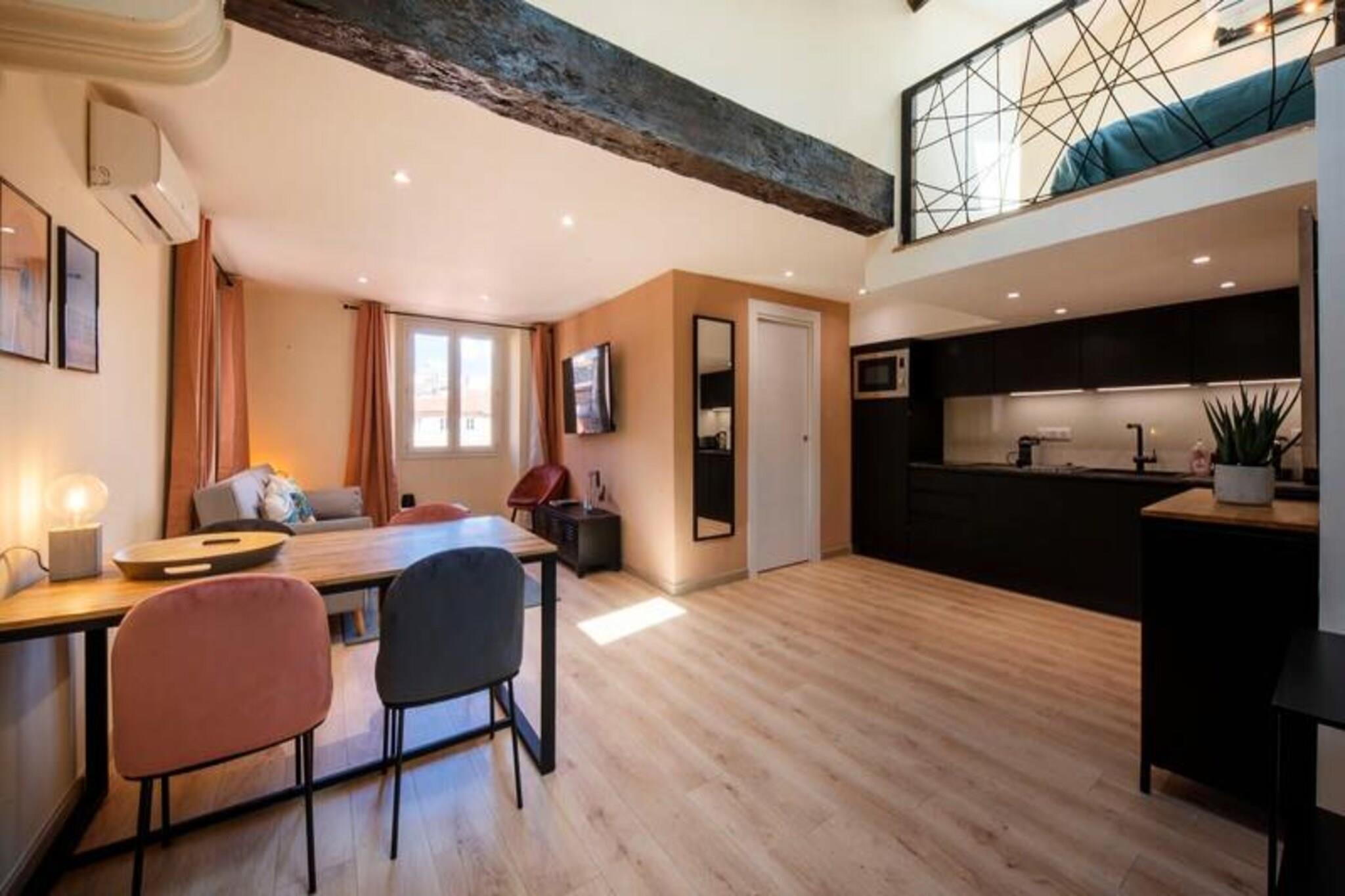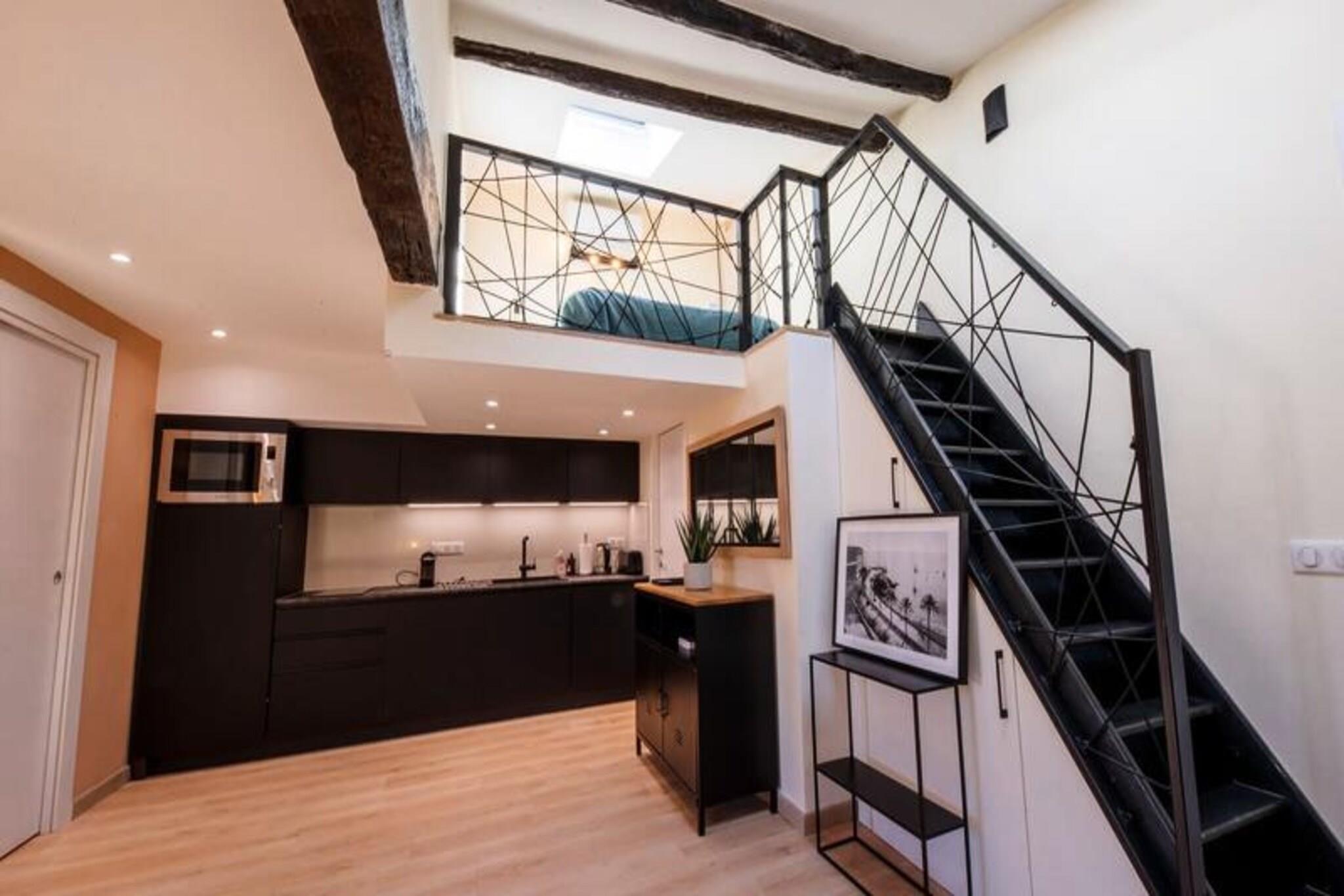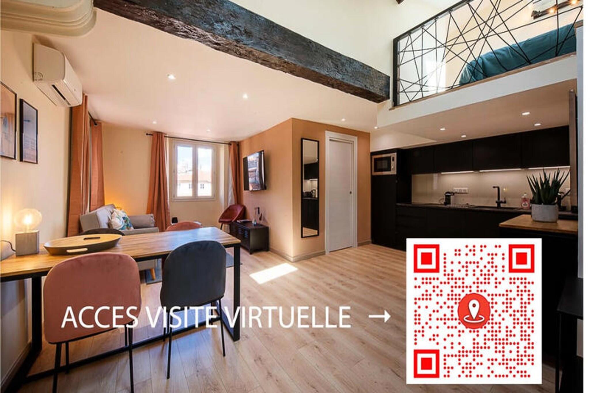Property along with a modern charm offers a spacious and well-lit retreat in the heart of Old Nice, accommodating up to four guests. The apartment features a cozy living room with high ceilings and skylights that flood the space with natural light, an open kitchen, a master bedroom with a double bed and stunning views of Sainte Réparate Cathedral, and a mezzanine with a second double bed. Designed for comfort and functionality, this top-floor apartment ensures a serene stay while offering panoramic views of the historic surroundings. Located on Rue du Jésus, in the liveliest yet peaceful district of Old Nice, the apartment is a short walk from Place Rosetti and the bustling streets filled with shops, bars, and restaurants. The iconic Promenade des Anglais and Place Masséna are just steps away, while the sea is a mere 300 meters from your doorstep. For easy access, the Old Town Cathedral tram stop is a 3-minute walk, and several paid parking options are available nearby. This location is perfect for exploring both the vibrant city life and the serene coastal beauty of Nice. Additional amenities include access to the entire apartment, a well-equipped kitchen, and a welcoming team available throughout your stay. While the building retains its traditional Nice charm without an elevator, the fourth-floor apartment rewards guests with breathtaking views. A security deposit is required and managed securely through Swikly, ensuring peace of mind. This property is ideal for those seeking a blend of modern comfort and historic charm in the heart of the French Riviera.