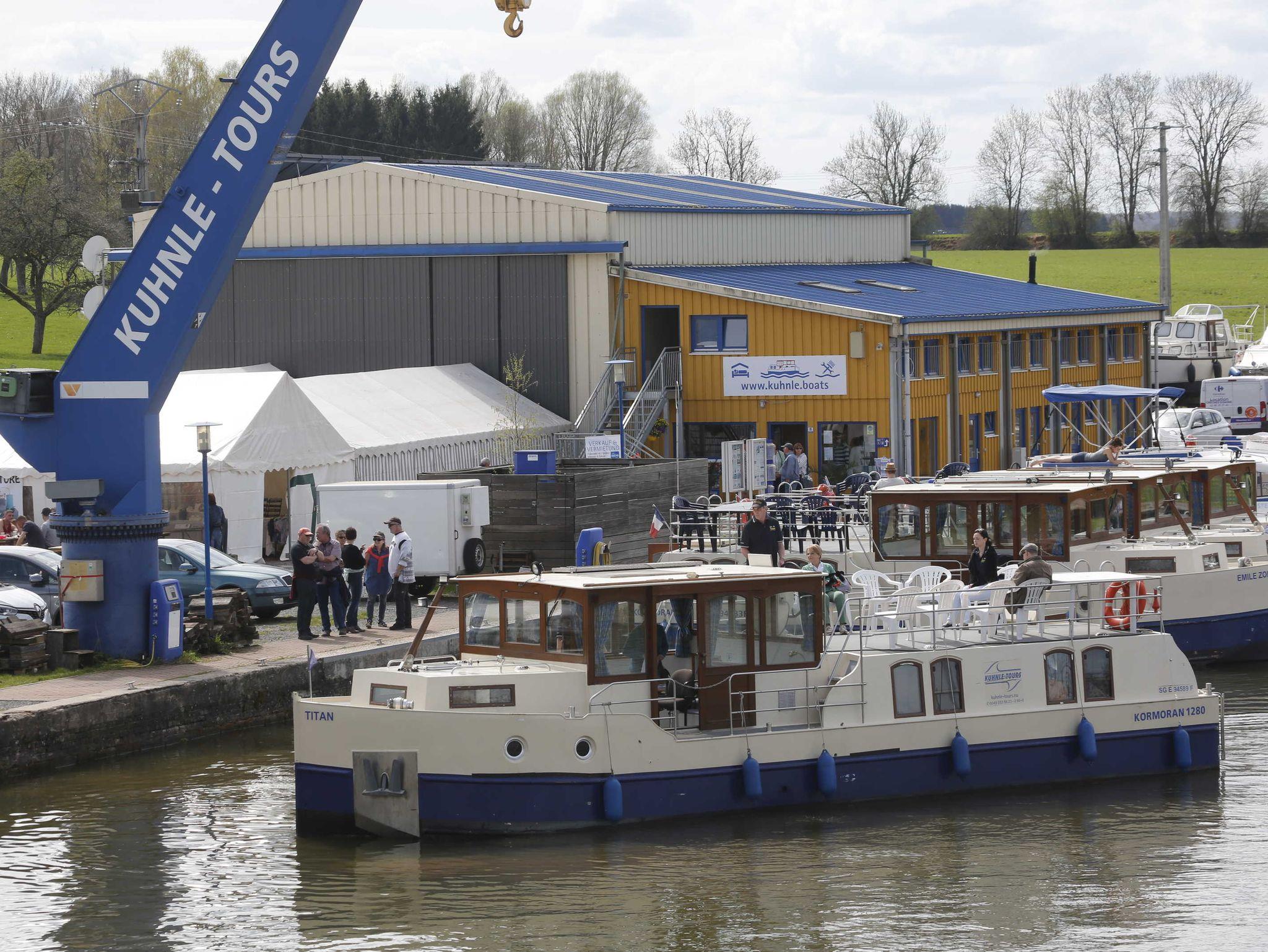 Vintage HouseBoats at Niderviller Harbor by Kuhnle-Tours, Kormoran 940 - führerscheinfreies Hausboot