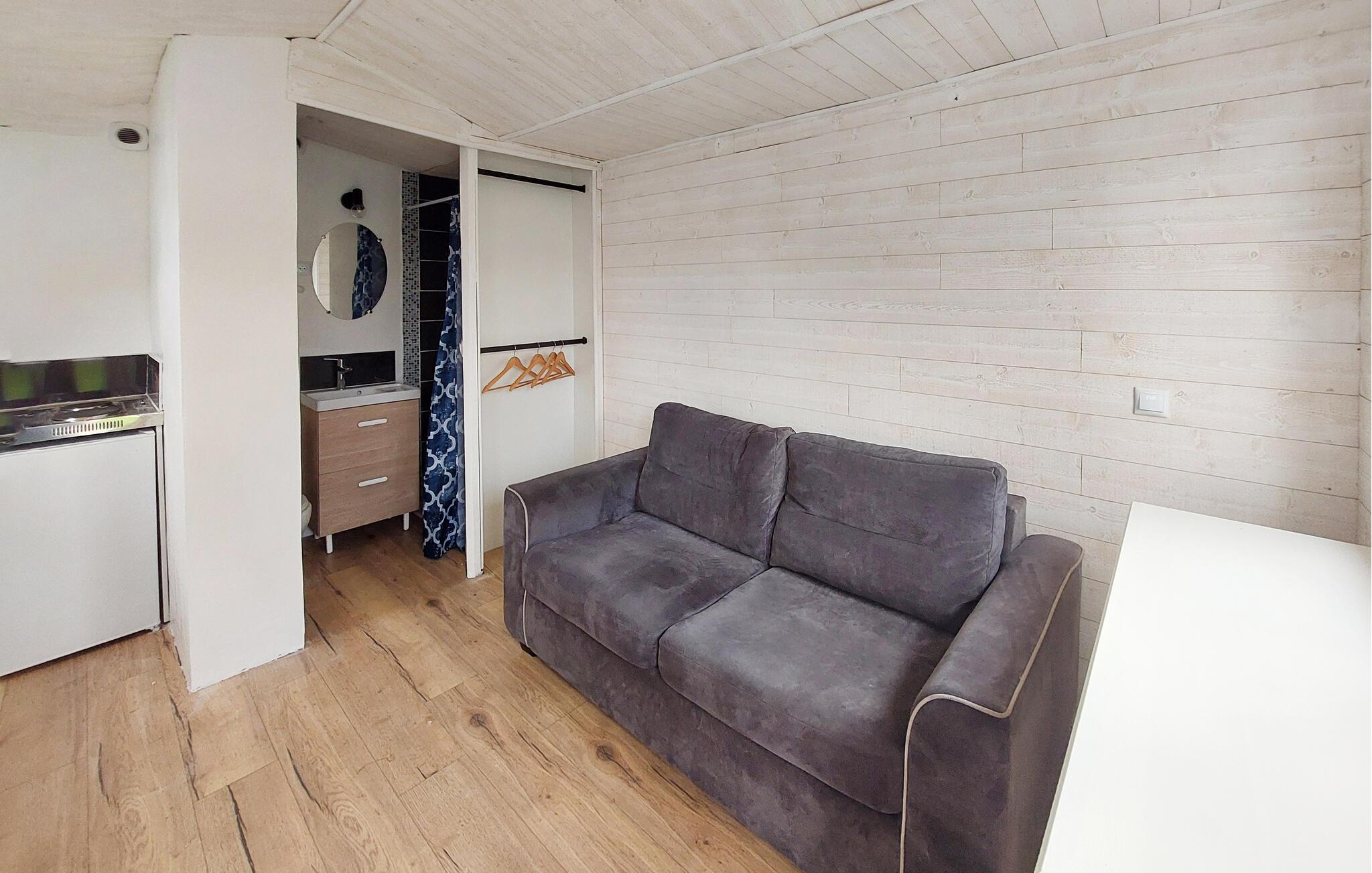 Dieses helle Studio bietet Ihnen eine behagliche Basis für vielseitige Unternehmungen auf der wunderschönen Insel Noirmoutier. Bereiten Sie sich in der kompakten Küchenzeile eine Mahlzeit zu und genießen Sie diese am einladenden Essplatz. Planen Sie hier Ihre Ausflüge für den bevorstehenden Tag und machen Sie es sich abends mit einem Glas Wein auf dem Sofa bequem.
