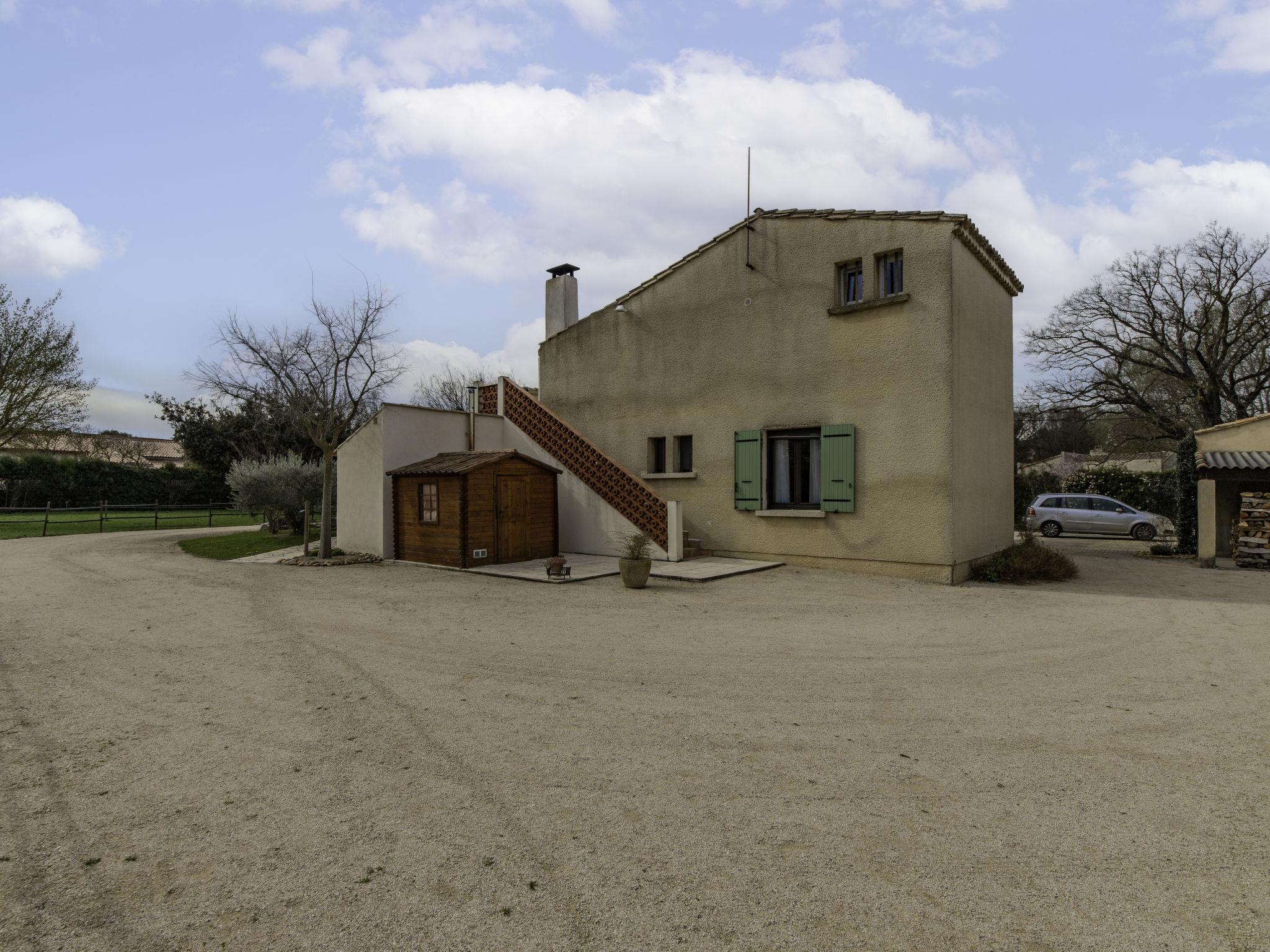 Terraced house "L'Aquilon". For shared use: property 6'000 m2, parking. Shop, grocery, supermarket 500 m, restaurant 1 km, bar 1.5 km, bakery 500 m, bus stop "Bonpas" 2.5 km. Nearby attractions: Noves 1 km, Avignon 13 km, Châteauneuf du Pape 29 km, L'Isle sur La Sorgue 12 km, Saint Rémy de Provence 12 km. Hiking paths: Via Ferrata Cavaillon 15 km. Please note: car recommended. On the estate animal husbandry. Owner lives in separate semi-detached house.