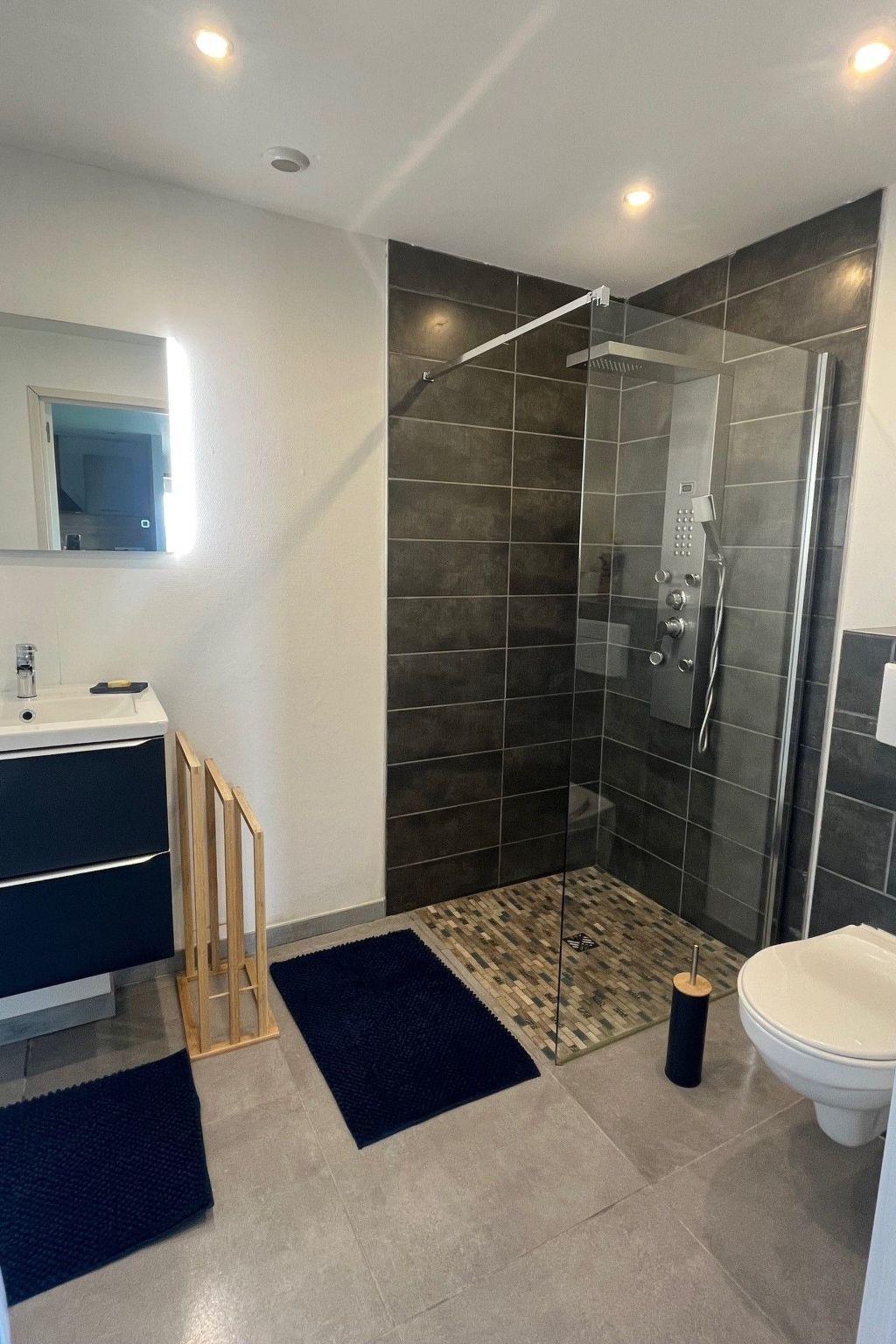 - Bathroom with toilet and walk-in shower, hairdryer available.