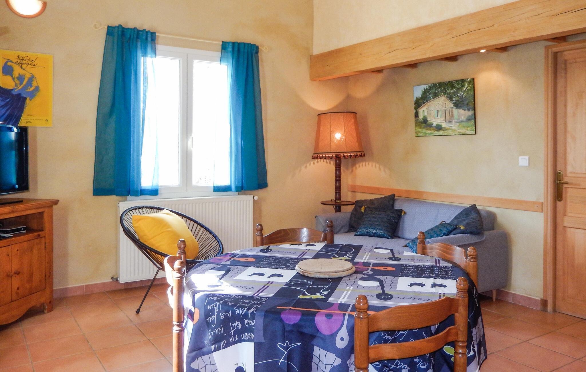 Im Herzen des Luberon lädt Sie dieses gemütliche Steinhaus zu zauberhaften Tagen fernab vom Alltag ein. Eine liebevolle Einrichtung mit warmen Holzelementen und harmonischen Farbakzenten schafft ein freundliches und behagliches Ambiente. Bereiten Sie in der charmanten Küche köstliche Gerichte zu und genießen Sie gesellige Mahlzeiten am einladenden Esstisch. Entspannen Sie nach einem langen Tag auf dem Sofa und gönnen Sie sich ein Glas Wein aus der Region.