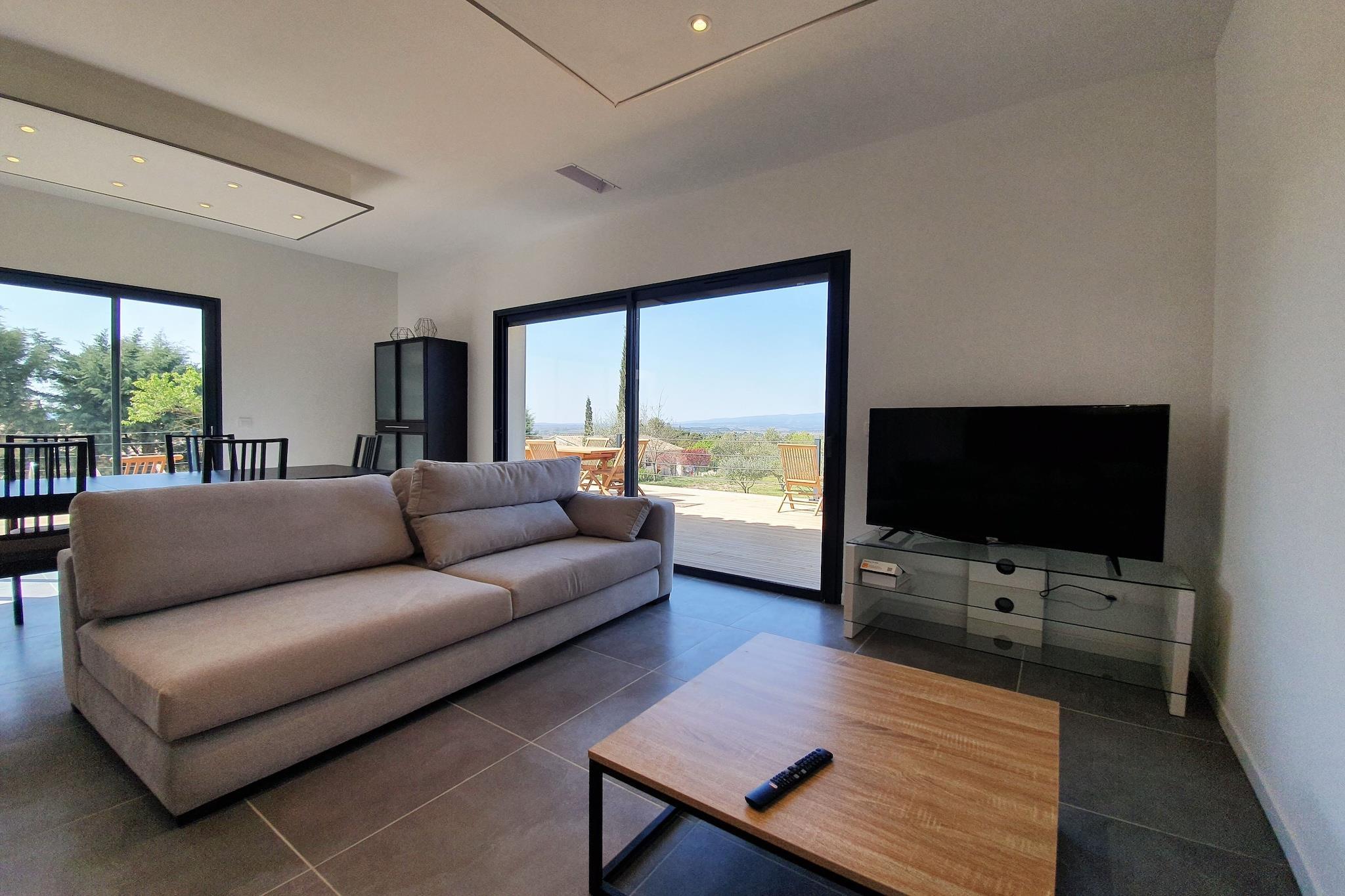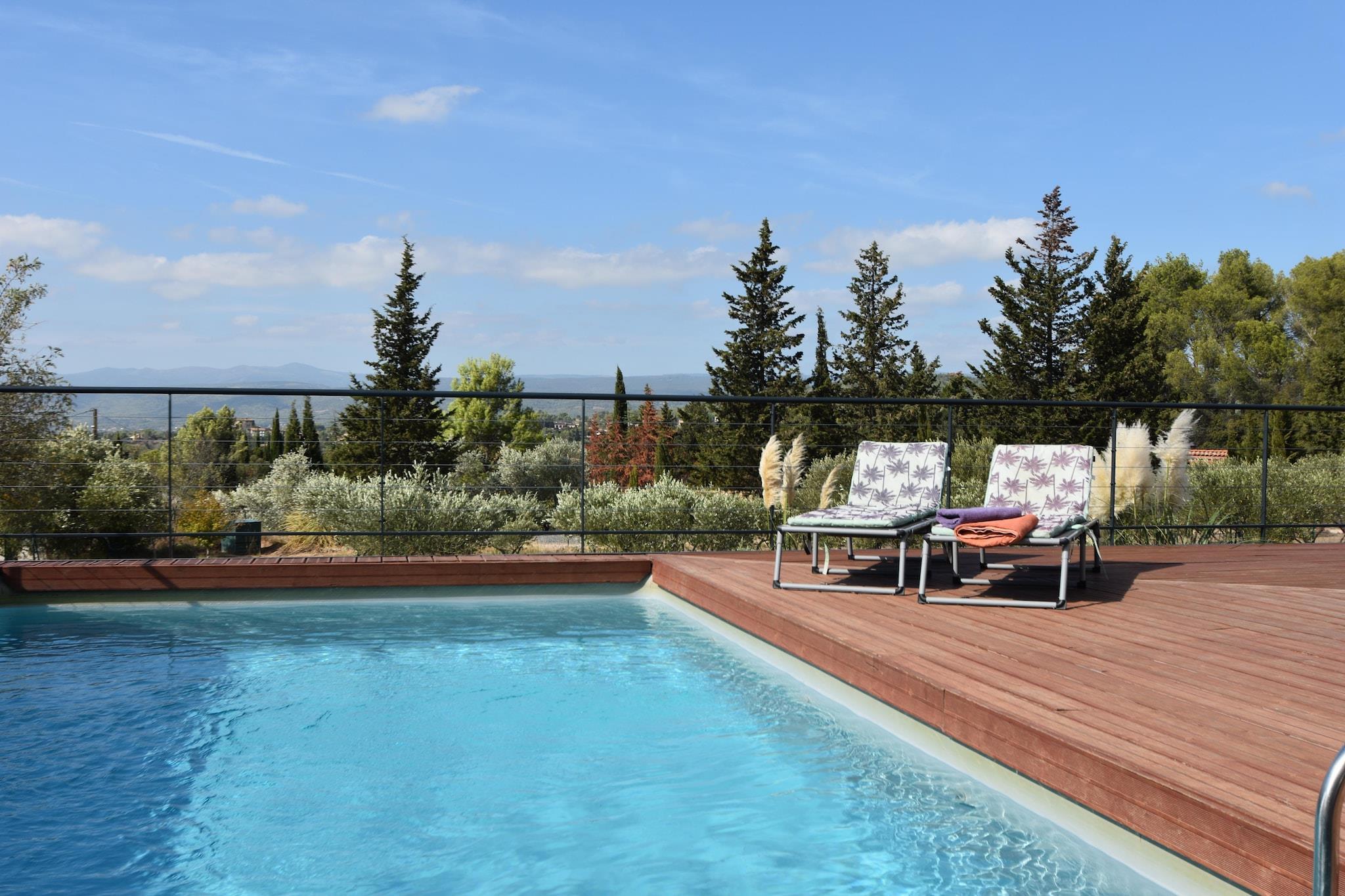 Stay in this beautiful holiday home with private pool, fully air-conditioned and located in a quiet area near the village of Oupia. The accommodation is located at the foot of a hill, less than an hour from the Mediterranean beaches. Ideal for holidays with family or friends! Oupia is an ideal base for exploring this beautiful region. You will find several restaurants and cafés within an 8 km radius. Experience a guided cycling or mountain biking trip to Narbonne (23 km), rent a boat on the Canal du Midi (30 km) and visit stunning Carcassonne. Several hiking trails start from the village. Lac de Jouarès, with a beautiful beach and water sports activities in summer (windsurfing, sailing), is 6 km away. Villages such as Minerve and Olonzac are also well worth a visit. About 30 km from the beautiful medieval city of Carcassonne, you will find this modern and bright villa with large bay windows. It is surrounded by a beautiful wooden terrace overlooking green surroundings. The kitchen and bathrooms are very modern and the house is elegantly furnished.