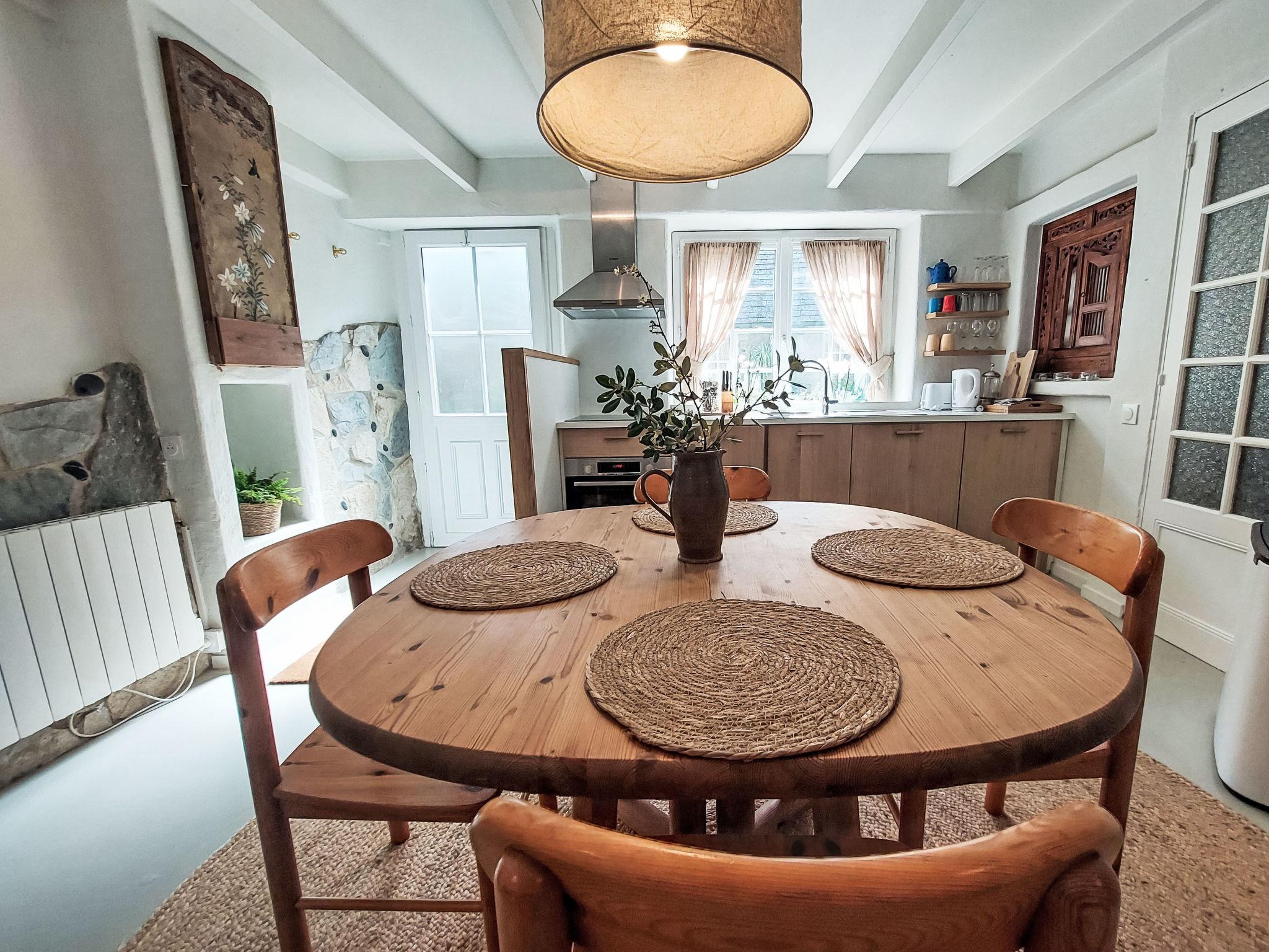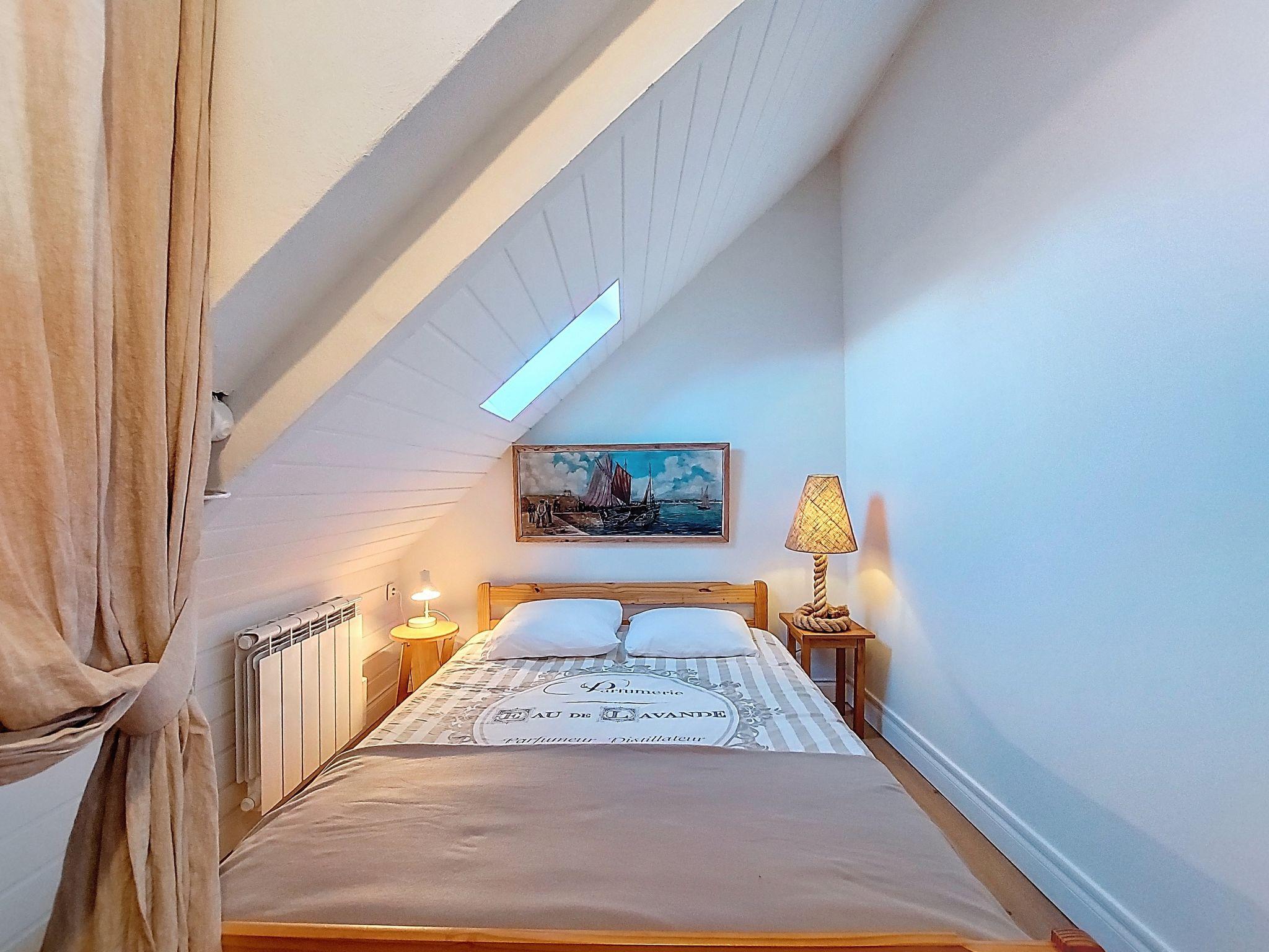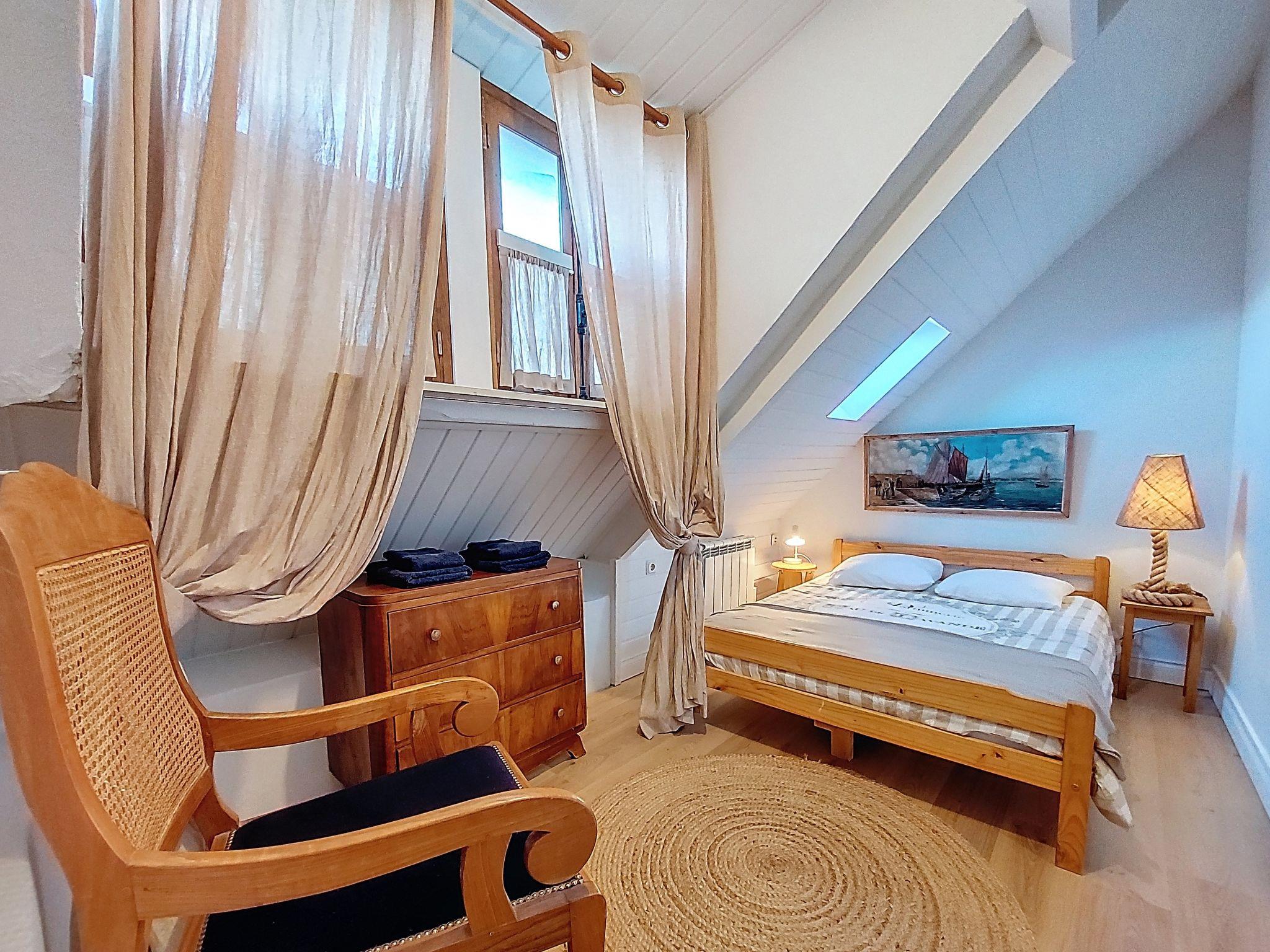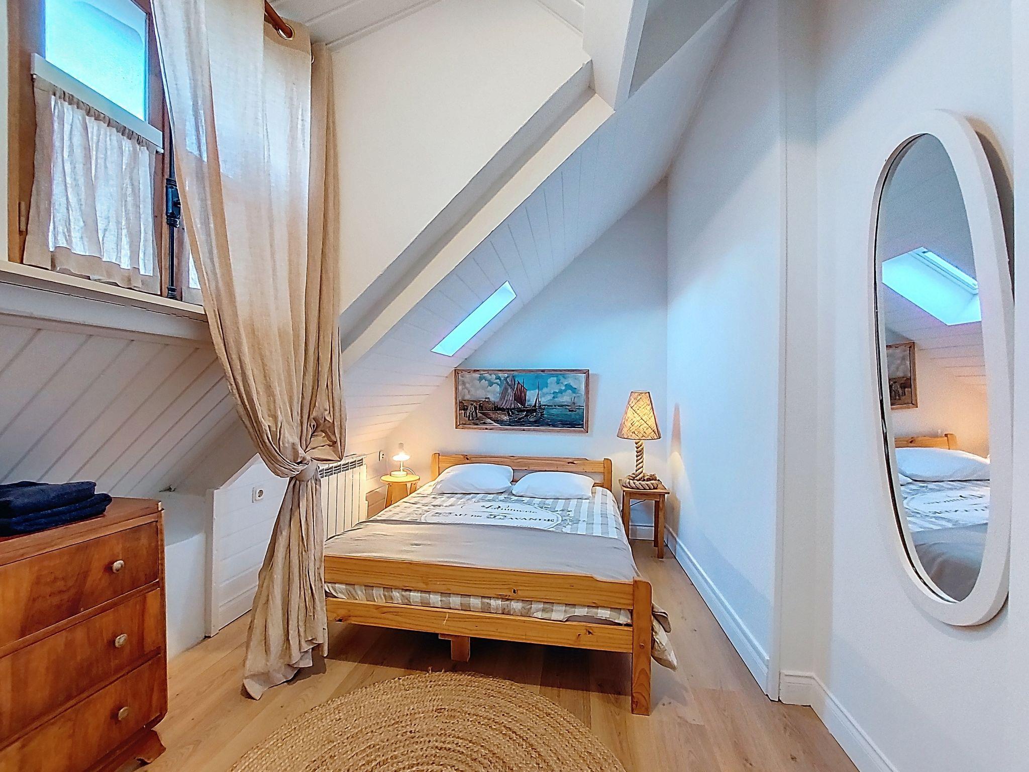 "Gwenn", 3-room semi-detached house 60 m2 on 2 levels. Partly renovated in 2025, beautiful and cosy furnishings: living/dining room with dining table and TV (flat screen). Kitchenette (oven, 2 ceramic glass hob hotplates, toaster, kettle, electric coffee machine). Bath/WC. Electric heating. Top floor: 1 room with sloping ceilings with rooflight with 1 french bed (140 cm). 1 room with sloping ceilings with rooflight with 1 bed and 1 french bed (140 cm). Terrace furniture, deck chairs (2). Facilities: washing machine, iron. Internet (WiFi, free). Please note: non-smoking house. Smoke alarm. Offer by a private individual according to Art. 155, IV of CGI.