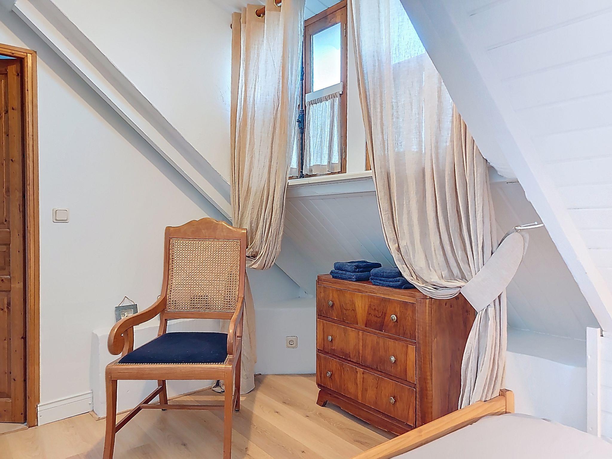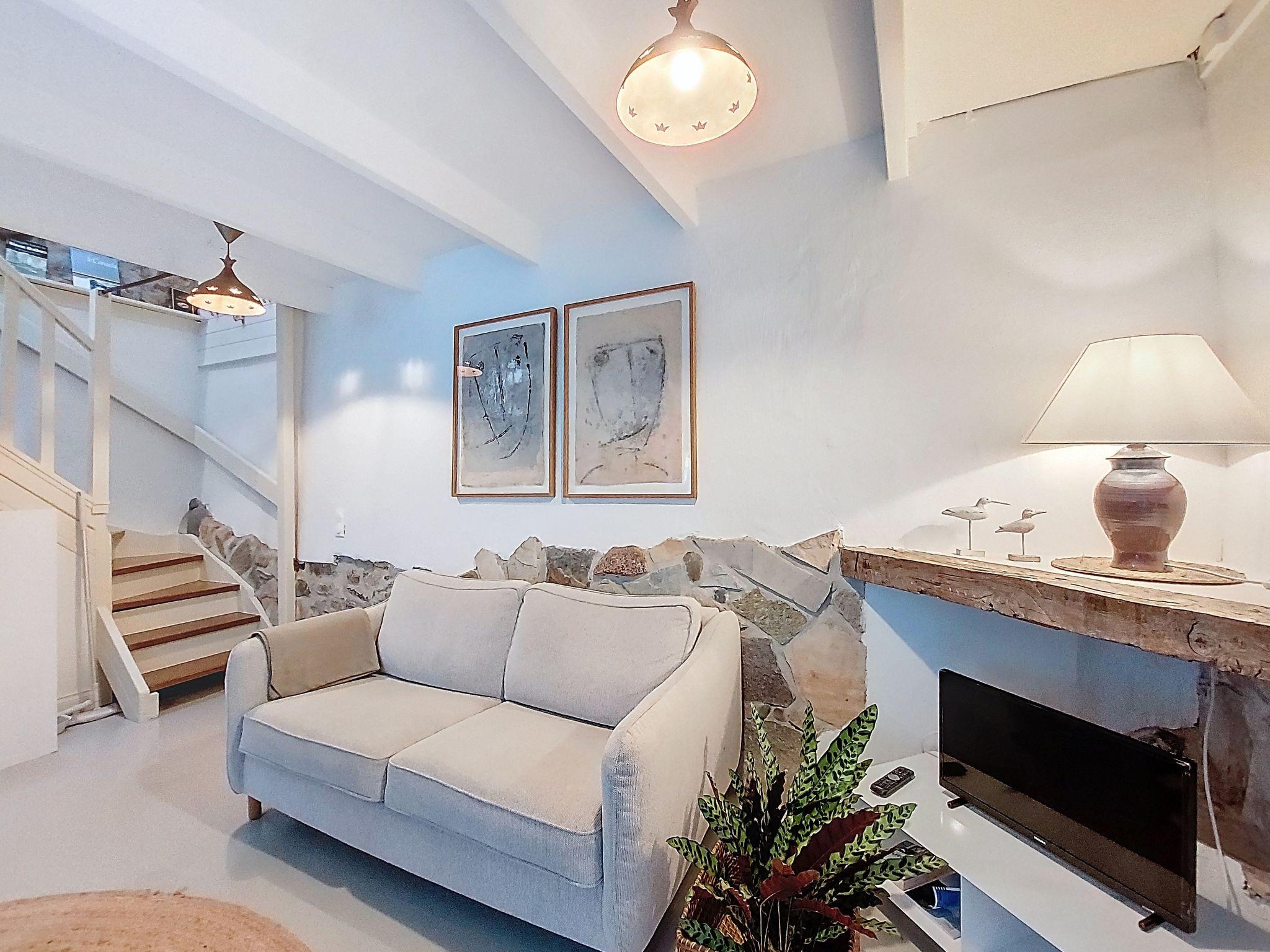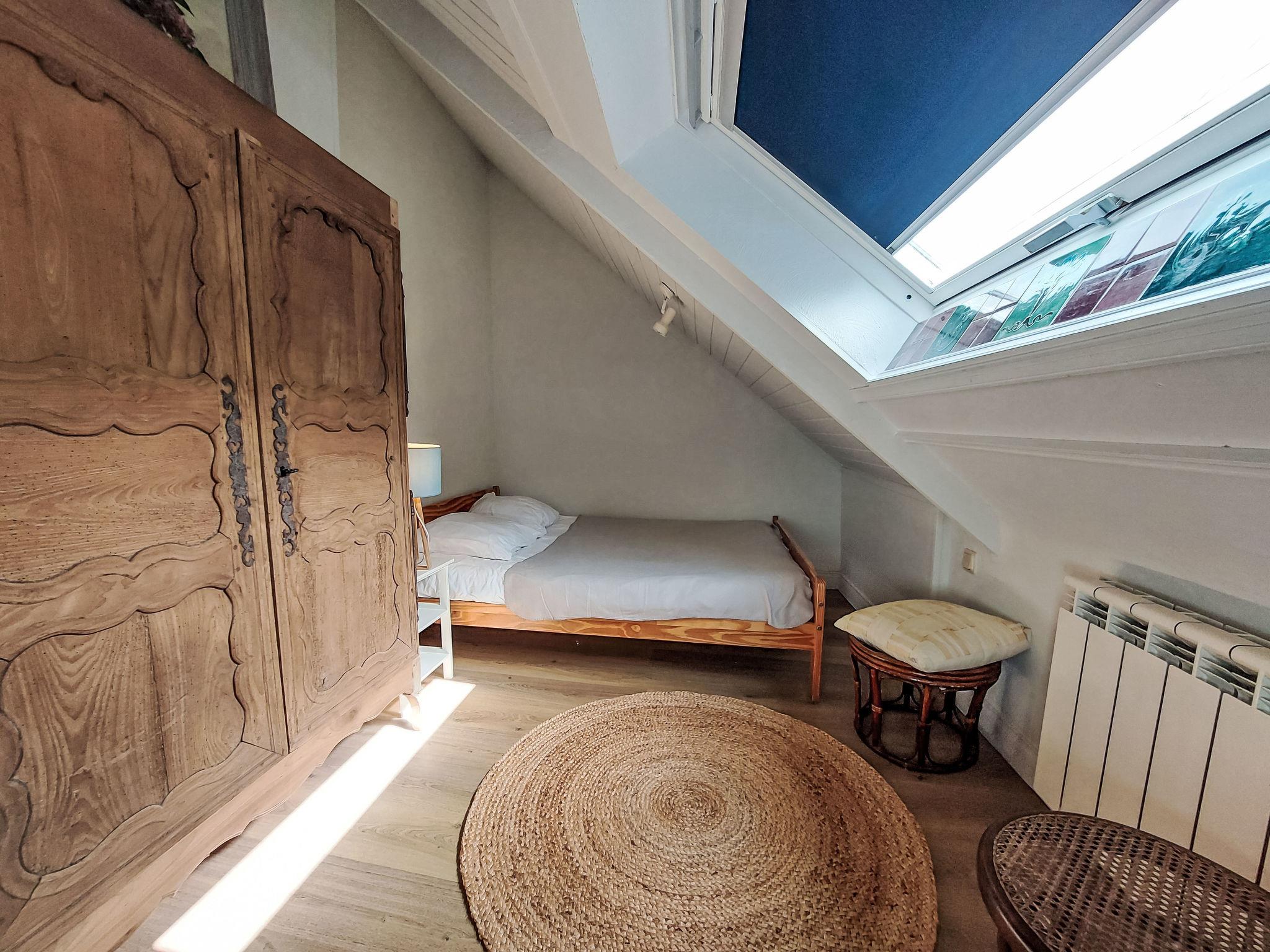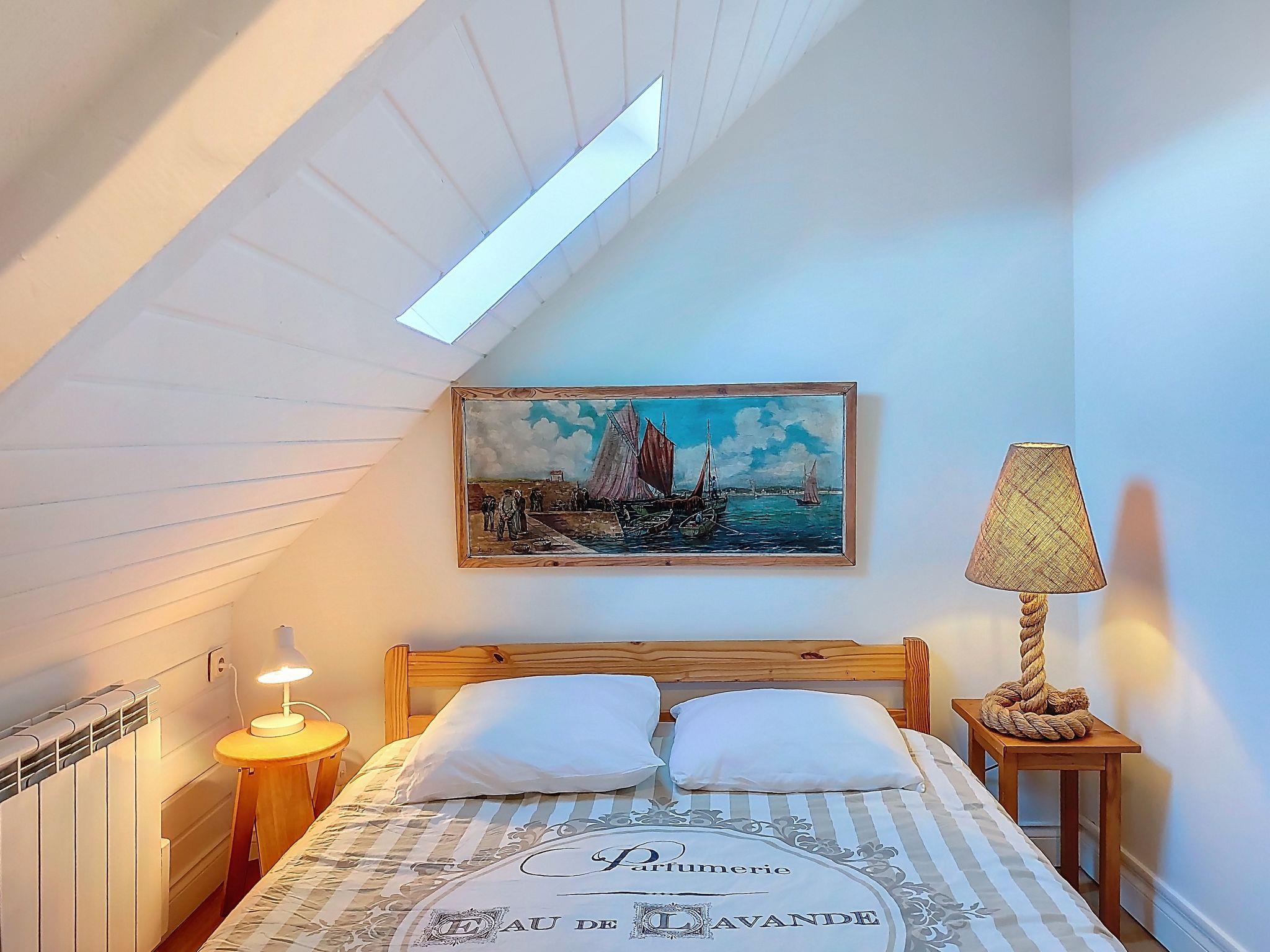 "Gwenn", 3-room semi-detached house 60 m2 on 2 levels. Partly renovated in 2025, beautiful and cosy furnishings: living/dining room with dining table and TV (flat screen). Kitchenette (oven, 2 ceramic glass hob hotplates, toaster, kettle, electric coffee machine). Bath/WC. Electric heating. Top floor: 1 room with sloping ceilings with rooflight with 1 french bed (140 cm). 1 room with sloping ceilings with rooflight with 1 bed and 1 french bed (140 cm). Terrace furniture, deck chairs (2). Facilities: washing machine, iron. Internet (WiFi, free). Please note: non-smoking house. Smoke alarm. Offer by a private individual according to Art. 155, IV of CGI.
