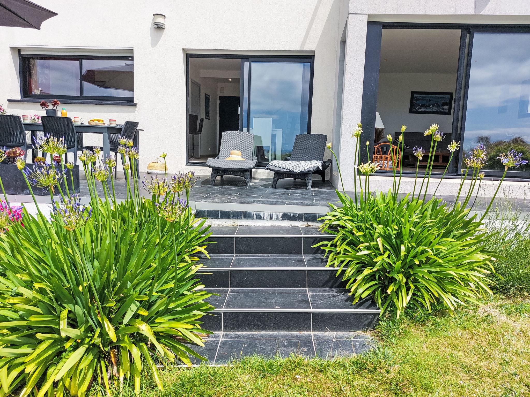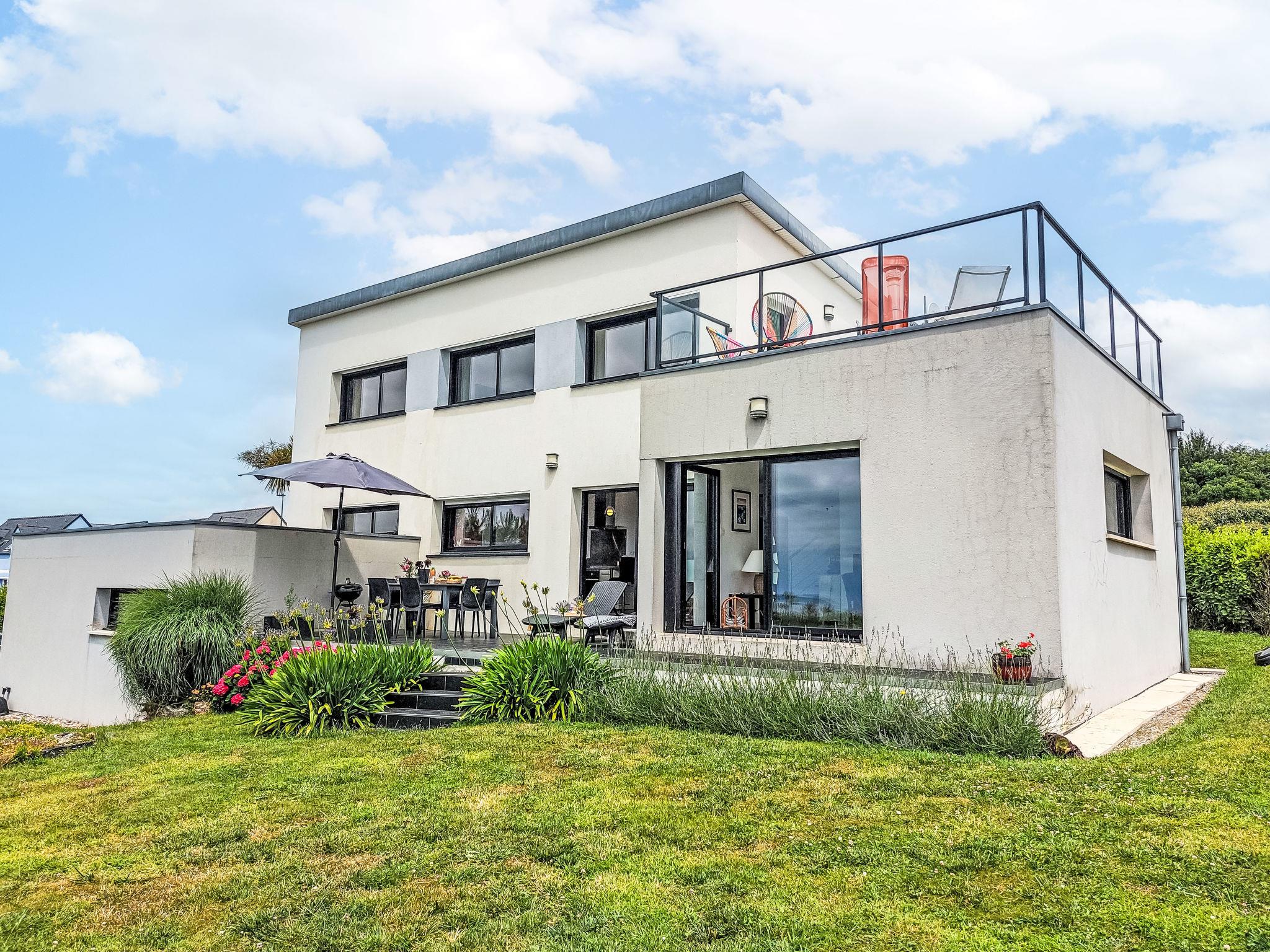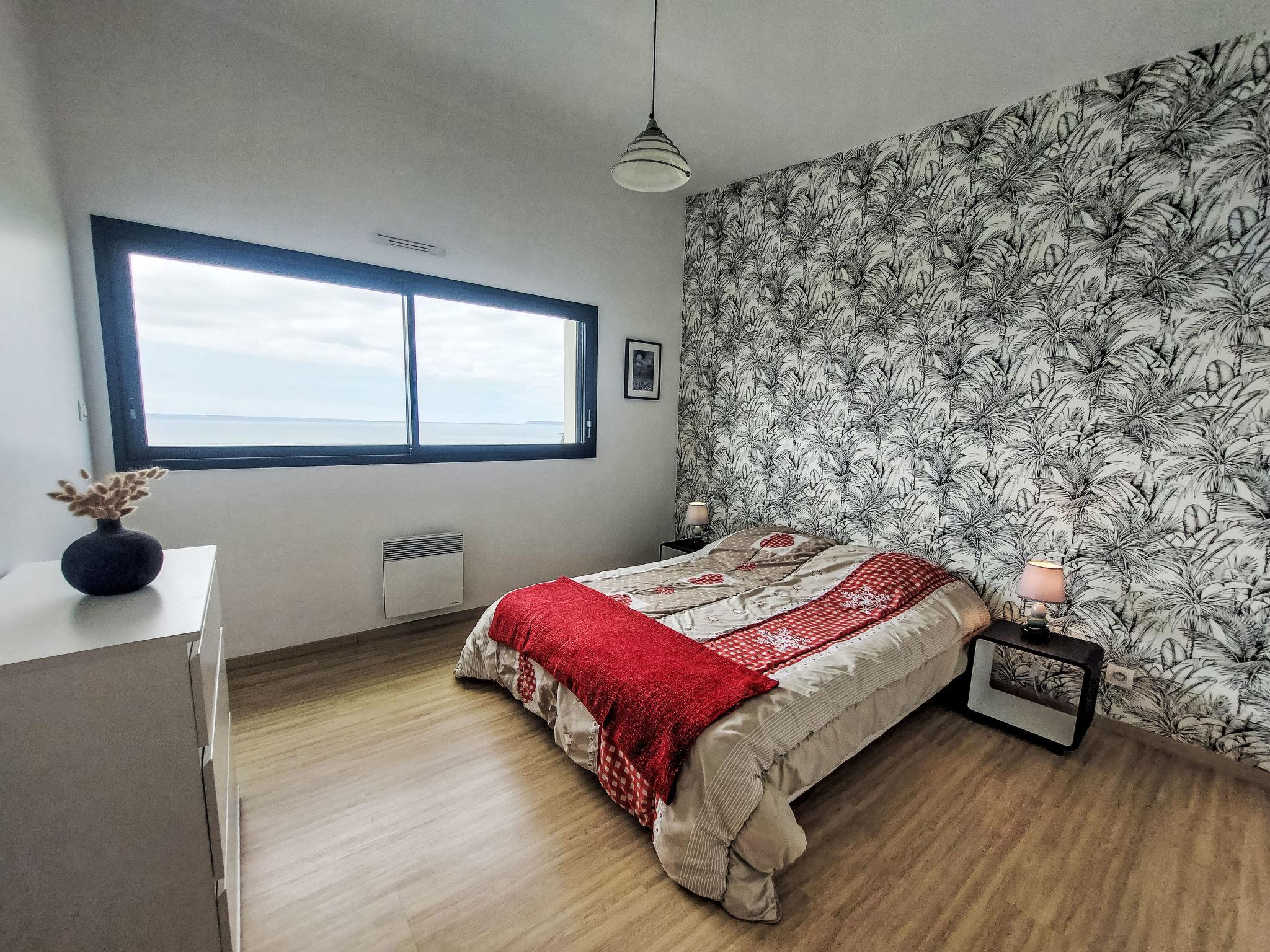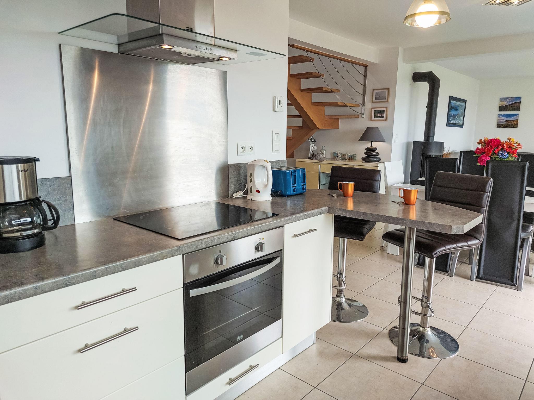 "L'Iroise", 4-room house 160 m2 on 2 levels. Beautiful and modern furnishings: living/dining room with Scandinavian wood stove, dining table and satellite TV. Exit to the terrace. 1 room with 1 french bed (140 cm, length 190 cm). Open kitchen (oven, dishwasher, 3 induction hot plates, toaster, kettle, microwave, freezer, electric coffee machine) with bar. Shower/WC. Underfloor heating. Upper floor: 1 room with sloping ceilings with 1 french bed (140 cm, length 190 cm). 1 room with 2 beds (90 cm, length 190 cm). Bathroom, sep. WC. Electric heating. Parquet floors. Balcony, terrace, south facing position. Terrace furniture, balcony furniture, electric barbecue, deck chairs (4). View of the sea and the bay. Facilities: washing machine, iron, children's high chair, baby cot, hair dryer. Internet (WiFi, free). Please note: non-smoking house. Maximum 1 pet/ dog allowed. Smoke alarm. When there are less than the maximum number of guests staying at the property, not all of the bedrooms will be available for use. Offer by a private individual according to Art. 155, IV of CGI.