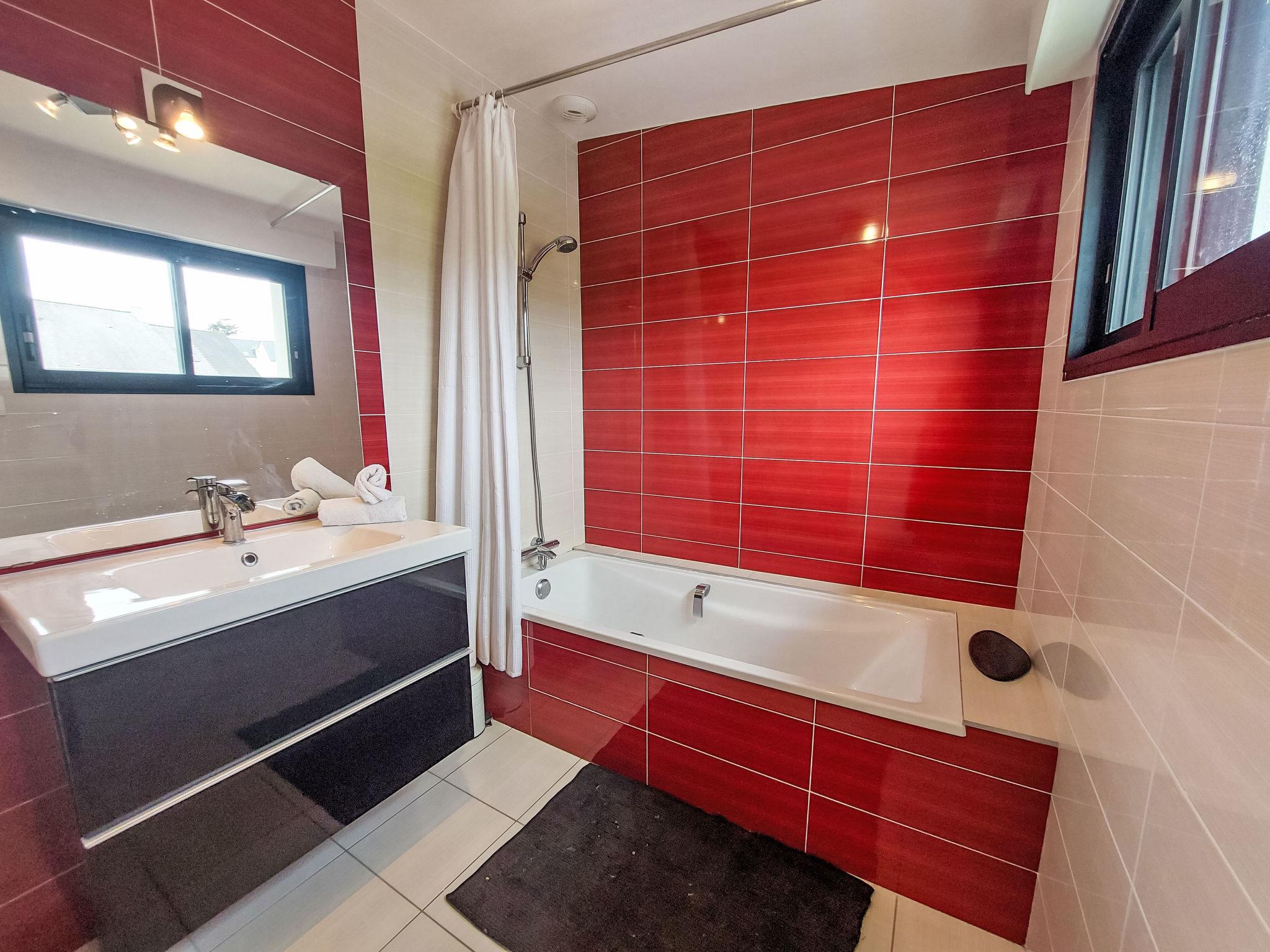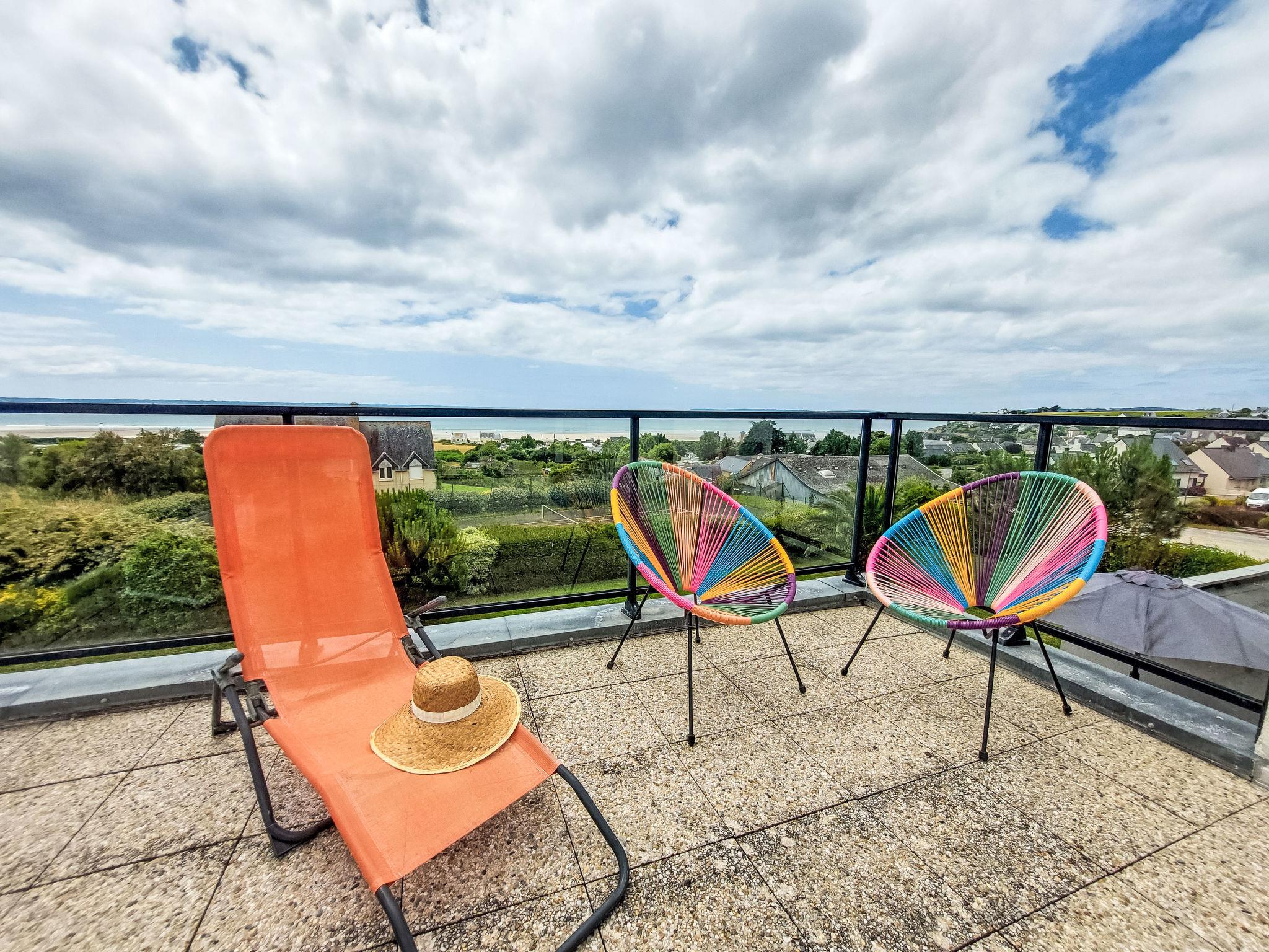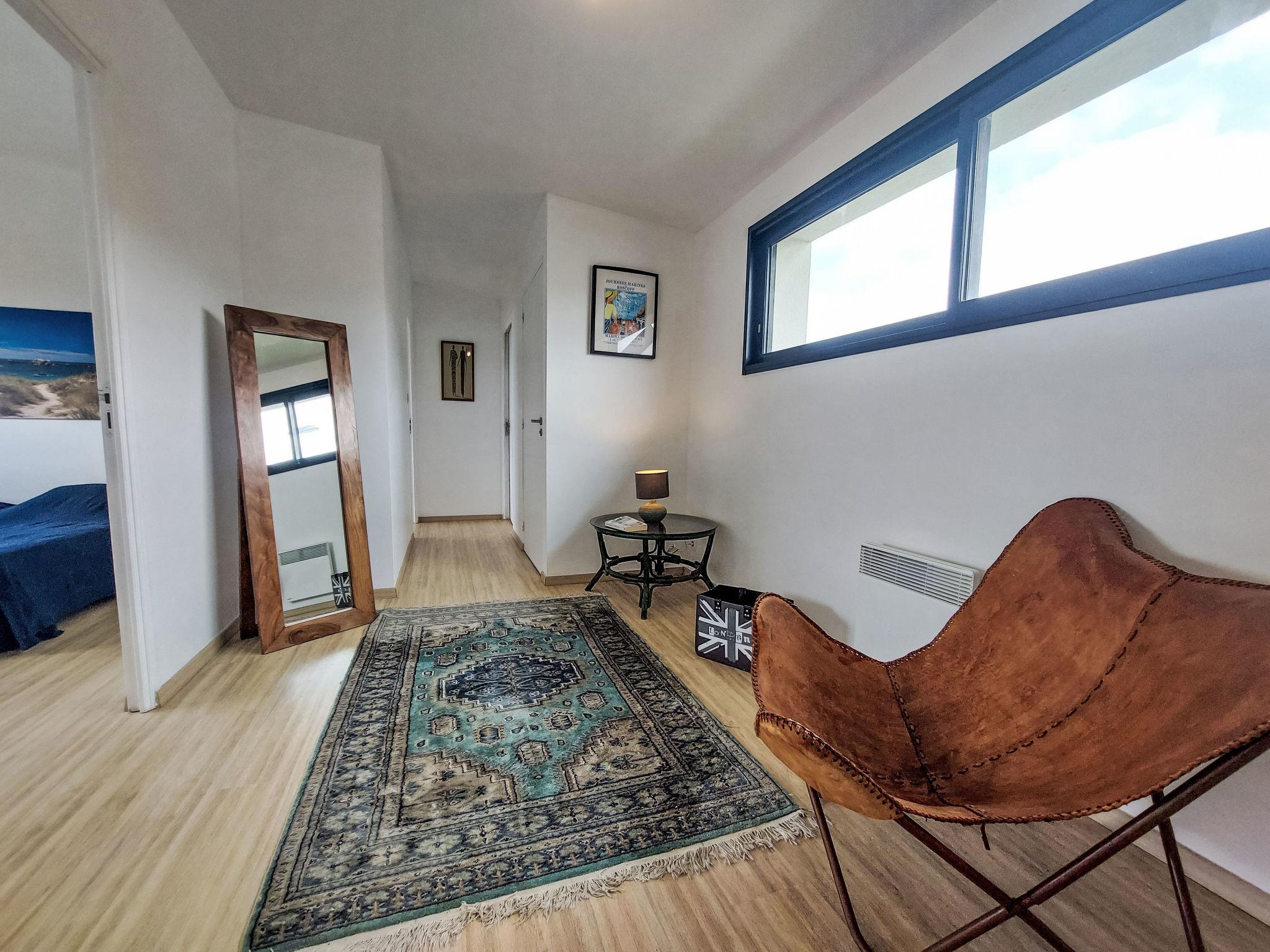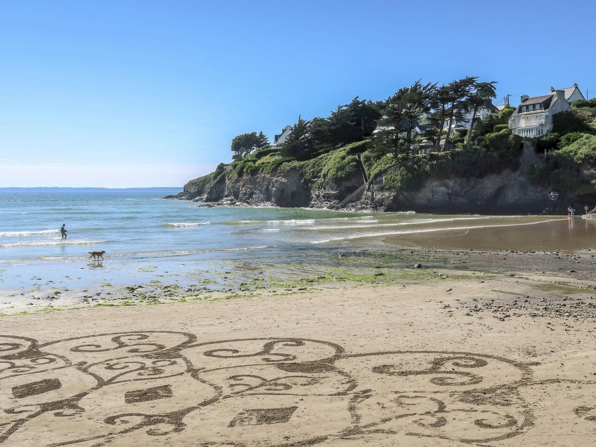 "L'Iroise", 4-room house 160 m2 on 2 levels. Beautiful and modern furnishings: living/dining room with Scandinavian wood stove, dining table and satellite TV. Exit to the terrace. 1 room with 1 french bed (140 cm, length 190 cm). Open kitchen (oven, dishwasher, 3 induction hot plates, toaster, kettle, microwave, freezer, electric coffee machine) with bar. Shower/WC. Underfloor heating. Upper floor: 1 room with sloping ceilings with 1 french bed (140 cm, length 190 cm). 1 room with 2 beds (90 cm, length 190 cm). Bathroom, sep. WC. Electric heating. Parquet floors. Balcony, terrace, south facing position. Terrace furniture, balcony furniture, electric barbecue, deck chairs (4). View of the sea and the bay. Facilities: washing machine, iron, children's high chair, baby cot, hair dryer. Internet (WiFi, free). Please note: non-smoking house. Maximum 1 pet/ dog allowed. Smoke alarm. When there are less than the maximum number of guests staying at the property, not all of the bedrooms will be available for use. Offer by a private individual according to Art. 155, IV of CGI.