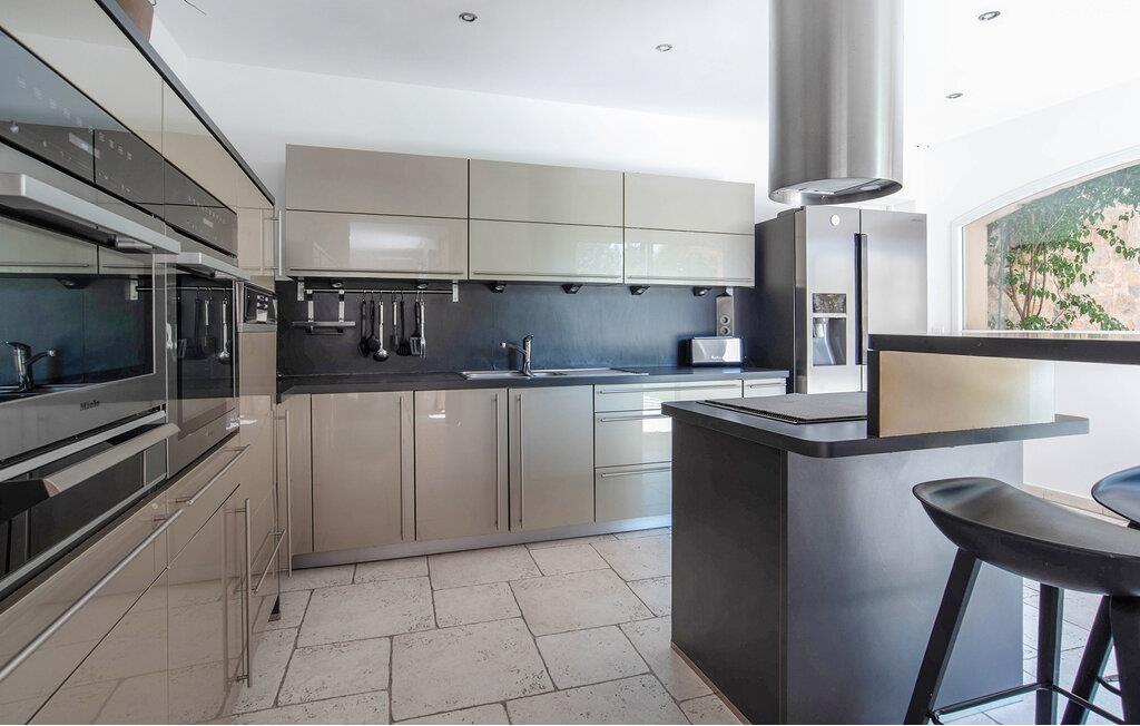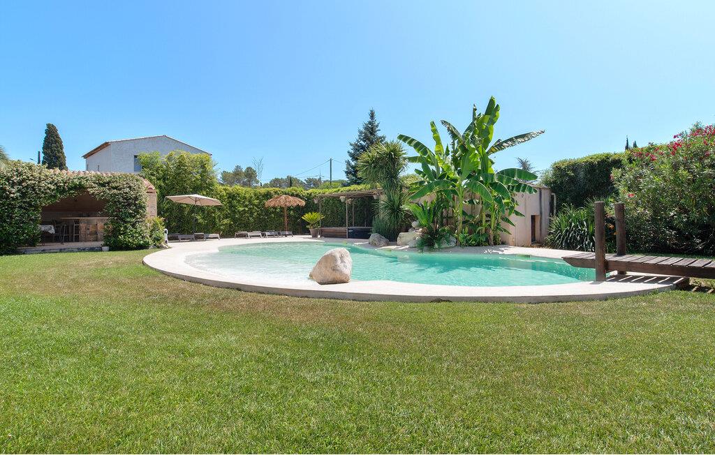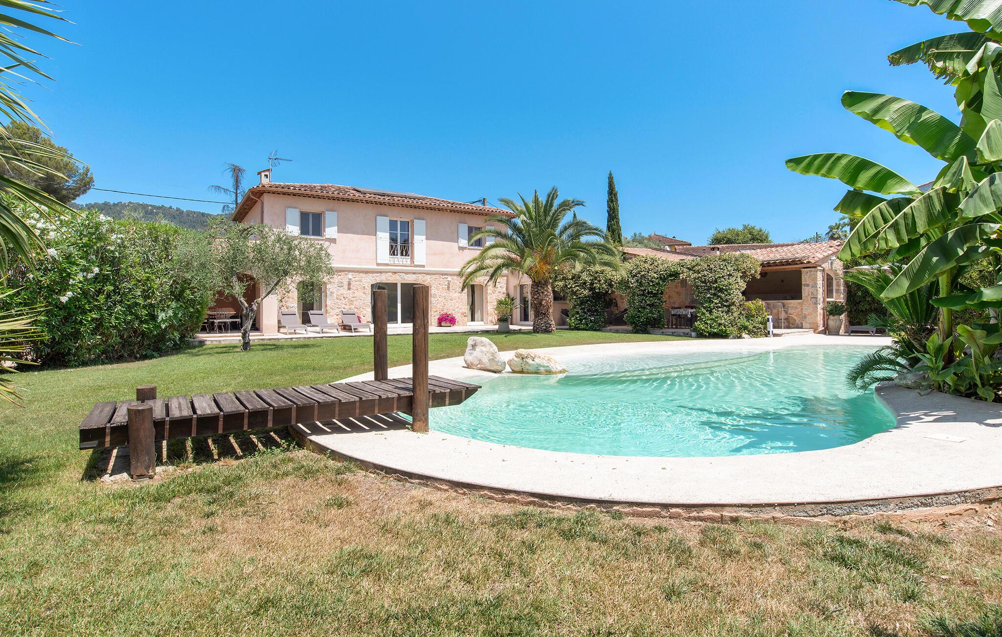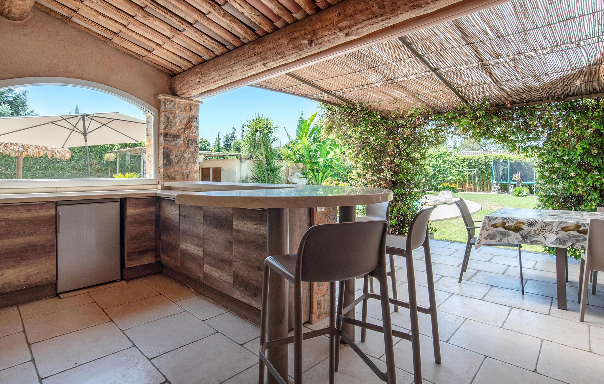 Der gepflegte Außenbereich ist eine Ruheoase, in der Sie das mediterrane Klima in vollen Zügen genießen werden. Der herrliche Pool ist mit einem kleinen Strand versehen und liegt im Herzen des uneinsehbaren Gartens. Lassen Sie Ihre Kinder auf dem Trampolin toben, vergnügen Sie sich beim Tischfußball, plaudern Sie bei einem Glas Wein im Schatten und bereiten Sie in der Sommerküche leckere Beilagen für ein Grillfest vor.