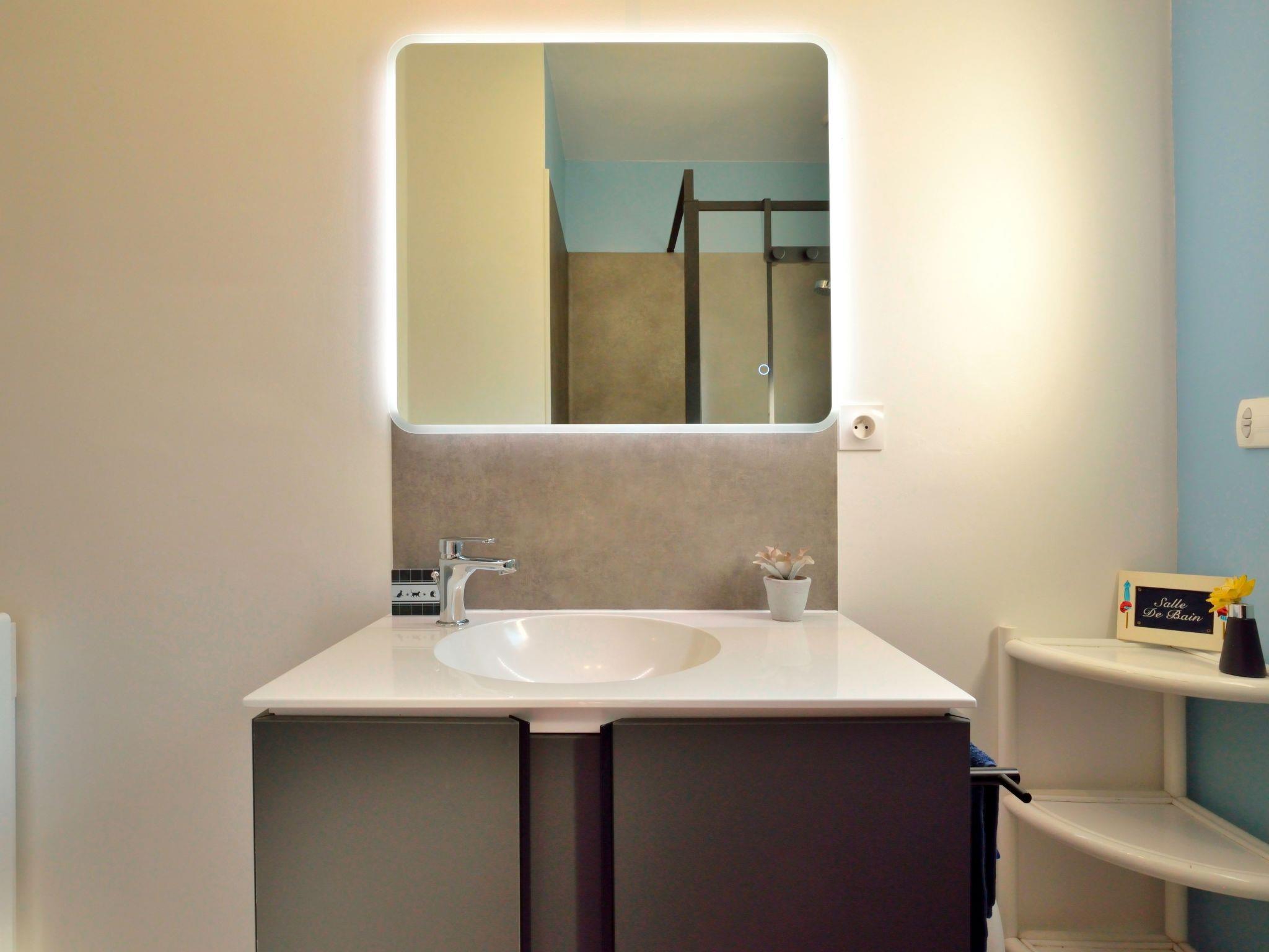 "Melflo", 4-room house 90 m2 on 2 levels. Cosy furnishings: living room with TV. Exit to the terrace. 1 room with 1 french bed (140 cm, length 190 cm). Open kitchen (1 hot plate, oven, dishwasher, 3 gas rings, toaster, kettle, microwave, freezer, electric coffee machine). Shower, sep. WC. Upper floor: gallery with sloping ceilings with TV. 1 room with sloping ceilings with 2 beds (90 cm, length 190 cm). 1 room with sloping ceilings with 1 french bed (140 cm, length 190 cm). Bathroom, sep. WC. Electric heating. Terrace, south facing position. Terrace furniture, barbecue (portable), deck chairs (4), box-room. Facilities: washing machine. Internet (WiFi, free). Please note: smoke alarm. Instead of an enclosed bedroom, some sleeping areas are located in an open-plan area (gallery, alcove, etc.). FR04257