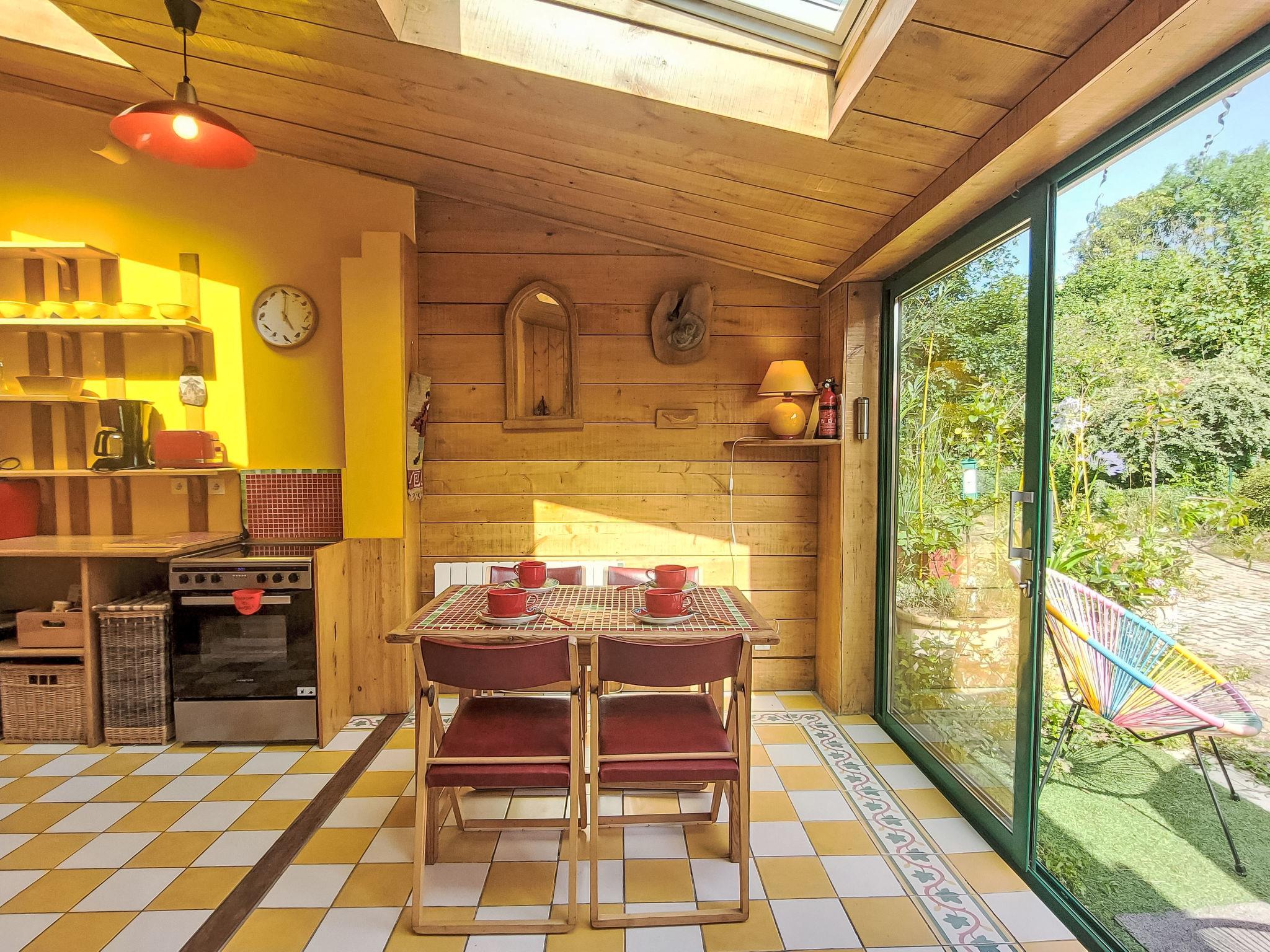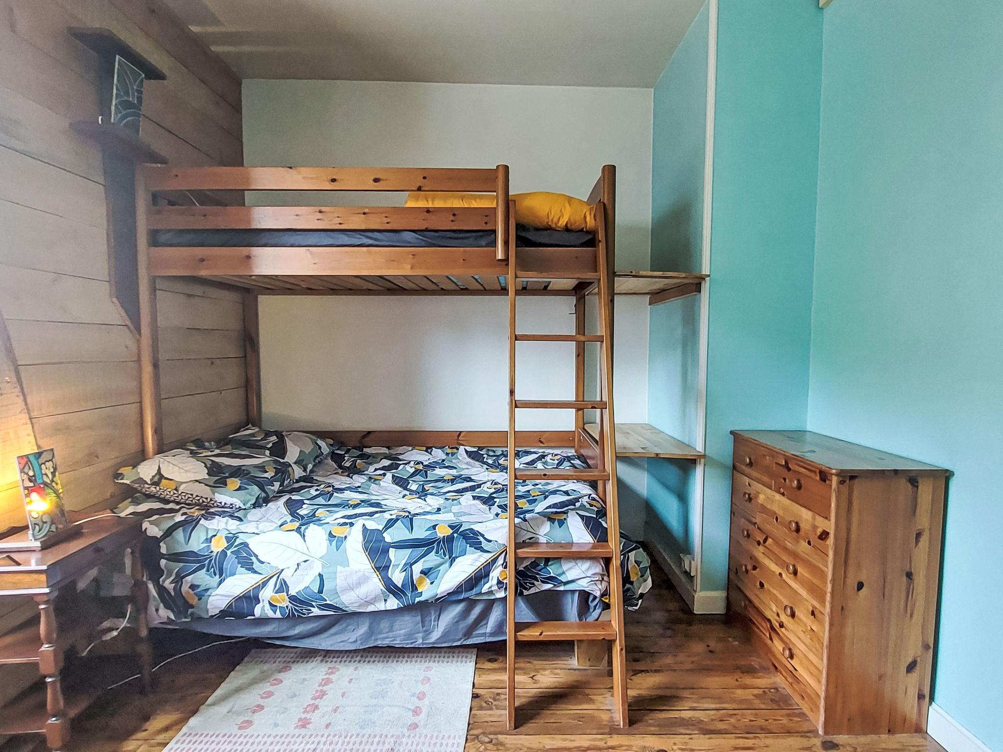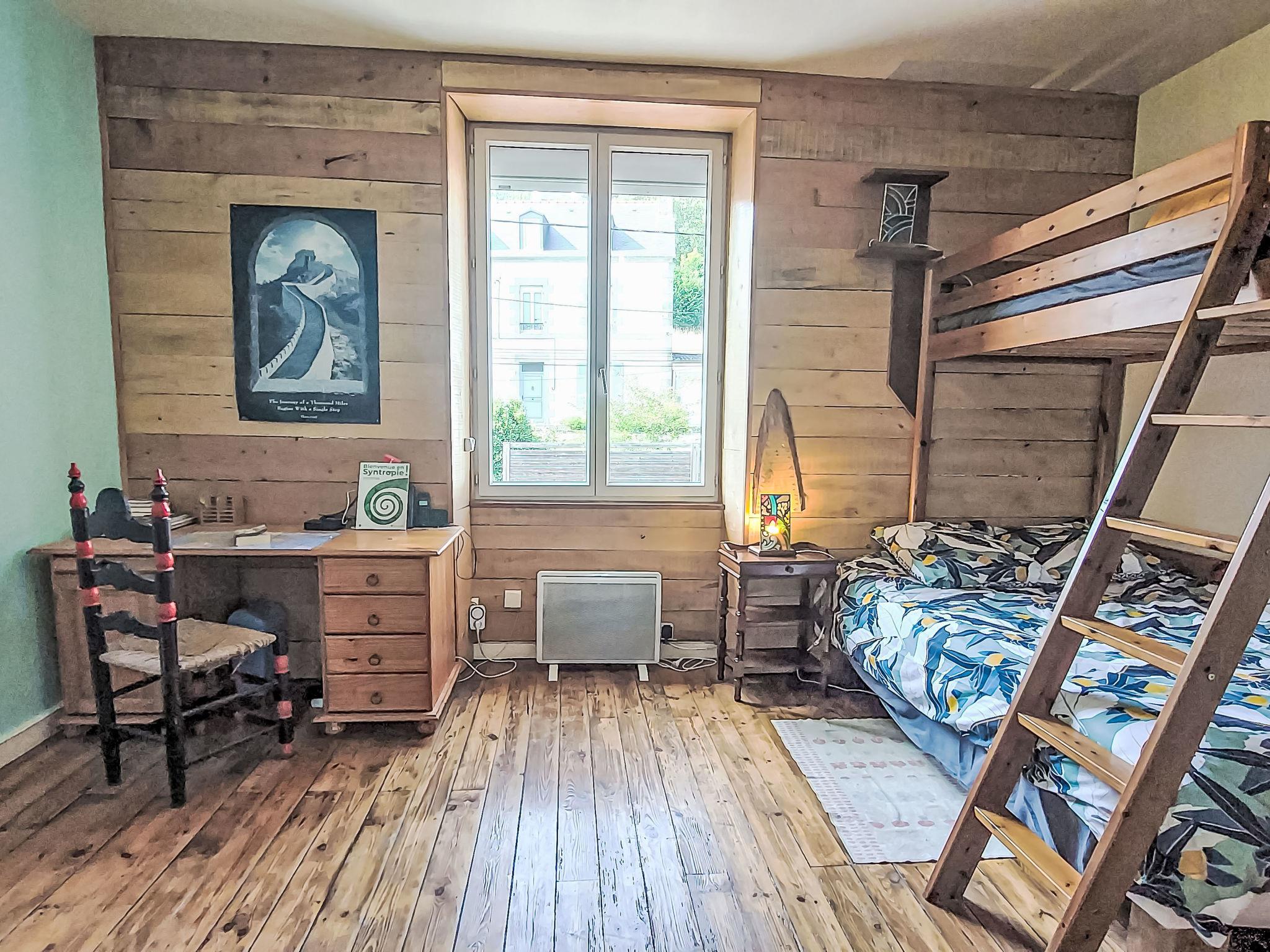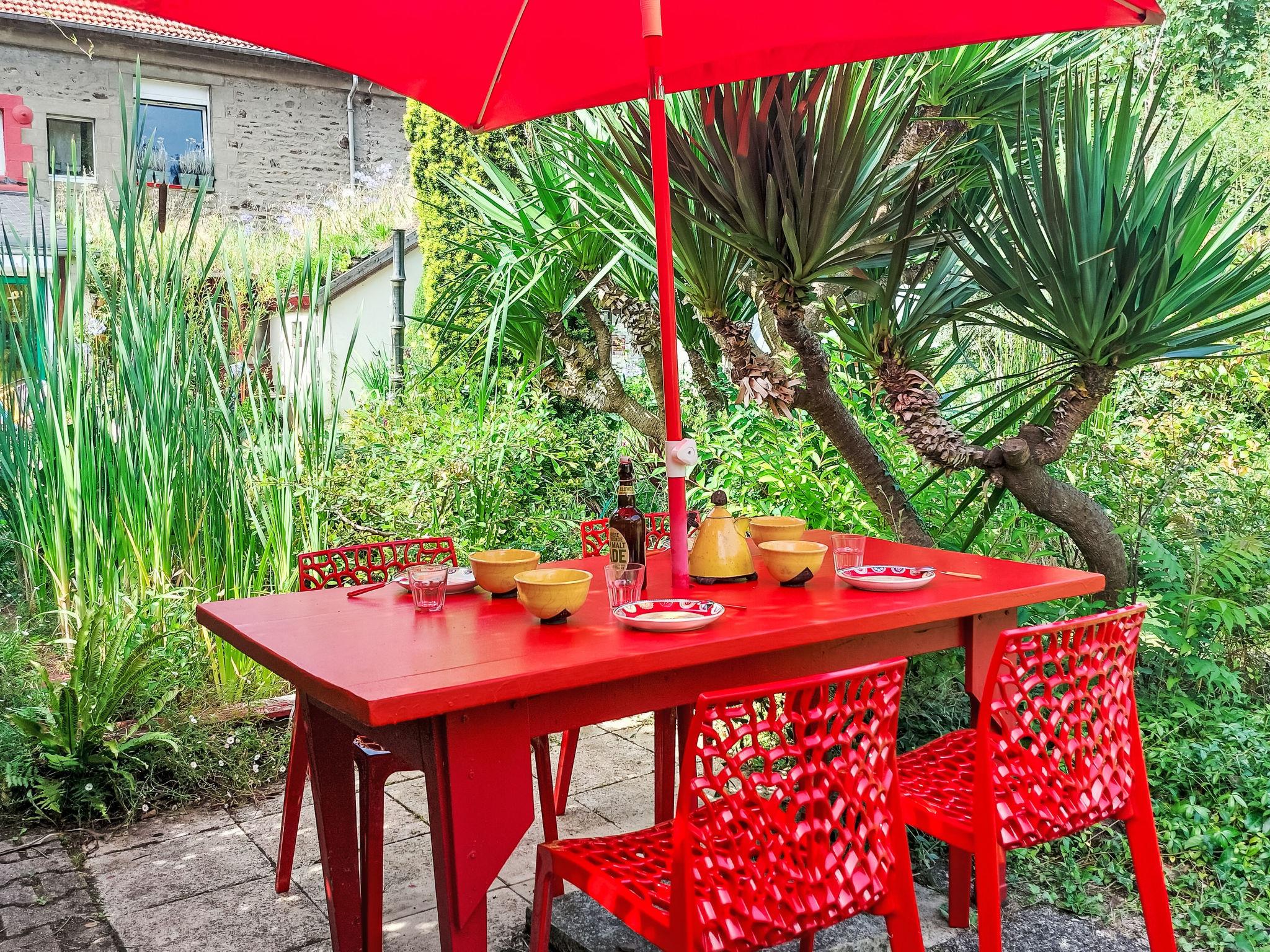 "L'Oté rouge", 3-room terraced house 80 m2 on 2 levels. Practical and wooden furniture furnishings: living room with TV, radio and wood-burning stove. Small, open kitchen (oven, dishwasher, 4 induction hot plates, toaster, kettle, microwave, freezer, electric coffee machine) with dining table. Exit to the garden. Shower/WC. Upper floor: walk-through room with 1 french bed (140 cm, length 190 cm). Interconnecting room with 1 x 1 bunk beds (90 cm, length 190 cm), 1 french bed (140 cm, length 190 cm). Patio. Terrace furniture, barbecue (portable), deck chairs (2), box-room. Facilities: washing machine. Internet (WiFi, free). Please note: non-smoking house. Smoke alarm. Bed layout is flexible. There are more sleeping options available than the maximum number of people allowed which may, however, not be exceeded.